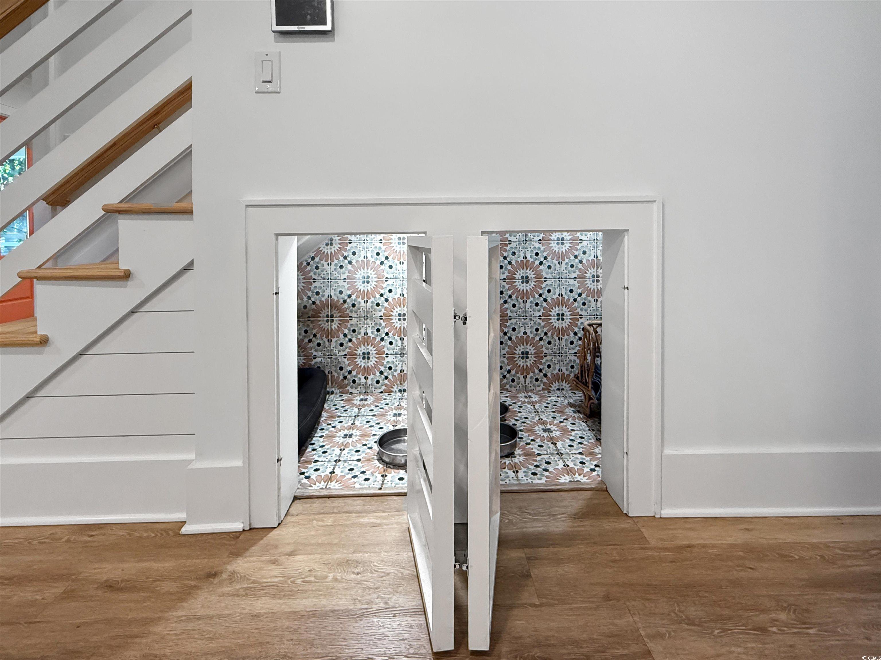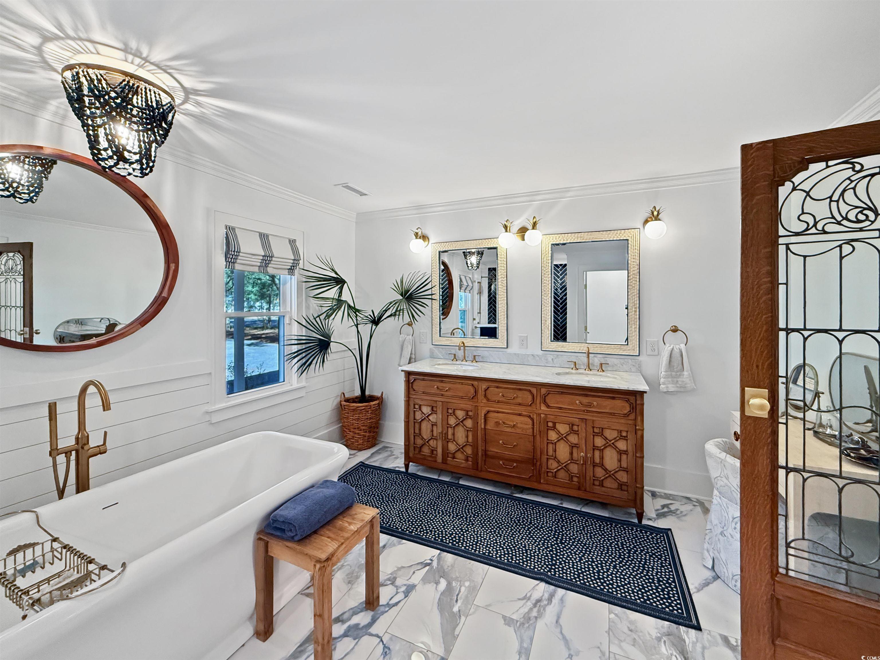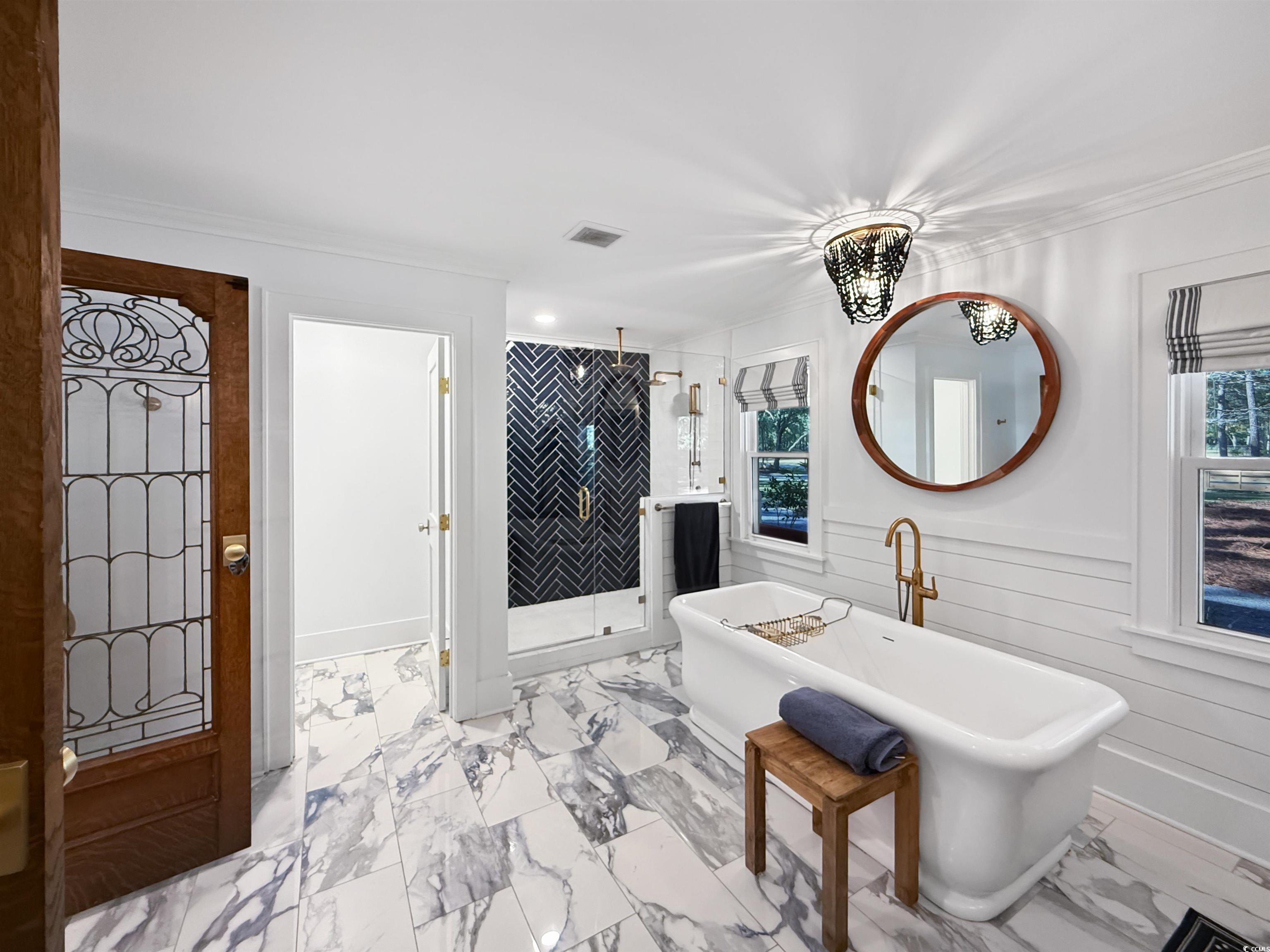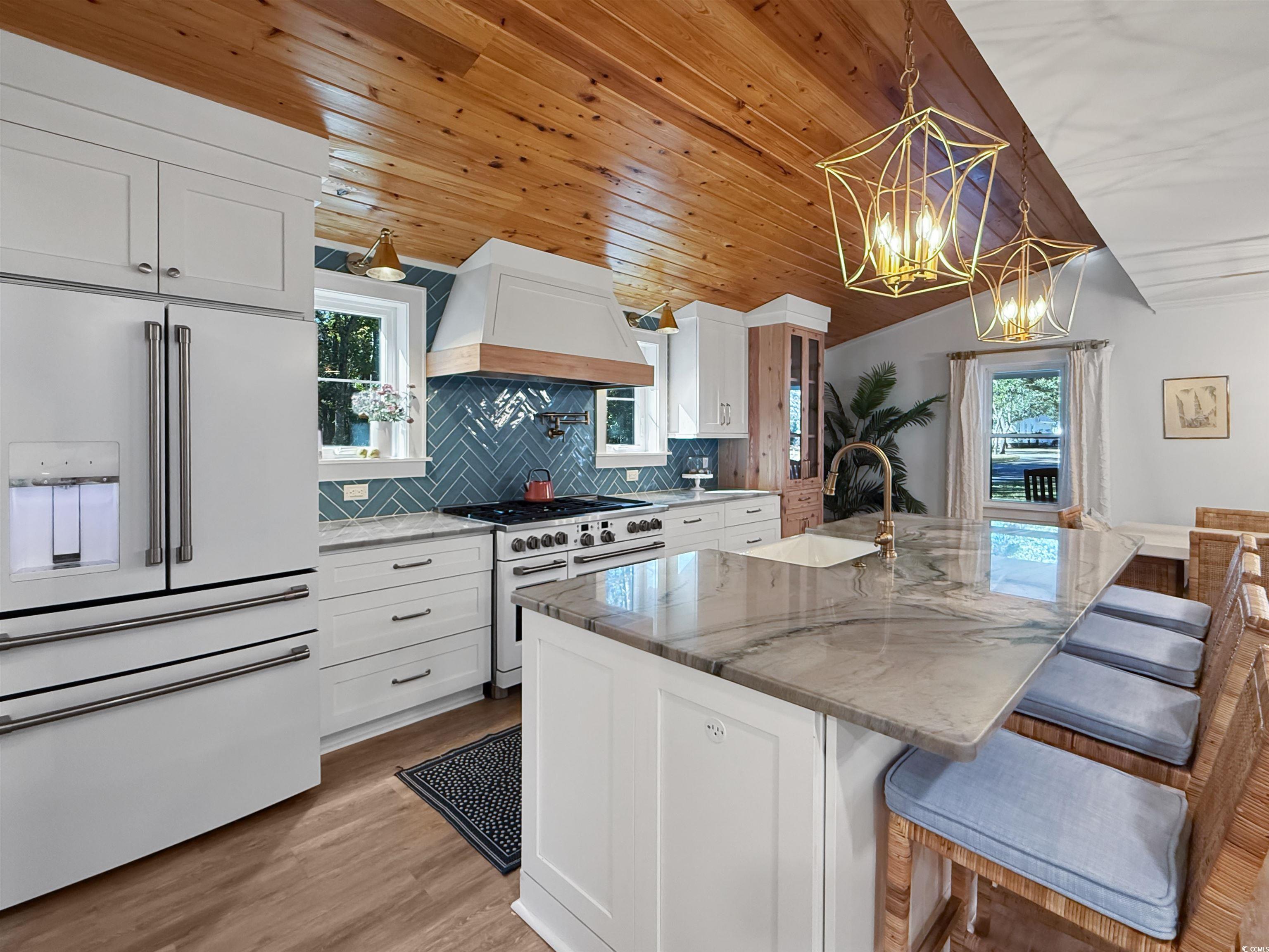 Discover rare privacy at 83 Hammock Ave. Set on a private one-acre lot with NO HOA, this 3,400 sq ft home was completely renovated to the studs in 2023. This 4-bed, 2.5-bath residence showcases quality, modern finishes throughout. The main floor features an open layout and a main-floor primary suite with a beautiful en-suite bath, including a freestanding tub and custom-tiled shower. Upstairs, find 3 additional bedrooms and a large landing. The full-acre lot offers unparalleled freedom. Add a pool, build a workshop, or park your boat with ease. Located just a golf cart ride from the beach or Waccamaw River landing, this property is the perfect blend of thoughtful design and ultimate freedom.