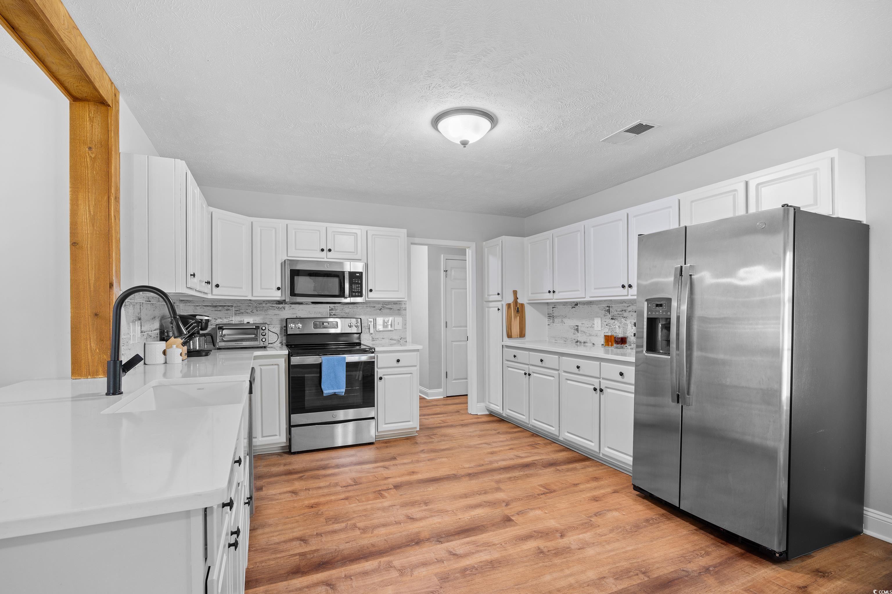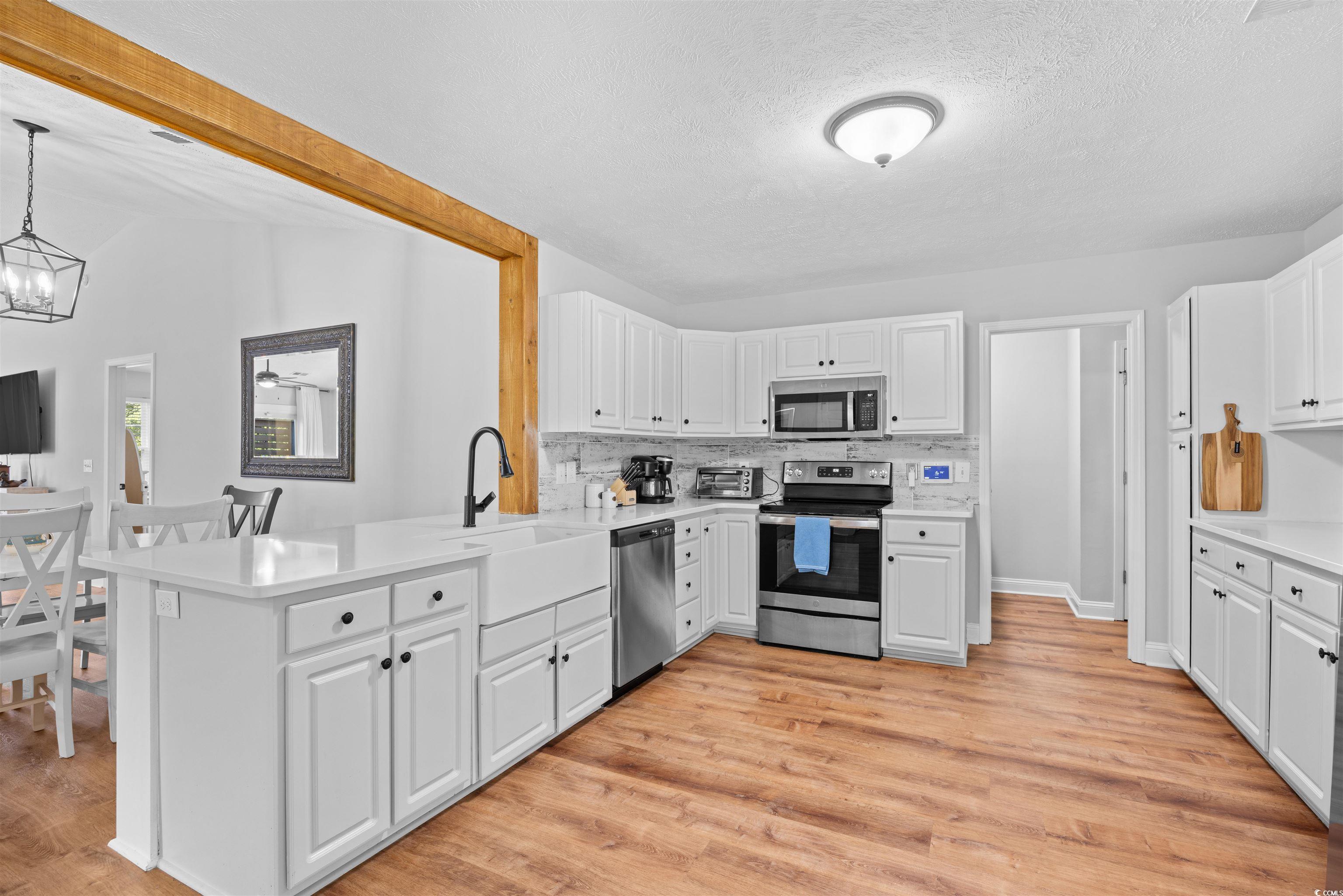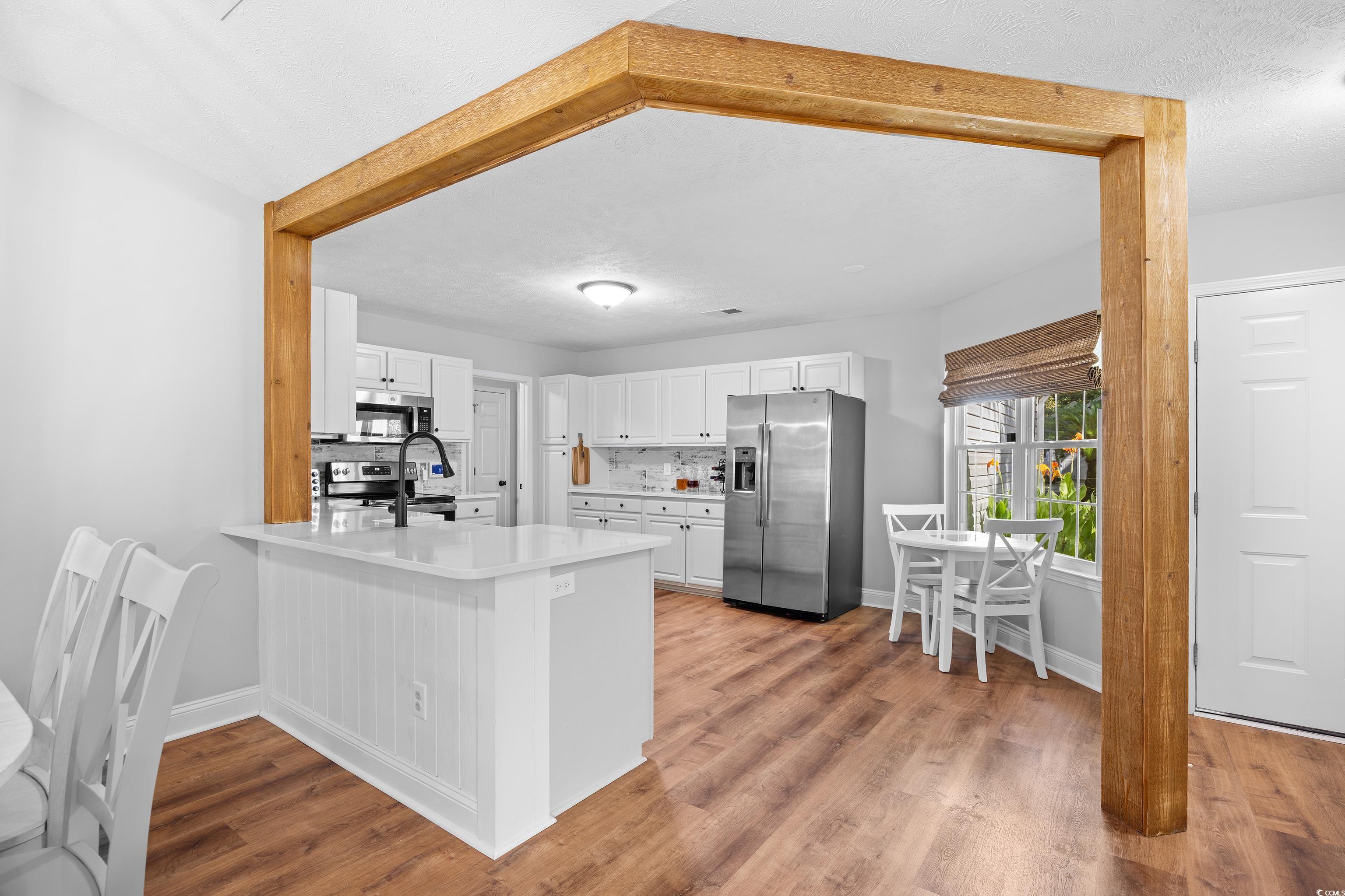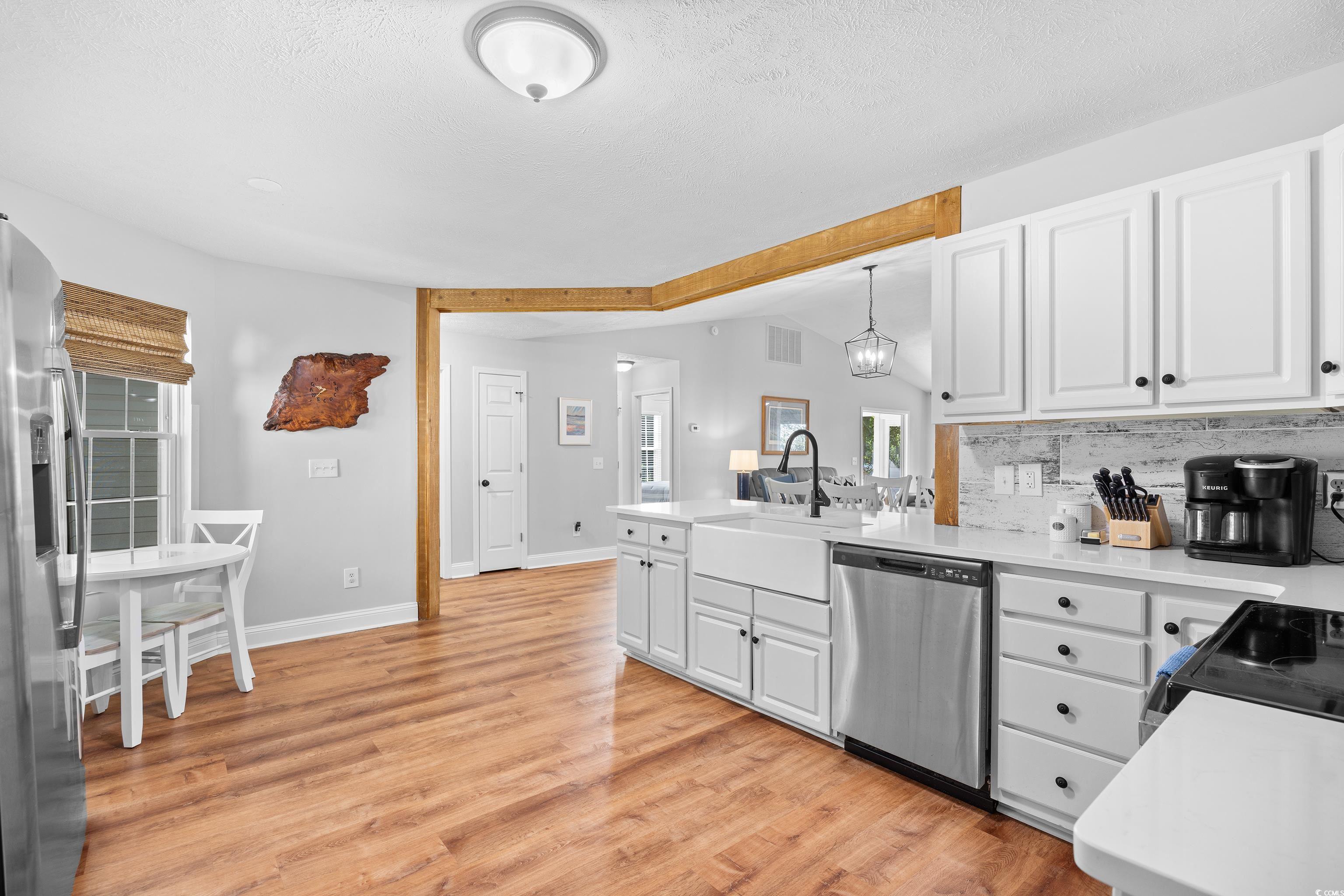 Located just off the South Causeway in Pawleys Island, 83 Reef Run Road offers a relaxed coastal lifestyle in the desirable Rosecrest community with a very low HOA fee. Walk, bike or take the golf cart to the beach or tidal creek from this thoughtfully designed 3 bedroom, 2 bath home with a split layout that provides added privacy between the primary suite and guest bedrooms. The kitchen is updated with stainless steel appliances, quartz countertops, a farmhouse sink and a nearby laundry room for added convenience. The sunroom, with its charming wood paneled ceiling, opens to a private patio which is an ideal setting for outdoor entertainment and relaxation. The generously sized primary bedroom offers a quiet retreat, and the adjoining bath features a garden tub, separate shower, dual vanity and two walk-in closets. A two car garage provides ample storage and convenience. The location of this home offers easy access to local boutique shops, grocery stores, many dining options and nearby golf courses. Charleston is just 70 miles south, making weekend getaways or day trips easily accessible.