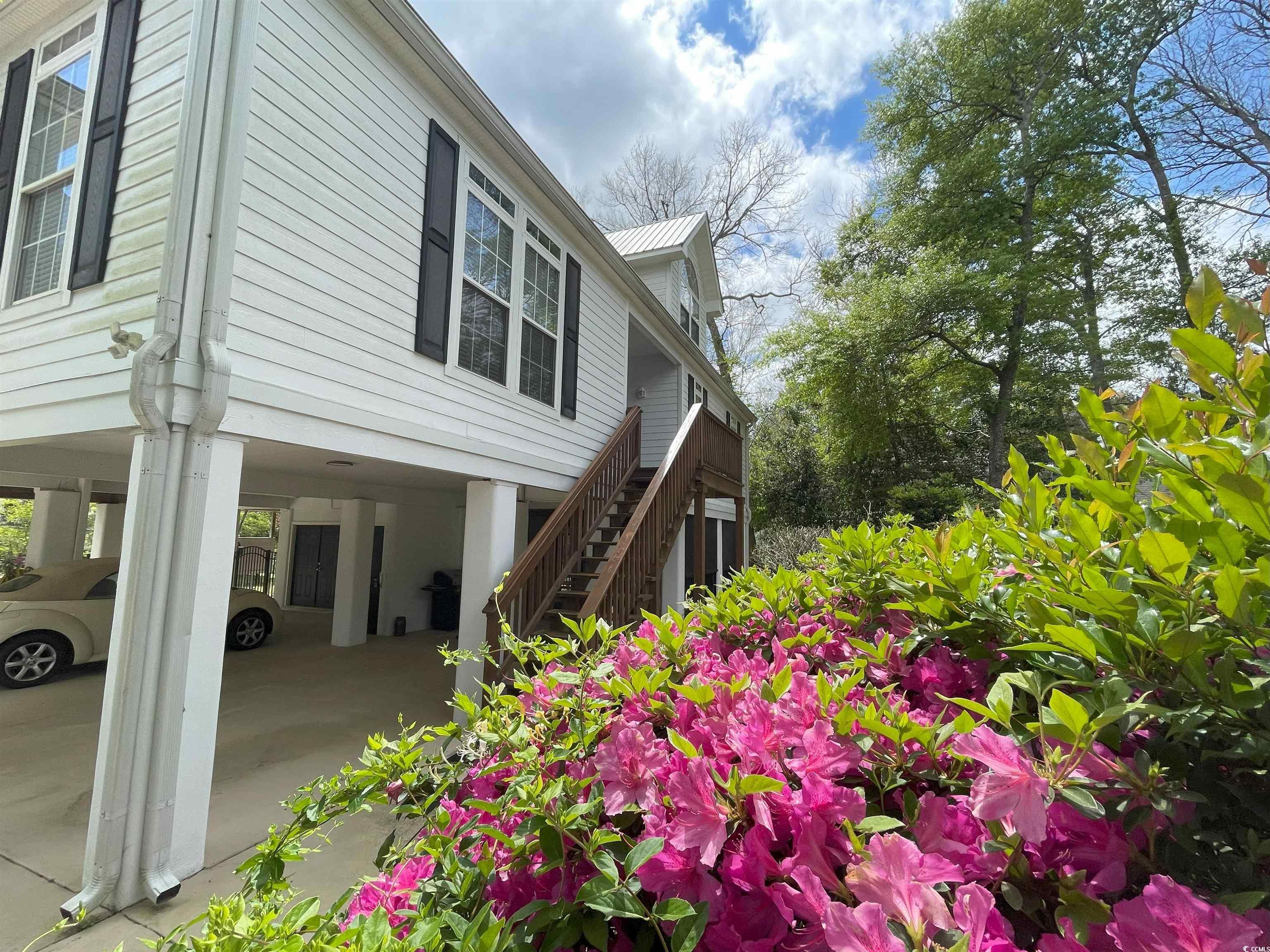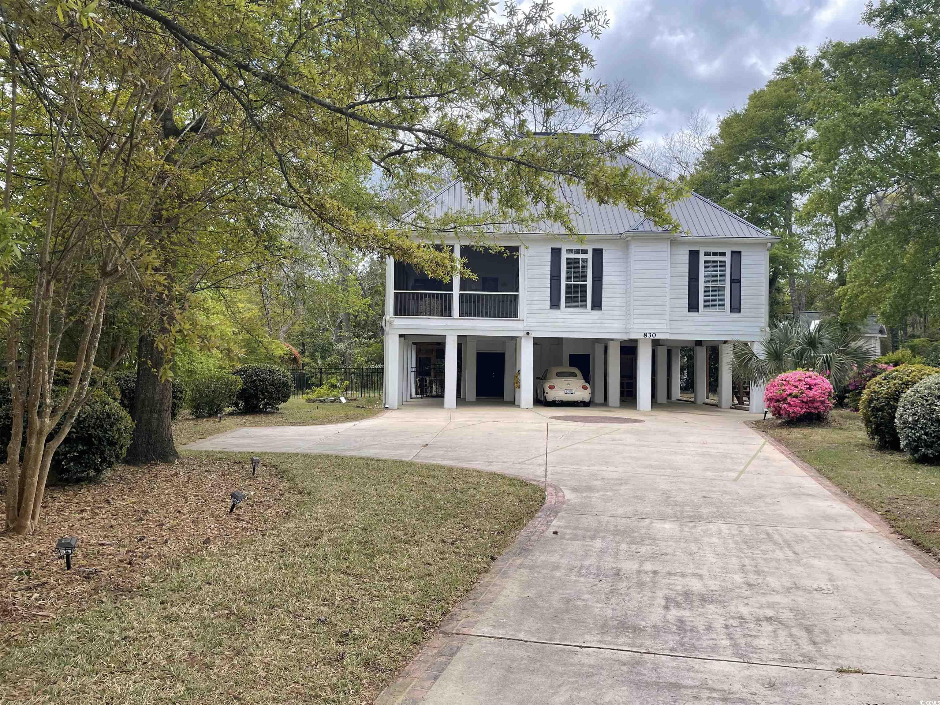 Marsh views from this 2 story, Raised Beach home surrounded by mature trees. Great views from the 2nd and 3rd floor decks. Ground level access from the front steps or central stairwell under the house which is equipped with a chair lift. Plenty of room under the house for three cars to park and additional space in the large driveway. This home has tile flooring throughout the first level with the exception of the 2 bedrooms which are carpeted. One of these bedrooms on the first level has access to a deck with views of the marsh. The kitchen has a center island, granite countertops, stainless steel appliances and a breakfast bar. The large living room has high ceilings, a gas fireplace, access to a large deck and big windows for great lighting in this main living area. Large screened deck has views of the marsh and a bar for entertaining. The whole 2nd level acts as a master suite with a large bedroom, wet bar and balcony overlooking the property with views of the inlet/marsh. You’ll also find a double vanity and jacuzzi tub in the master suite. The home was built with the option to install an elevator at a later date.