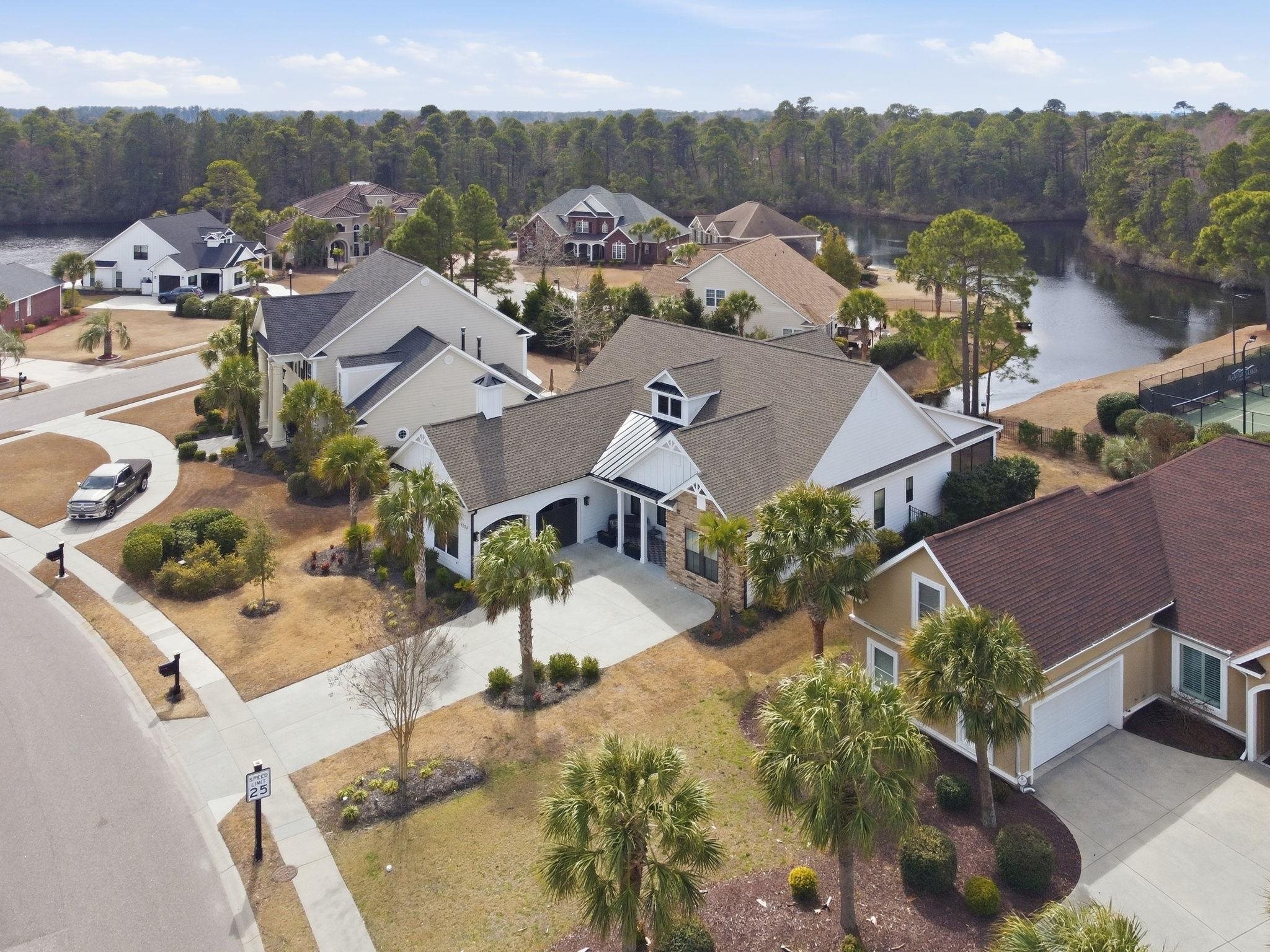 Experience the pinnacle of coastal elegance as you step in to the foyer highlighted by sophisticated wainscoting. Ideal for everyday living as well as entertaining, this home features a spacious living area anchored by natural light-filled windows that frame extraordinary lakefront water views. Located in the desirable Carolina Forest luxury residential community of PLANTATION LAKES, this home provides premier quality of life while being positioned among a scenic 170-acre lake. By design, this builder-model home has many upgrades: custom soft close cabinets and drawers throughout, 10-foot ceilings, 8-foot interior doors, high-end light fixtures and ceiling fans, recessed lighting, quartz countertops covering every surface, arched doorways, detailed moldings, coffered ceiling, telescoping glass doors, as well as premium ceramic plank flooring that flow seamlessly from room to room. Indulge your culinary passions in the gourmet kitchen equipped with gas stove, double oven, top-of-the-line stainless appliances, and motion-activated lighting in the spacious walk-in pantry. The primary suite boasts a cove lighting trey ceiling and motion activated lighting in the custom walk-in closet. Work from home or enjoy online gaming? This home is wired for 2GB fiber optic internet. Need peace of mind for your electronics? A whole-house surge protector is installed along with an HVAC surge protector for an added layer of protection. Each bedroom is spacious yet personalized. The primary suite has lovely views of your sparkling private inlet with a mature tree line beyond the water. For additional privacy, the remaining bedrooms are on the opposite side of the house from the primary suite. Have morning coffee on your screened-in back patio and enjoy the lake view, coastal breezes, the many birds that live on the lake, and lush landscaping in your backyard. Come back in the evening to take in the sunset view! When extra storage is a priority, wait until you see the oversized finished garage, workspace area, and the 400 sq ft temperature-controlled walk-up storage area. Enjoy boating? Hop into your kayak straight from your back yard! Certain POWERED BOATS are allowed to cruise throughout the lake. Enjoy participating in neighborhood activities? This active lake community has many planned activities including holiday gatherings, boat parades, music events, children’s celebratory events, and family events. Plantation Lakes also offers top-tier private amenities including multiple pools, established landscaping, a clubhouse & fitness center, a gated playground, tennis courts, basketball court, as well as double sidewalks on ALL streets! Your new home is only minutes from the beach, Intracoastal Waterway, grocery, shopping, spa, fitness, golf, bike riding, restaurants, healthcare, top-tier schools, international airport and much more - you'll love it! Even the Mister Softee ice cream truck visits weekly – it’s delicious! Schedule your home & community showing today and experience the exceptional lifestyle that awaits.