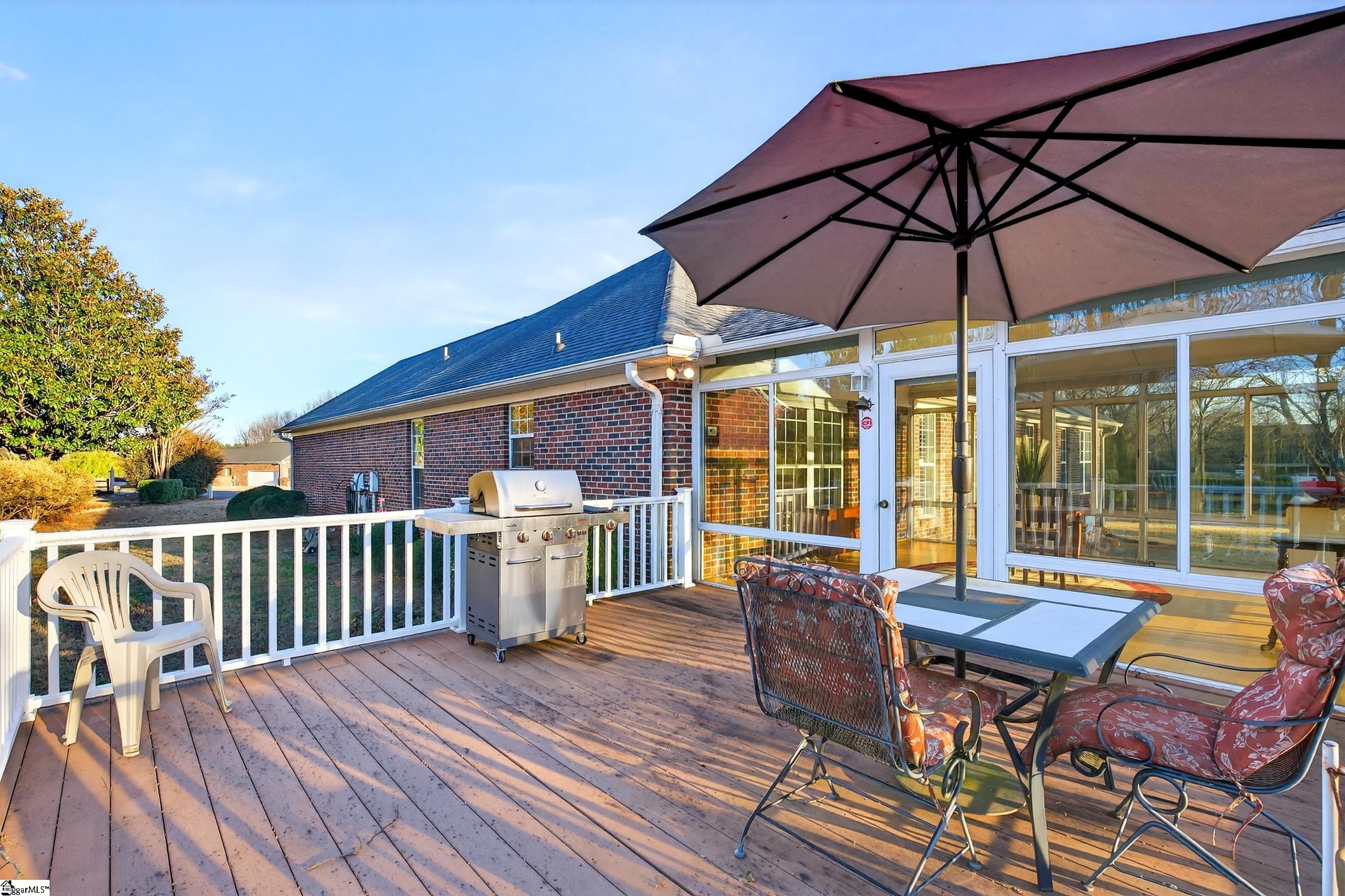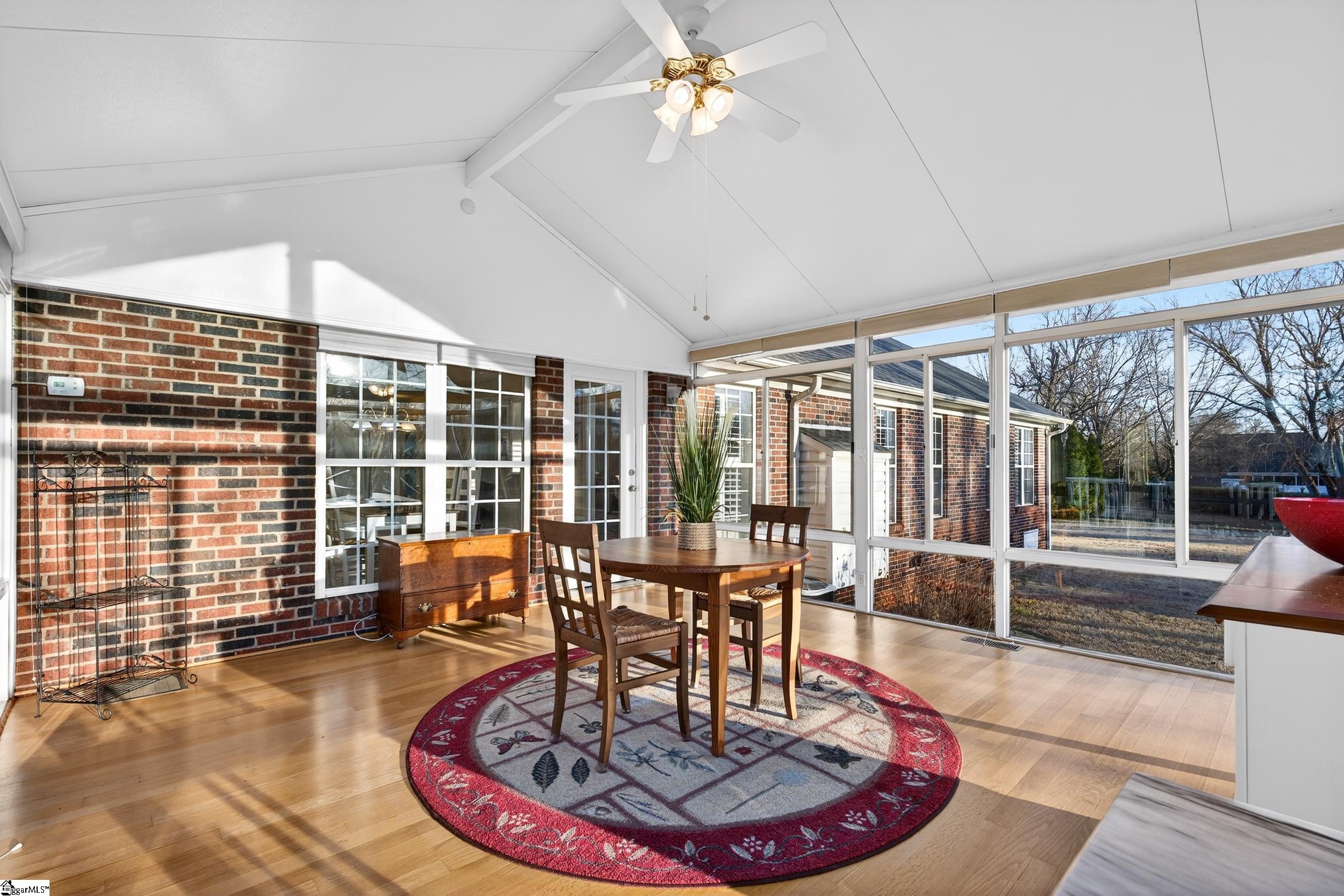 Stunning One-Level Living Near Lake Bowen. Discover this immaculately kept and well-loved home nestled in a quiet cul-de-sac. Perfectly designed for comfort and ease, this residence offers an inviting open floor plan with soaring cathedral ceilings that create a bright, airy atmosphere throughout. At the heart of the home, the large kitchen flows seamlessly into the living room and the sunroom making it ideal for entertaining. Relax by the fireplace in the spacious living area that is open to a charming dining space. The sun drenched sunroom features stunning floor-to-ceiling windows, offering a picturesque view of the surroundings. Step out from the sunroom onto a large porch, the perfect spot for grilling and outdoor dining. Depending on your need, the home offers 4 bedrooms and 2 full baths, or 3 bedrooms with a flex room for an office or playroom. Situated in a peaceful cul-de-sac within the Lakewinds community, offering a serene retreat while remaining close to local amenities. Experience the best of "lake life" with public lake access just steps away from your front door. This home is a rare find that combines a meticulous home with a premier location near Lake Bowen.