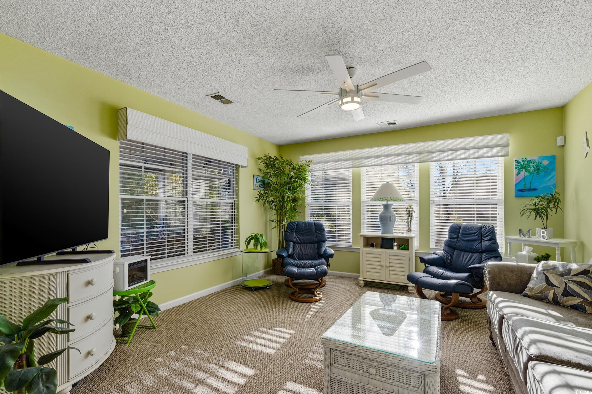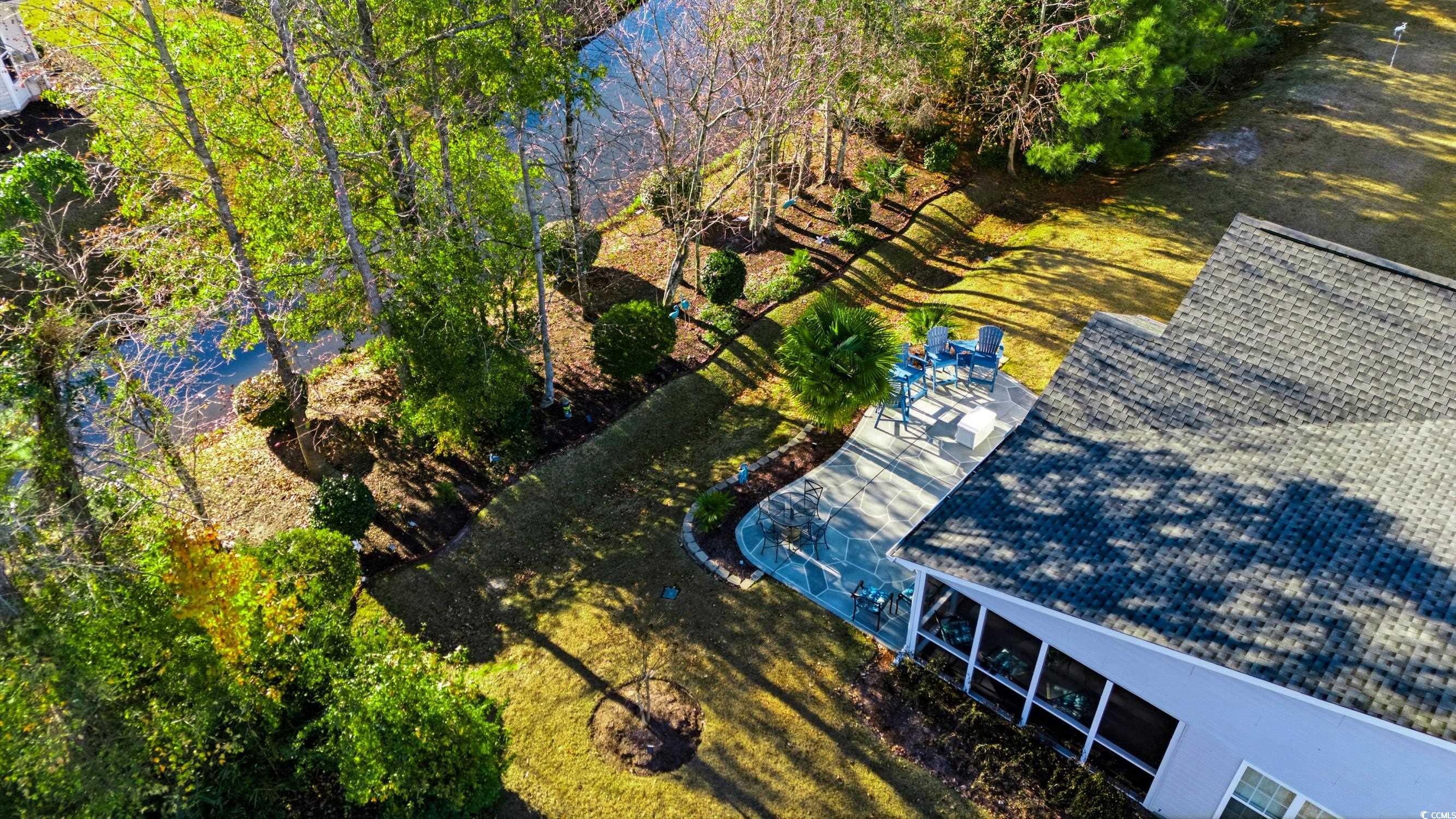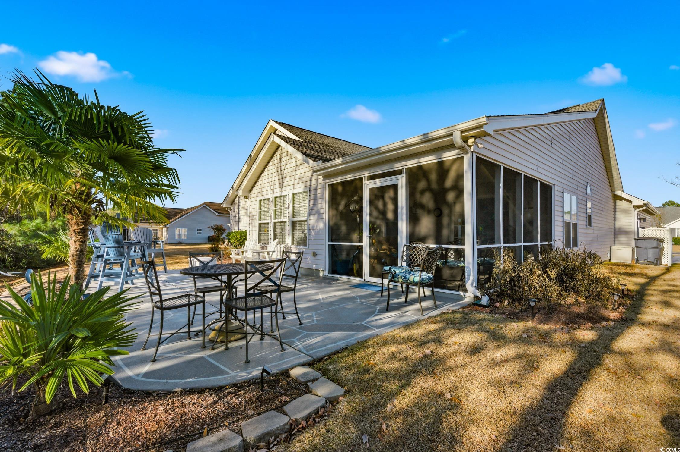 This spacious 3 bedroom, 2 bath home is both well appointed and thoughtfully designed. Sidelights framing the front entry door fill the home with natural light, leading to an open living area accented by vaulted ceilings and decorative plant shelving. The kitchen features fully trimmed white cabinetry, a pantry and a comfortable breakfast nook. The primary suite serves as a peaceful retreat with a vaulted ceiling, a spacious walk in closet, walk in shower and linen closet. Originally constructed with an extra two feet added along the entire side of the home, this thoughtful upgrade expanded all bedrooms and both bathrooms. From the living area, pocket doors lead to the 14 X 14 sunroom adds wonderful living space and is the perfect spot to enjoy morning coffee or curl up with a good book. Perfect for entertaining, this home is both open and inviting with living space that flows easily to your outside oasis providing seamless indoor/outdoor living. Step through the sliding door to a huge, screened porch where you can enjoy the afternoon breeze. Move out onto the large patio framed with palm trees and bask in the warm Carolina sunshine while taking in the tranquil pond view. The oversized 22 x 24 ft 2 car garage includes pull down attic stairs, a utility sink and a convenient side entry door. Recent improvements include a new hot water heater in 2025 and a new roof in 2021. A sprinkler system covers the lushly landscaped lawn. All of this and located just off of the beaten path in the Osprey Woods community. Close to shops, entertainment, restaurants, golf courses, watersports, Osprey Marina and just minutes to the Murrells Inlet Marsh Walk, Market Common and the beautiful, blue Atlantic Ocean's white sandy beaches. Come find your own place in the sun today!