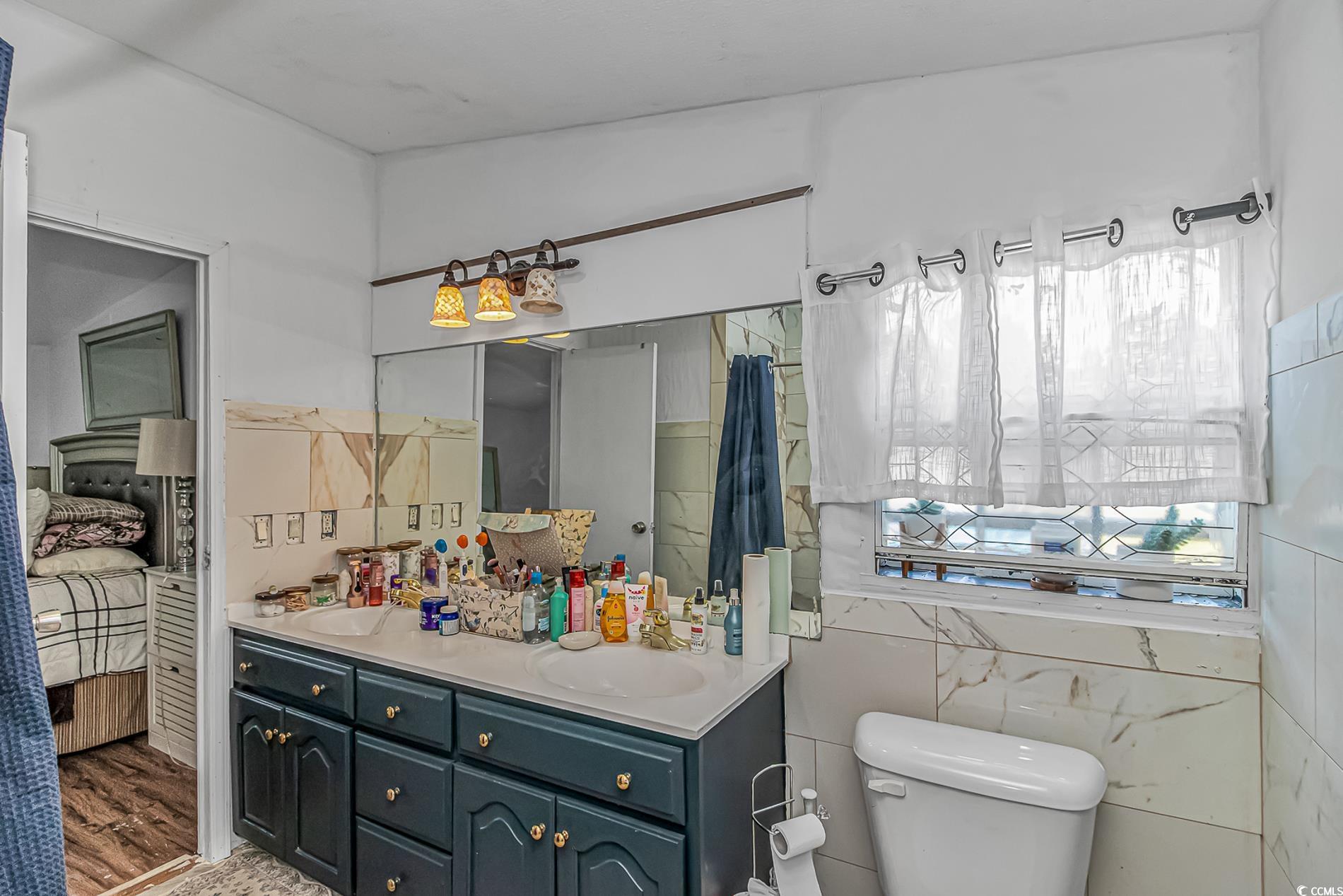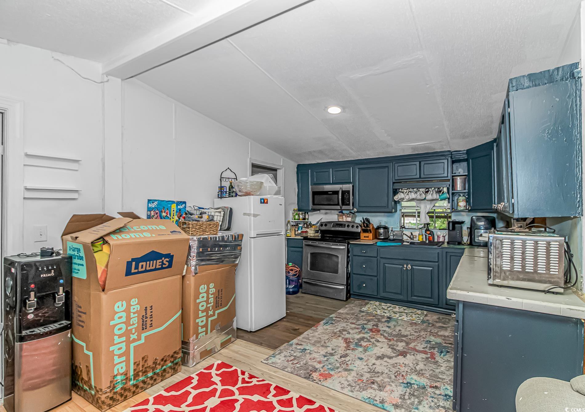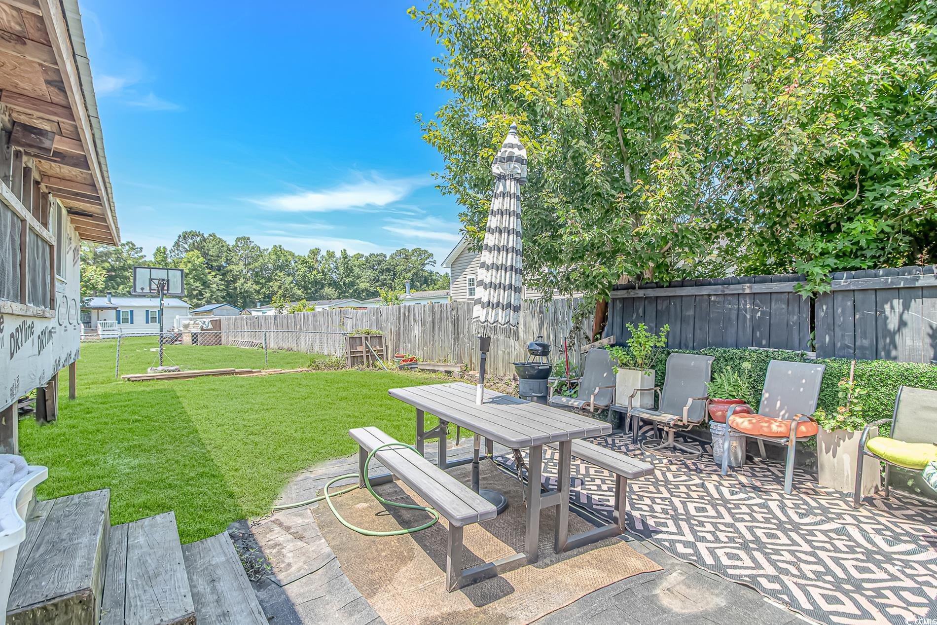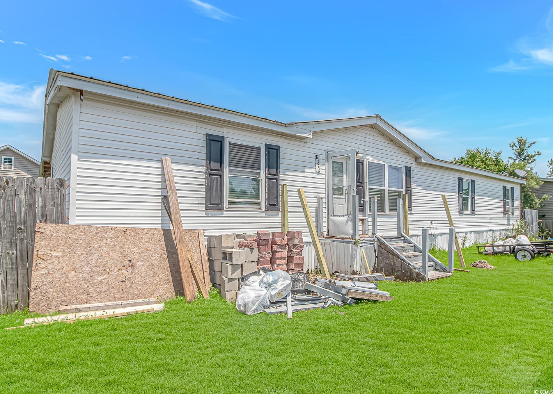Discover comfort and flexibility in this well-maintained 3-bedroom, 2-bath mobile home ideally located in vibrant Myrtle Beach. Thoughtfully divided into two separate living spaces, this property offers an excellent opportunity for multi-generational living, rental income, or simply added privacy. Step inside to a spacious living room that flows seamlessly into the large kitchen, complete with ample cabinet and counter space—perfect for cooking and entertaining. The primary suite offers a peaceful retreat with a dual vanity and a beautifully tiled walk-in shower. The additional bedrooms are generously sized, and the second full bathroom also features a stylish walk-in tile shower. Outdoor living is easy with a covered back porch overlooking the backyard, plus a patio area with space for seating or grilling. Whether you're looking for a smart investment or a flexible place to call home, this Myrtle Beach gem combines space, functionality, and location. Just a short drive to shopping, dining, entertainment, and the beach! Use preferred lender to buy this home and receive an incentive towards your closing costs!