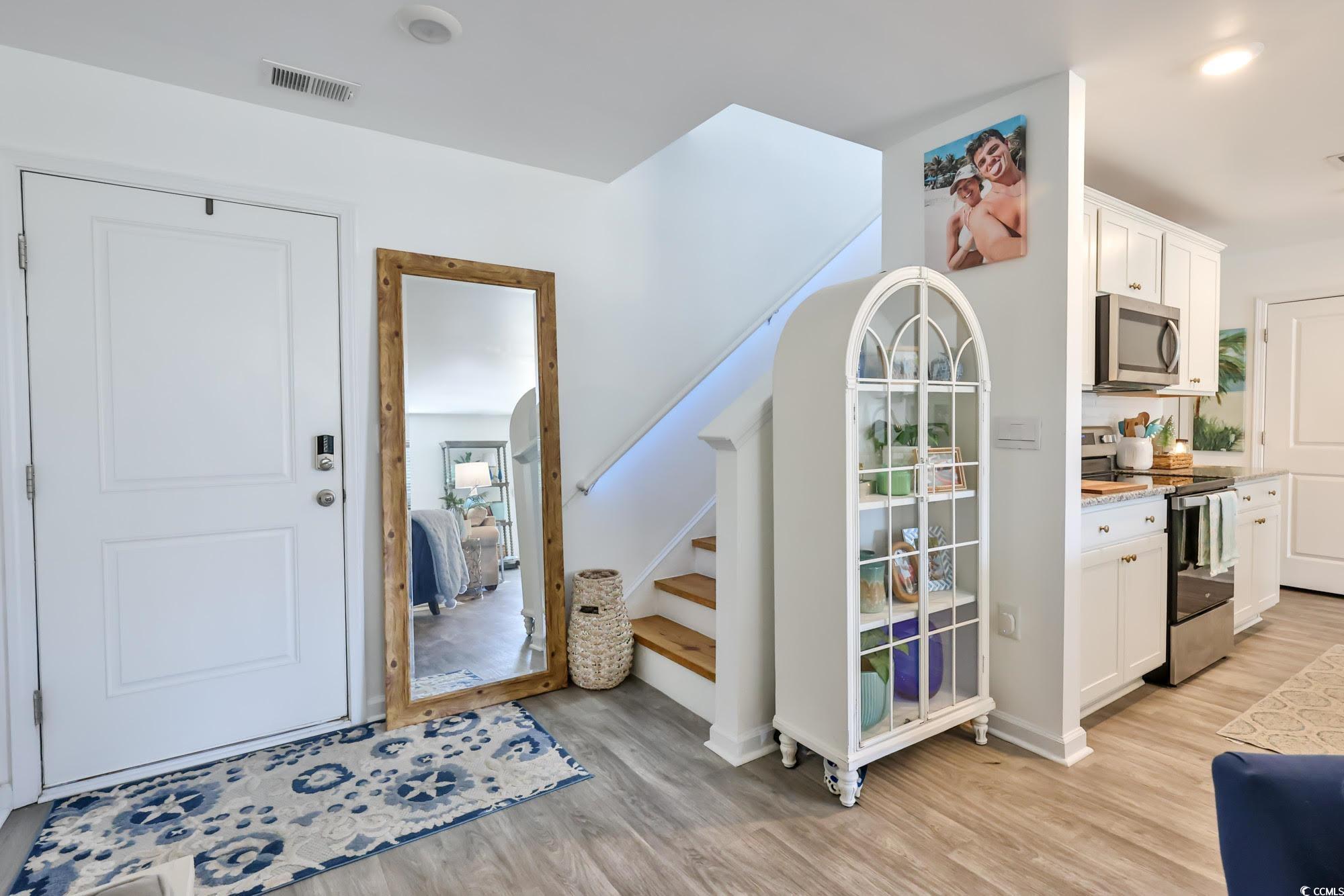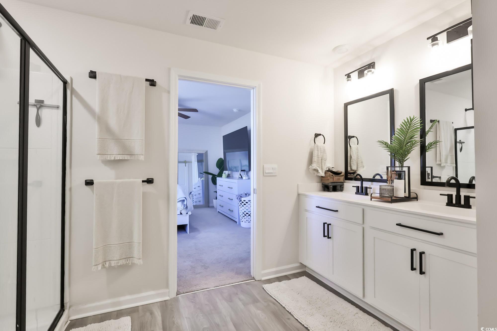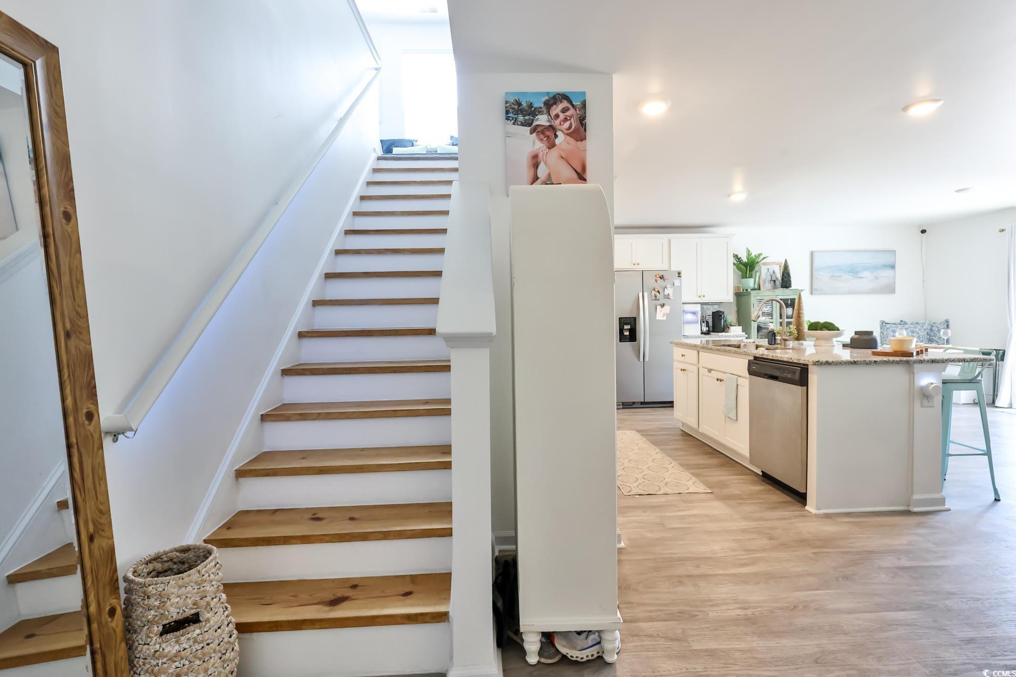 Welcome home to an immaculate 4 bed, 2.5 bath home built in 2022 and tucked inside the boutique community of The Enclave at 67th, just a quick 1/2 mile ride to the beach. This modern two-story home offers an open concept layout, a spacious kitchen featuring granite countertops, stainless steel Whirlpool appliances, a huge island, and sliding doors leading to a covered porch and patio overlooking a private, peaceful pond. Taking the gorgeous hardwood stairs up, you’ll find the owner’s suite, a beautiful upgraded master bathroom, additional bedrooms, guest bathroom and a conveniently located laundry room. Sitting on a large 0.35-acre lot with a two-car garage and smart-home technology throughout, this home blends coastal living with modern comfort all in a quiet community of only about 21 homes with low HOA dues. Book your showing today!