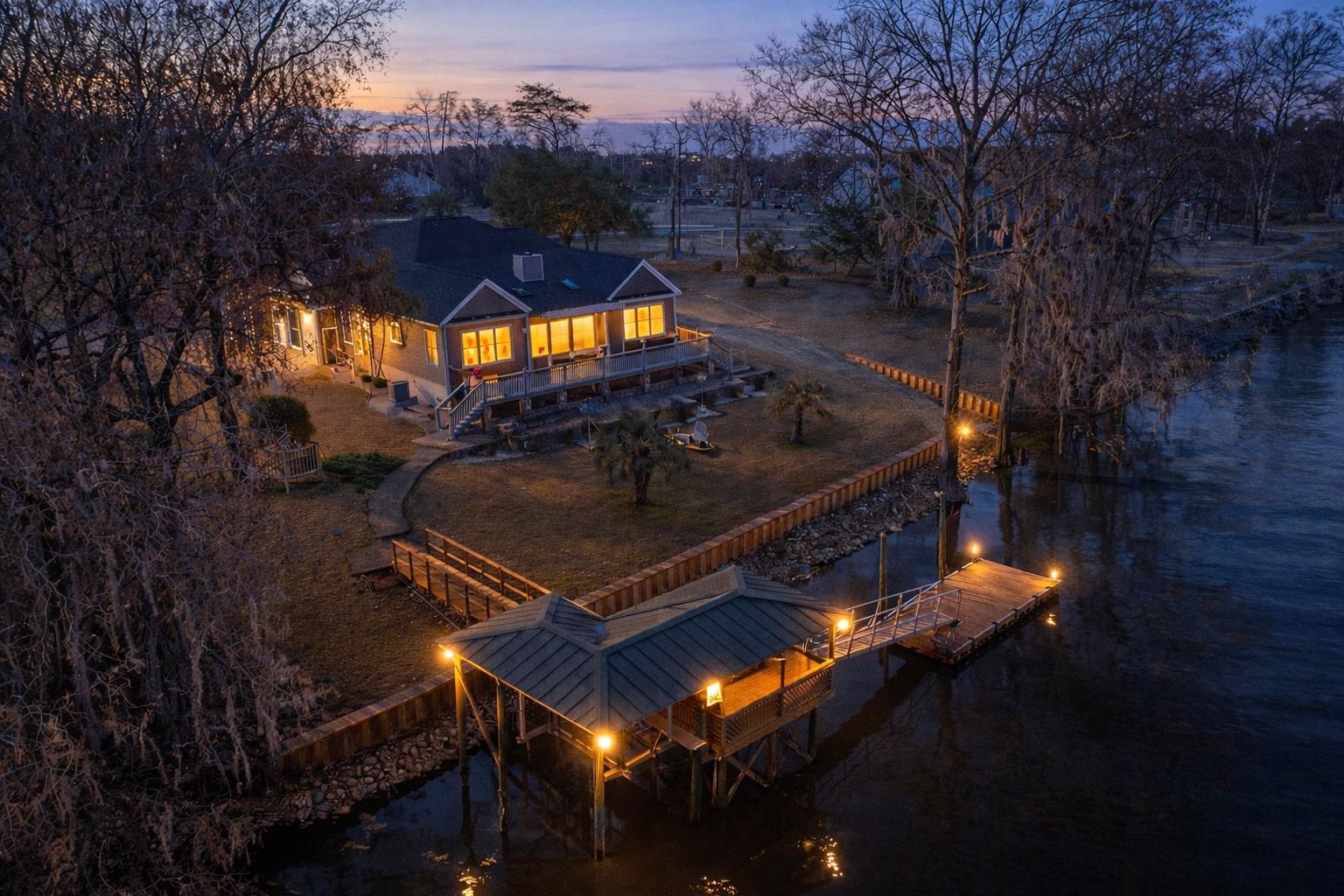 A truly rare opportunity on the Waccamaw River, where privacy, space, and waterfront living come together in a way that’s almost impossible to find. Welcome to 843 Caines Landing Rd. in Conway, a one-of-a-kind, all-brick riverfront home set on 2.29 acres with NO HOA, offering the freedom and waterfront lifestyle so many buyers are searching for, but few ever find. The property boasts an impressive 262 feet of frontage on the Waccamaw River and is adjacent to Shaftesbury Glen Golf Course, creating a unique blend of natural beauty and nearby amenities. Designed for life on the water, this property features a marine-grade seawall, a private boat ramp, a large covered day dock, and a 6,000-pound covered boat lift, making boating and river access effortless. Whether you’re cruising, fishing, or simply enjoying the peaceful views, this setup delivers true waterfront living. Built-in benches and a covered dock area provide the perfect place to relax and take it all in. The home itself is equally impressive. Brazilian cherry hardwood floors flow throughout the main living areas, adding warmth and timeless elegance. A massive back porch and large screened-in porch both overlook the river, creating exceptional spaces for entertaining or unwinding. A welcoming front porch adds classic Southern charm, while a pergola with hot tub offers a private retreat under the stars. Inside, the home has been recently painted and thoughtfully updated. The kitchen features granite countertops and black stainless steel appliances, blending modern style with everyday functionality. The spacious living room showcases 12-foot ceilings and a built-in gas fireplace, creating a bright yet inviting atmosphere. The primary bathroom has been beautifully renovated with a stunning tile shower and double-sink vanity. A dedicated office or workout room overlooking the river adds flexibility and makes working from home feel like a luxury. The home also offers modern convenience and peace of mind with smart switches and smart lighting throughout, an encapsulated crawlspace, a 10-zone irrigation system, and a brand-new roof installed in 2025. For car enthusiasts, boaters, and hobbyists, the property includes a detached garage spanning over 1,200 square feet, ideal for storage, projects, or additional vehicles. A finished room is located above the attached garage to the home, offering excellent flexibility for a guest space, home office, studio, or bonus room. An expansive driveway leads all the way to the home, providing ample parking for guests, trailers, boats, and RVs. Adding even more value, the property includes approximately one additional acre of cleared land to the right of the home, complete with its own pond, ideal for future expansion, recreation, or simply enjoying enhanced privacy. waterfront. Acreage. No HOA. Private boat access. Homes like this on the Waccamaw River are incredibly rare. This is more than a home, it’s a lifestyle.
