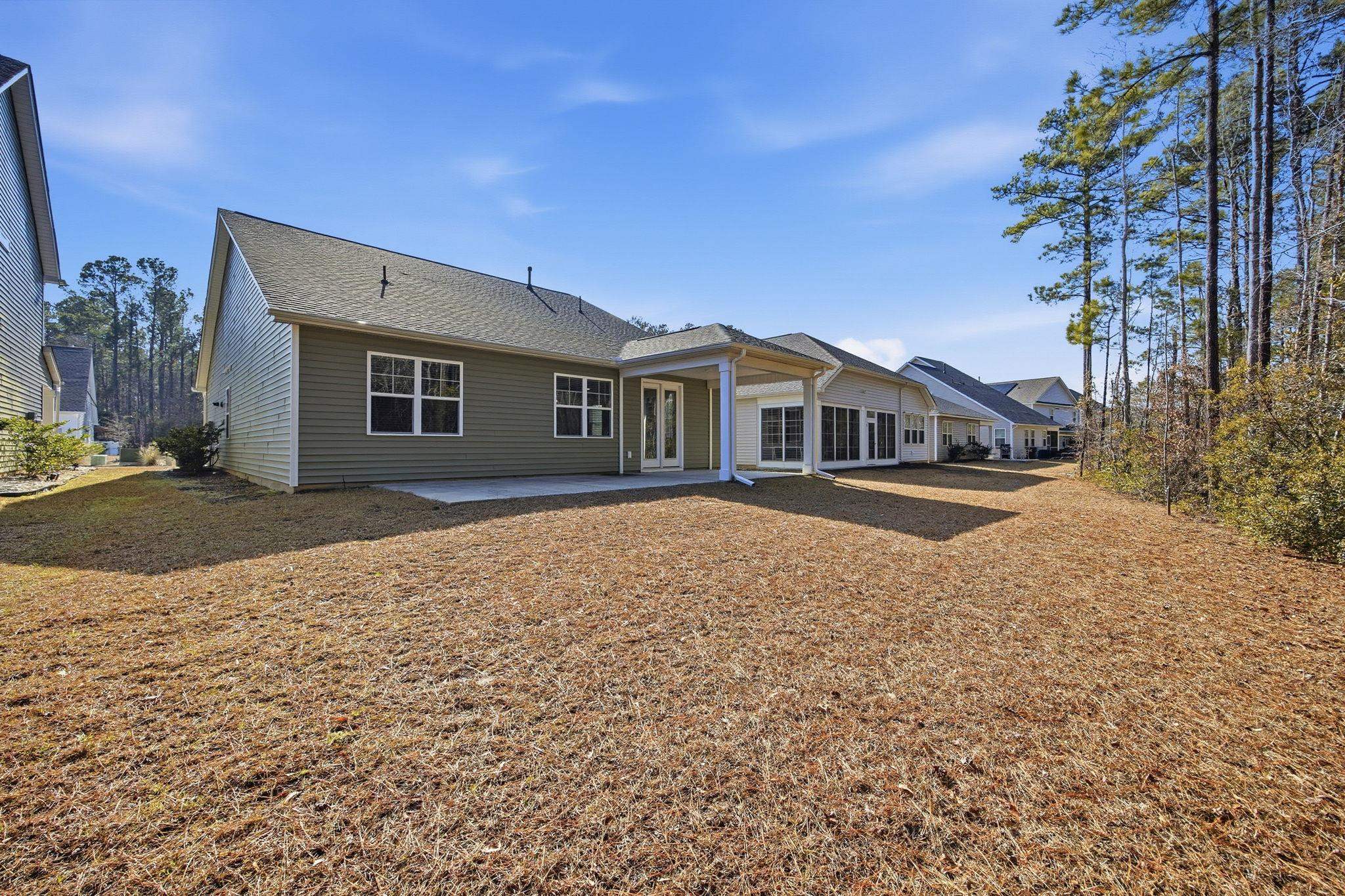 Tucked near the end of a quiet cul-de-sac in the desirable Hidden Brooke natural gas community of Little River, this beautiful 3-bedroom, 2-bath home offers privacy and serenity with a backdrop of mature trees and preserved natural landscape. A bright open layout with 9-foot ceilings creates an airy feel, complemented by durable LVP flooring throughout the main living areas. The kitchen impresses with a granite island and breakfast bar, gas range, stainless steel appliances, large pantry, and 36-inch staggered cabinetry flowing into the dining space and living room. Sliding glass doors lead to a covered patio, providing the perfect spot to relax or entertain while enjoying the wooded setting. The spacious primary suite features a walk-in closet and a private ensuite bath with dual vanities, while two additional bedrooms share a separate full bath. A dedicated laundry room adds everyday convenience, and the attached 2-car garage provides ample storage. Additional highlights include a tankless water heater for energy efficiency. Hidden Brooke residents enjoy a clubhouse with exercise room, resort-style pool, bocce ball court, and a lakeside fire pit, all just minutes from Highway 31, shopping, dining, and the beaches of North Myrtle Beach offering comfort, practicality, and a peaceful coastal lifestyle buyers are looking for.