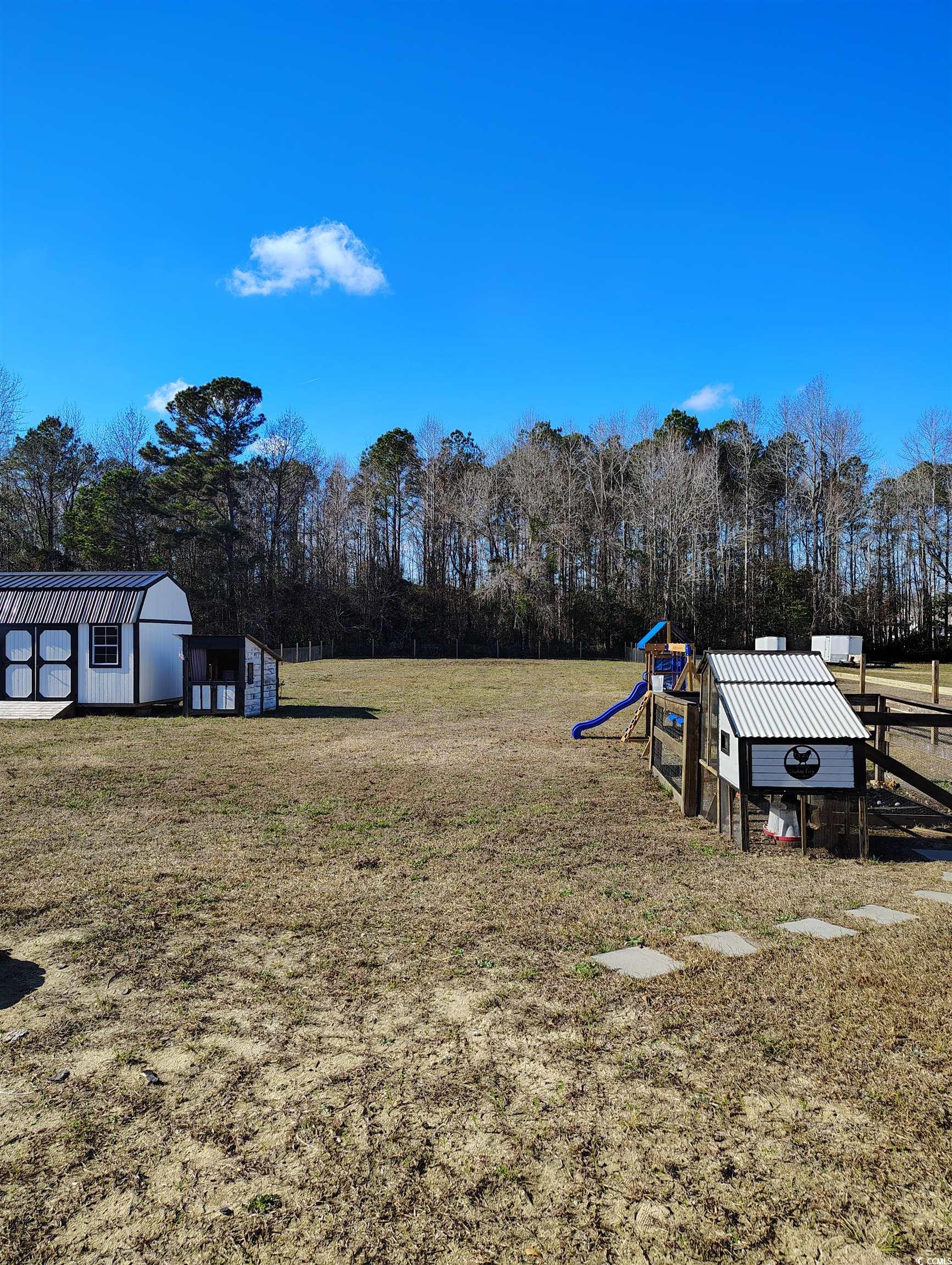 Unlock the key to your future with this inviting home in the country. Built in 2023, this home is still featuring new quality, plus many owner upgrades. Sitting on an amazing .81 acres with NO HOA's and NO RESTRICTIONS. Country location at its best, with only a few miles each direction to access city limits, highways and beaches. This home features 3 bedrooms, 2 full baths. Vaulted ceilings, granite counter tops, tiled backsplash, large pantry, LVP flooring throughout, custom designed master walk in closet, above the cabinet remote control lighting and security cameras. The exterior features an inviting front covered porch and attached rear storage shed. The concrete back patio is extended to full length of the home allowing plenty of space for outdoor entertaining. Additional property upgrades include, a 10X16 shed with double lofts on each side for storage, fully fenced in back yard, chicken coop and home gutters. Owner is selling due to job relocation.