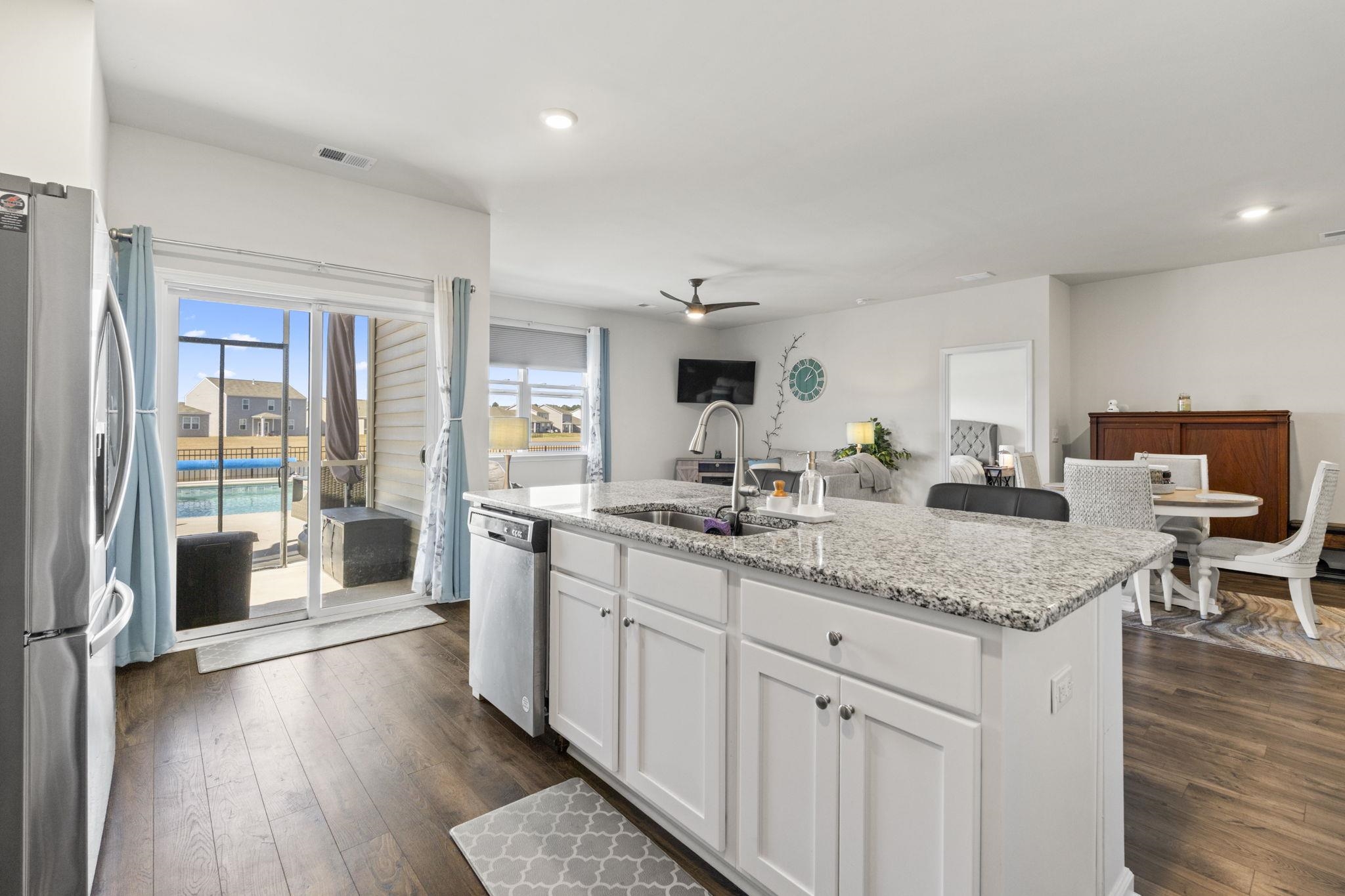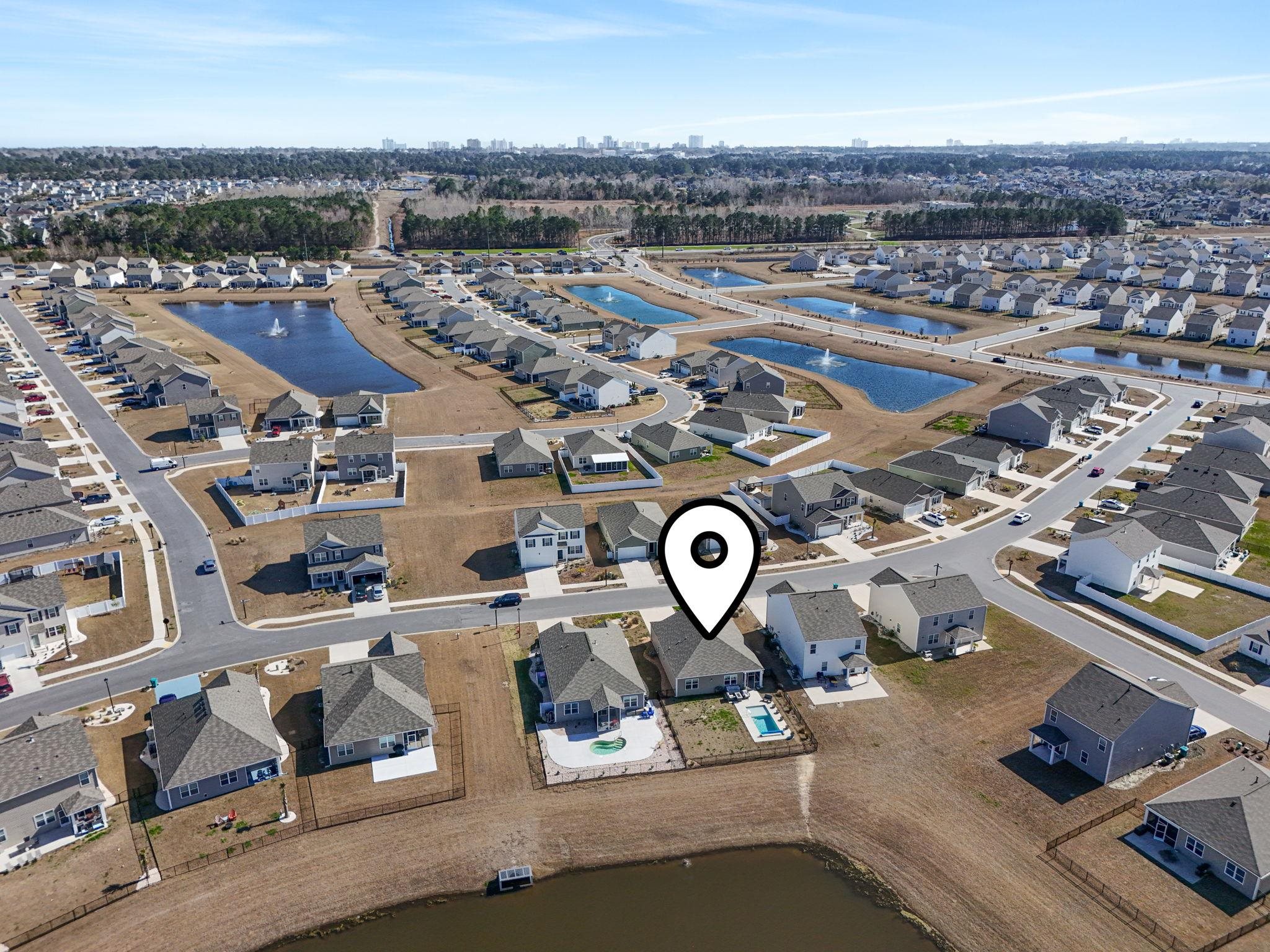 Pond views, single level living, and exceptional upgrades come together in this beautifully maintained 3 bedroom, 2 bath traditional-style home in the heart of Carolina Forest. This thoughtfully enhanced property features a salt water in-ground pool, fencing, and whole-house generator hookup, adding comfort, security, and outdoor enjoyment rarely found in this area. The open-concept layout creates an inviting flow throughout the main living spaces, highlighted by a kitchen designed for both functionality and style. Enjoy abundant granite counter space, a matching work island that doubles as a breakfast bar, a gas range, and a spacious pantry, all seamlessly connected to the dining area and living room - perfect for everyday living and effortless entertaining. The split bedroom floor plan provides desirable privacy for the primary suite, complete with a generous walk-in closet and an ensuite featuring a double sink vanity and a stunning 5' step-in shower. Two additional guest bedrooms share a well-appointed bathroom with a tub/shower combination. A screened back patio overlooks peaceful pond views, complementing the in-ground pool and creating an ideal outdoor retreat. Additional upgrades include a tankless gas water heater, smart home features, and an attached 2 car garage that provides valuable storage and convenience. Residents of Village Oaks enjoy community amenities such as a clubhouse and an outdoor pool, enhancing the neighborhood's appeal. Situated in Myrtle Beach with quick access to Highways 31 and 22, this home offers exceptional connectivity throughout the Grand Strand. Located in the center of Carolina Forest, you're just minutes from top-rated schools, shopping, dining, medical offices, golf courses, and the beach. With its prime location, modern features, and welcoming layout, this home delivers a remarkable blend of coastal convenience and everyday comfort. Measurements are not guaranteed. Buyer is responsible for verifying.