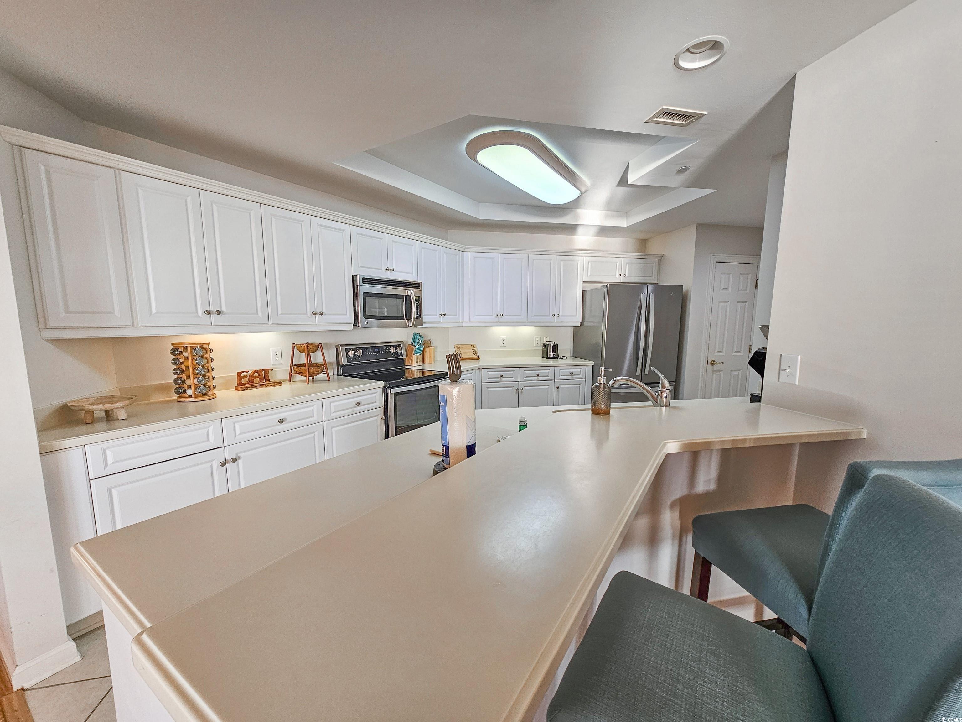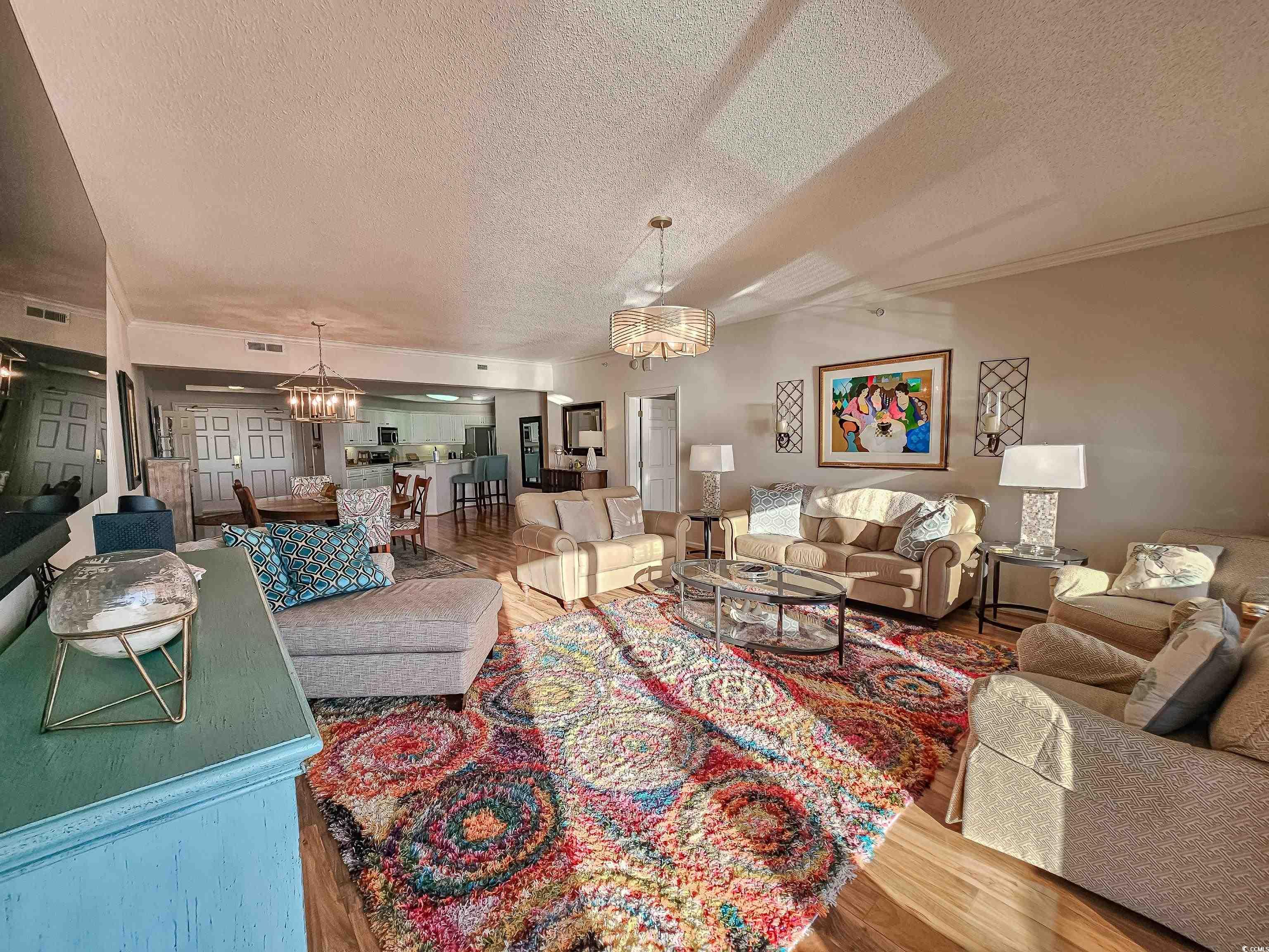 From the moment you open the double wood doors and step into the foyer, you realize the uncompromised elegance of this oceanfront tower. This direct oceanfront three-bedroom, three-bath luxury residence has 2,426 sq. ft. of free-flowing entertainment areas and 9-foot ceilings throughout. The professionally designed gourmet kitchen has solid surface countertops and a large pantry. The laundry room has it's own entrance, great for entering when coming in from the beach. The oversized master suite opens onto the balcony, with a large bathroom with a whirlpool tub and walk-in shower. Nothing has been overlooked! The outdoor pool with the upper pool is heated year-round, and the five-story parking garage has 24-hour security. Located inside the Kingston resort, this 145-acre master-planned gated oceanfront resort has it all! Oceanfront hotel, Spa & fitness center, tennis, pickleball courts and over 1/2 mile of sandy beaches. Great primary residence, second home or rental option. A must-see!