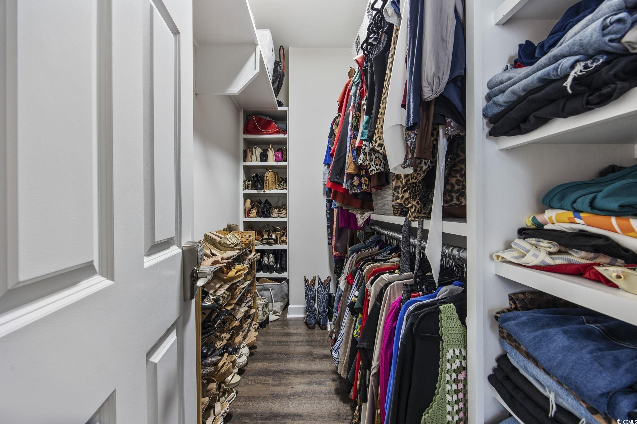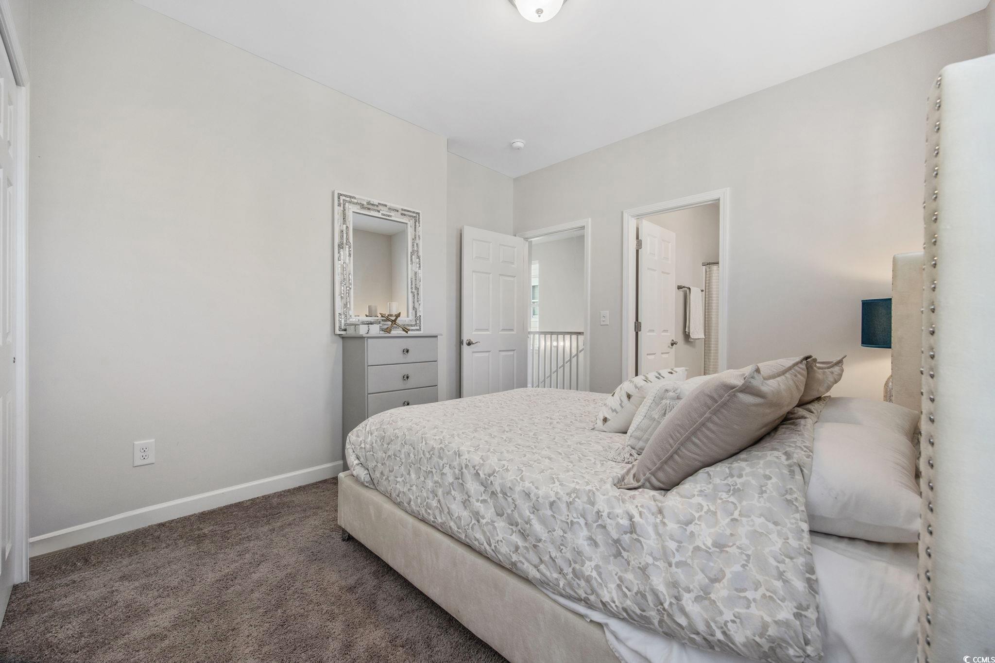 Welcome home to this better than new townhome in the heart of The Market Common in Myrtle Beach. This 2 bedroom, 2.5 bath END UNIT townhome is beyond move-in-ready with upgrades galore. Upon walking in the front door the whole downstairs is open and stunning with plenty of natural light and Plantation shutters throughout. The kitchen has upgraded granite countertops, stainless steel matching appliances including a natural gas range, plenty of cabinets, herringbone tile backsplash, and decorative pendant lights. There is space on the island for barstools or the option of dining in the dining nook. There is also a double door pantry and half bath on this floor. Crown molding is featured throughout the first floor and there is a door off the living room that leads to the back patio where you can enjoy some fresh air. Upstairs are the 2 bedrooms each with their own ensuite. The owners' bathroom is spacious and features a double vanity. The owners' bedroom also has Plantation shutters, ceiling fan, and large walk-in custom closet. The second bedroom could be a bedroom or a home office. It has its' own bathroom with a tub/shower combo. The washer and dryer are on the same floor as the bedrooms and convey with the home. There is outside attached storage and a tankless hot water heater. Living in this community there is easy access to the beach, dining, shopping, and entertaining... all is a golf cart ride, bike, or walk away! From this townhome is literally just feet to the downtown Market Common. The HOA includes the Market Common Amenity Center that features a large pool, 2 hot tubs, a lazy river, kiddie pool, ping pong and gym. Trails, bowling, a dog park, a movie theater, playgrounds, and gyms are all just some parts of living the lifestyle of The Market Common. Schedule your showing of this immaculate home today!
