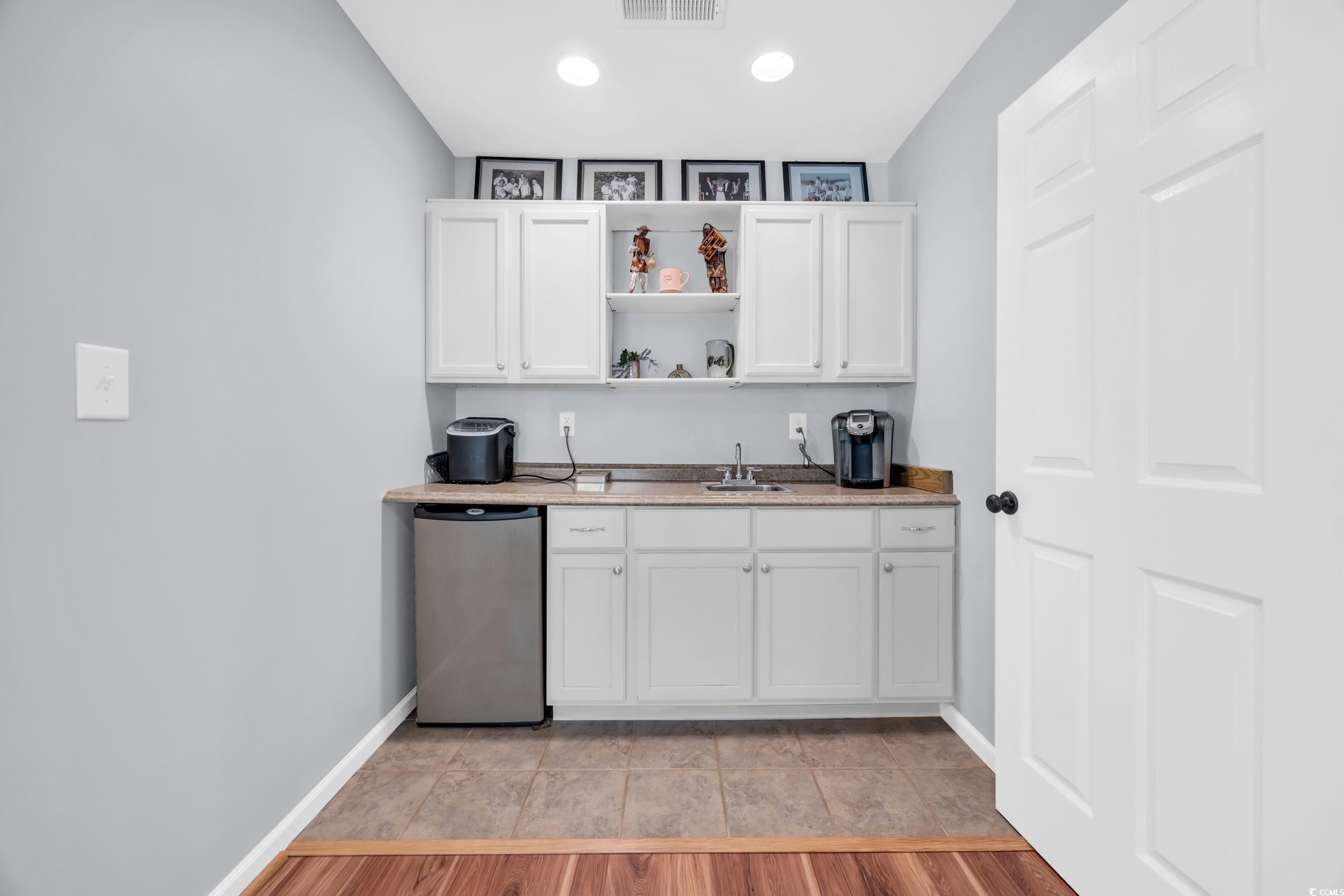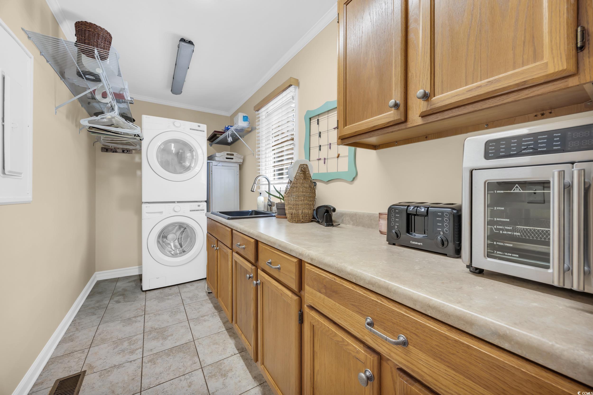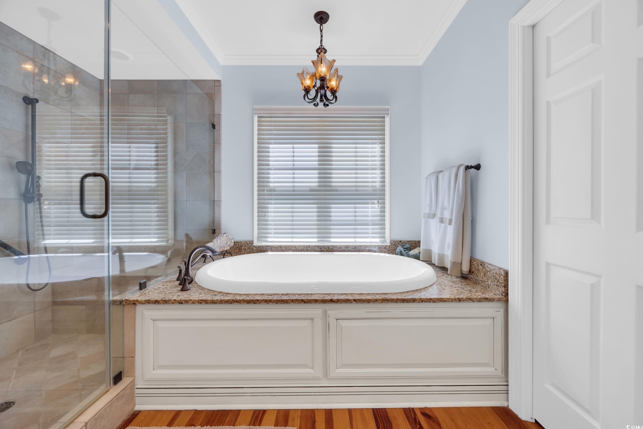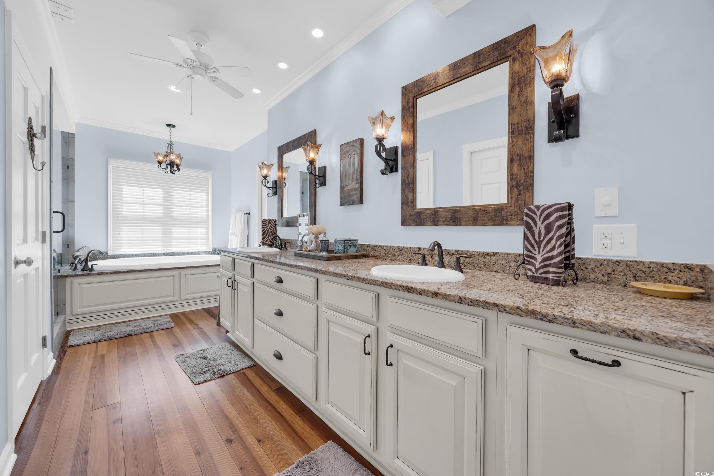 Welcome to your coastal retreat in Murrells Inlet! This charming 4-bedroom, 3.5-bath home offers a unique blend of Southern charm and modern convenience, all without the restrictions of an HOA. Step inside and be captivated by the warmth of the original heart pine flooring that flows throughout the entire home. The open and airy floor plan is perfect for first-floor living, featuring a cozy living room with a fireplace, ideal for relaxing evenings. The kitchen is a chef's delight, boasting stainless steel appliances and ample counter space. A truly unique feature of this home is the converted garage, which has been transformed into a second master bedroom, providing a private and spacious sanctuary. The home also includes a Carolina room, a perfect space for enjoying your morning coffee or unwinding with a good book while overlooking the serene backyard. Outside, you'll find an inviting brick patio, perfect for entertaining or enjoying the beautiful Murrells Inlet weather. The outdoor shower is a thoughtful addition, making it easy to rinse off after a day at the beach. Speaking of which, this home is just a short golf cart ride away from the beach and the famous Murrells Inlet Marshwalk, offering a variety of dining, shopping, and entertainment options. Additional features include a new roof installed in 2023, ensuring peace of mind for years to come. Located in the highly sought-after Horry County School District, this home provides the perfect setting for families. Don't miss this opportunity to own a piece of paradise in Murrells Inlet!