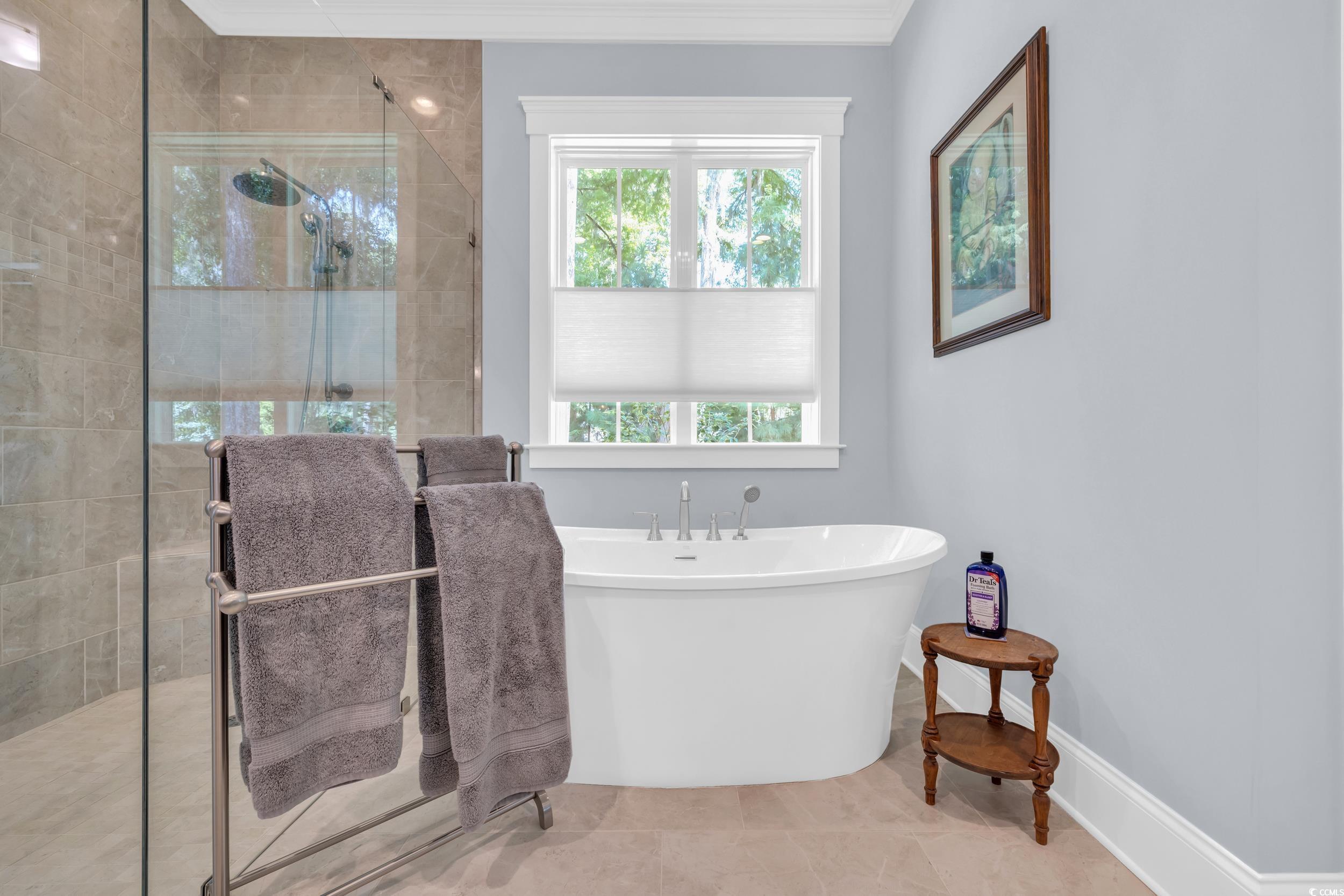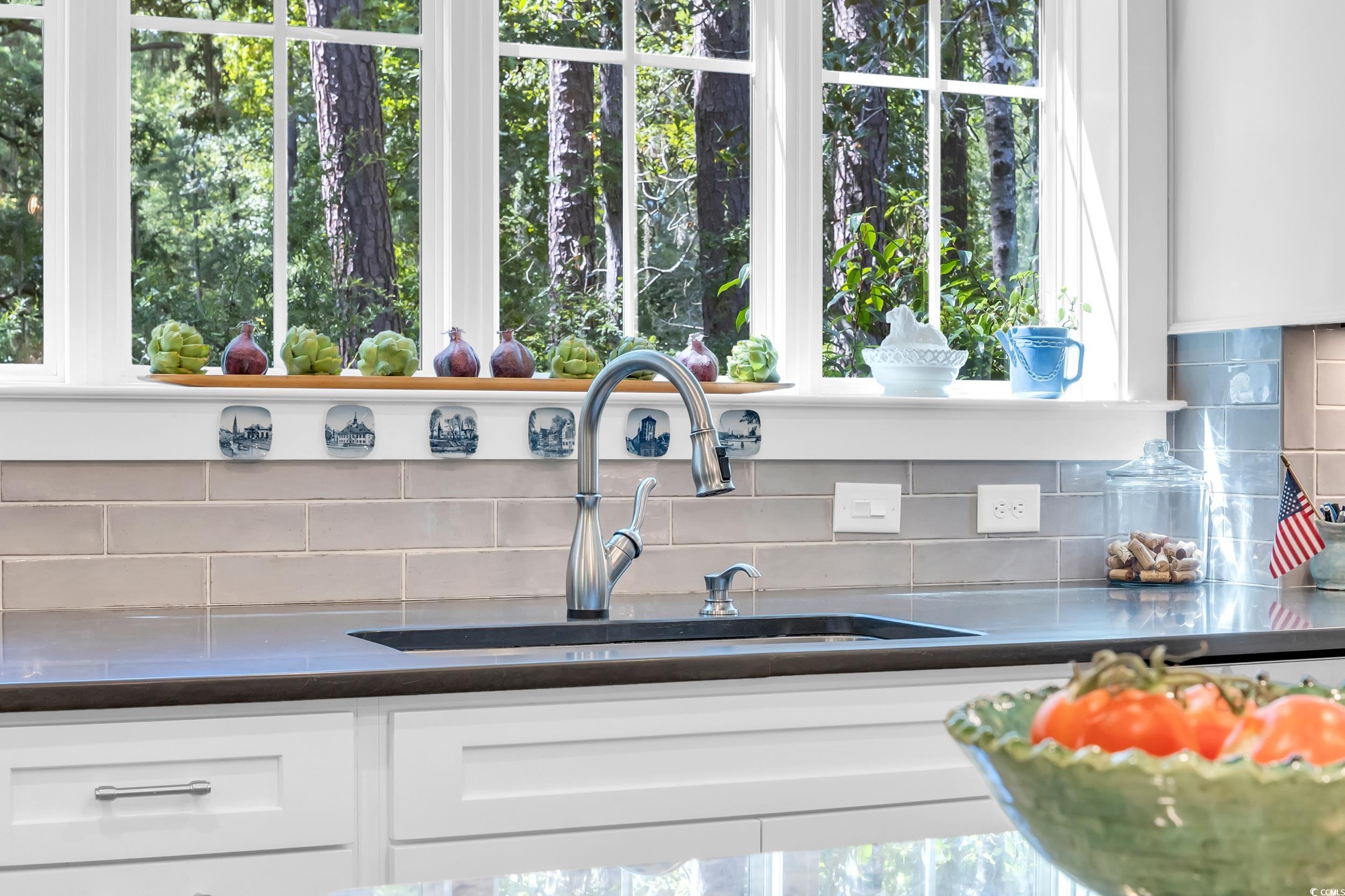 Welcome to 856 All Saints Loop, an exceptional modern farmhouse in Litchfield Plantation, one of the most historic and sought-after gated communities in the Pawleys Island area. Custom-designed and constructed by Fournier Custom Homes, this residence blends Lowcountry character with modern comfort, offering 5 bedrooms, 4 full baths, 2 half baths, and an abundance of thoughtfully planned living spaces on a beautifully landscaped .70-acre lot shaded by mature oaks and native plantings. From the moment you arrive, the home makes a quiet but commanding impression. A sweeping drive leads to two separate oversized garage bays that together create a true 4-car garage setup. One bay is an oversized two-car garage ideal for vehicles, golf carts, or storage, while the second bay is equally spacious and currently outfitted as a workshop with its own half bath — a rare feature that sets this home apart in today’s market. Inside, the home is defined by mottled hardwood flooring, substantial crown and baseboard trim, and natural light throughout. The great room centers on a brick fireplace with reclaimed wood mantel, flanked by tall windows and French doors that frame the outdoors. The kitchen was designed for gatherings with an expansive center island, granite and quartz countertops, farm sink, wine refrigerator, double wall ovens, and a walk-in larder. Adjoining the kitchen, the family dining area flows naturally onto the screened porch. Outdoor living is where this home truly shines. A large screened porch with stained tongue-and-groove ceiling and a striking brick fireplace anchors the rear of the home. From there, a covered patio extending from the great room and a circular brick dining terrace create multiple outdoor “rooms,” perfect for entertaining or enjoying quiet evenings under the canopy of trees. These spaces rival any in the area and make this home ideal for those who value indoor-outdoor living year-round. The primary suite offers a private retreat with spa-like bath featuring dual vanities, soaking tub, glass shower, and custom walk-in closet. Upstairs are three additional bedrooms, including a private suite with bath and a shared bath for the other bedrooms. A separate guest suite with living room, coffee bar, bedroom, and full bath is accessed by its own back stairway — complete with reclaimed wood paneling from a historic church, adding unique character and warmth. Practical features include a whole-house generator, two HVAC systems plus mini-split for the garage, and two Rinnai tankless water heaters. Storage is abundant, including a creative under-stair wine closet just off the foyer. Residents of Litchfield Plantation enjoy a lifestyle steeped in history with modern amenities. The gated entry winds through an iconic oak-lined avenue leading to the community’s Plantation House, currently under restoration for resident use. Amenities include one of the area’s prettiest pools and cabanas overlooking the ricefields, and exclusive access to a private oceanfront beach house on Pawleys Island — giving you peace of mind that you’ll always have a place, and a parking spot, at the beach. This is more than a home — it’s a rare opportunity to own a property that combines craftsmanship, modern convenience, and the very best of the Lowcountry lifestyle in one of the most desirable communities on the South Carolina coast.