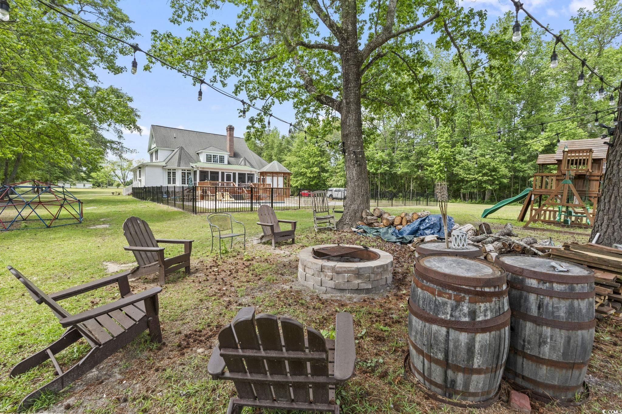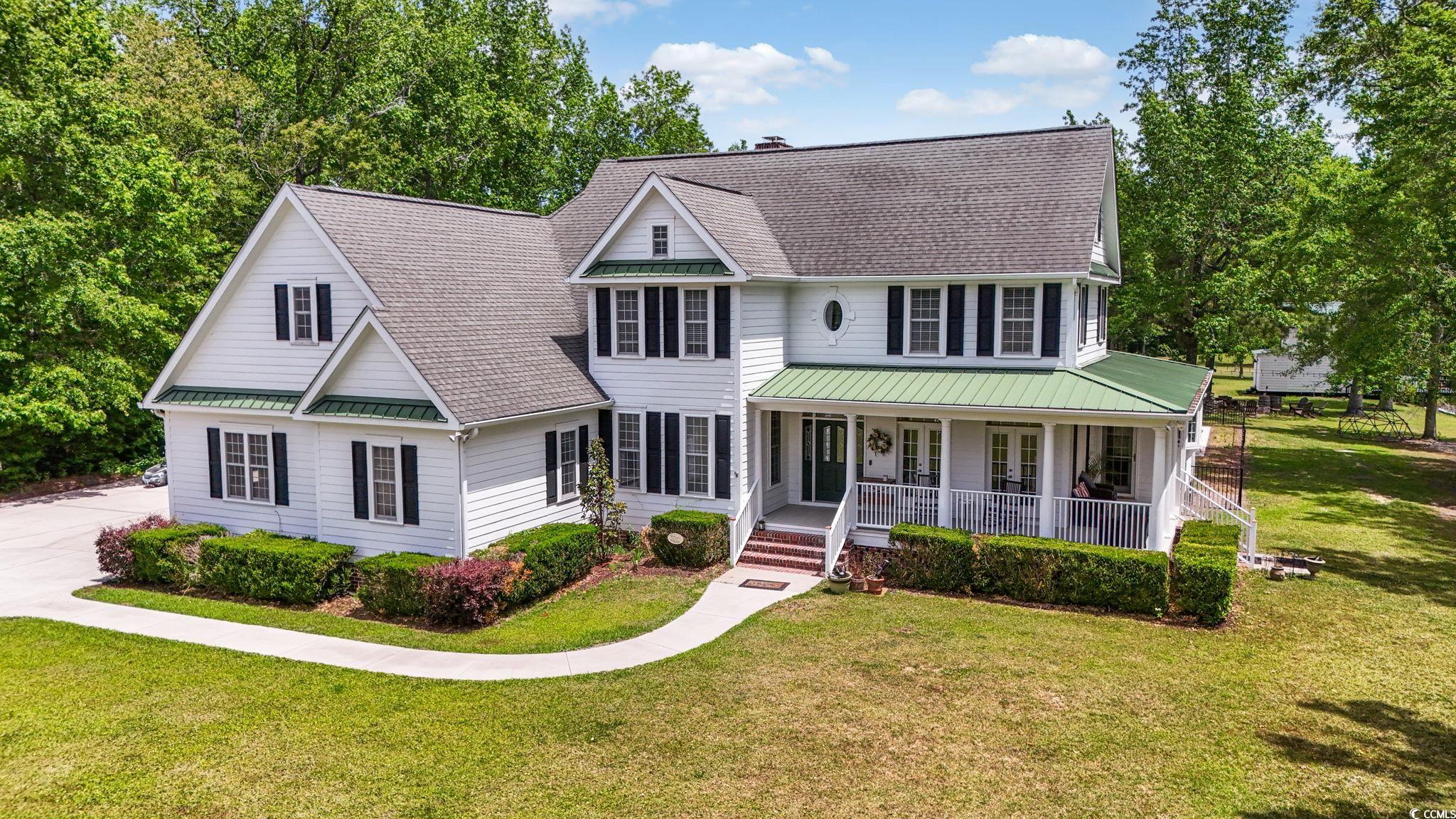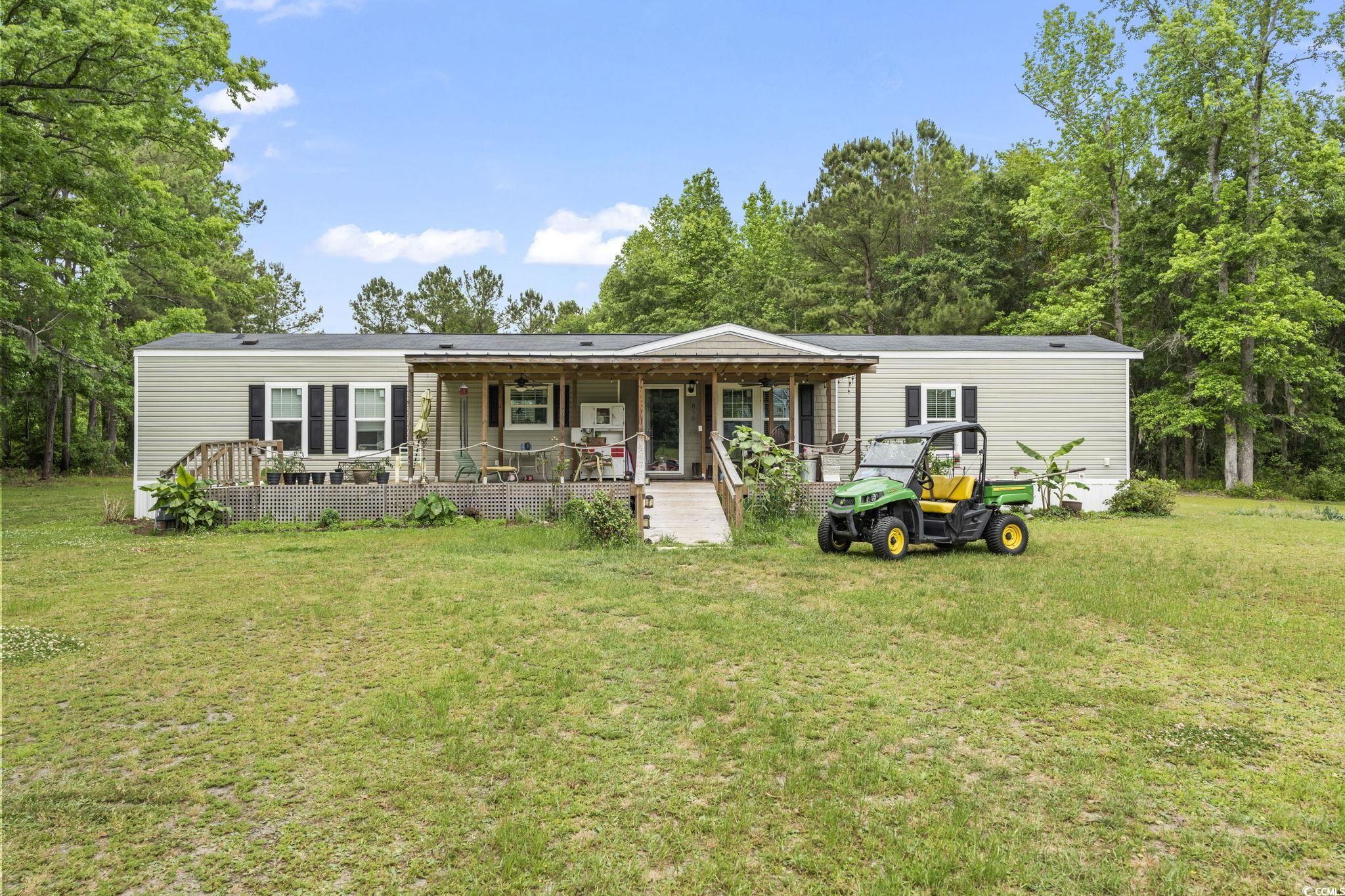 Welcome to an extraordinary opportunity in Longs—an expansive 70.34-acre estate featuring three distinct livable properties that cater to a variety of buyers! There is no other property like this!!! This is a must see in person because there wasn't enough room to post all of the pics of each property! The centerpiece is the stunning low country main house, designed for both comfort and elegance. With 5 bedrooms and 3.5 baths, this home boasts a wrap-around porch that offers breathtaking views of the long driveway and surrounding land, making it the perfect spot to enjoy sunrises and sunsets. The property features a large back deck, an in-ground heated saltwater pool, and an infinity hot tub for ultimate relaxation. Inside, you'll find tall ceilings, an open-concept layout, a formal dining room, a cozy library/den, and a spacious pantry. The bonus room on the third floor and private bar area add to the charm, while the propane fireplaces in both the living room and primary suite create a warm ambiance. The primary suite is a true retreat with a luxurious bathroom, featuring dual vanities, a tiled walk-in shower, a soaker tub, an expansive walk-in closet, and direct access to the screened-in back porch. The property also includes a charming tiny house situated by the pond, remodeled in 2021. This delightful 1-bedroom, 1.5-bath retreat offers modern amenities, including a mini-split system and on-demand water heater. Enjoy peaceful moments on the back dock, overlooking a fully stocked pond that has hosted countless family fishing and paddle boating adventures. Additionally, a three bed/2 bath manufactured home built in 2022 offers modern upgrades throughout, complete with a front covered porch and deck with a ramp added in 2023 for enhanced accessibility. The estate is equipped with two outbuildings at the front, perfect for workshop or storage use, and a greenhouse featuring propane, water, and electric—ideal for gardening enthusiasts. A cozy fire pit area adorned with twinkling lights provides a magical setting for gatherings under the stars. This unique property presents numerous opportunities for families, developers, investors, or anyone seeking a private retreat with endless potential. Don’t miss your chance to own this rare gem in Longs!