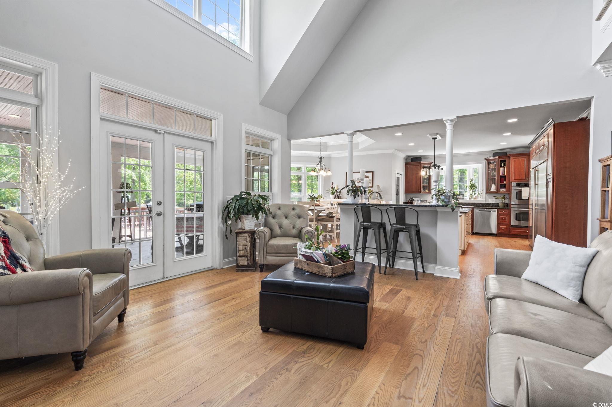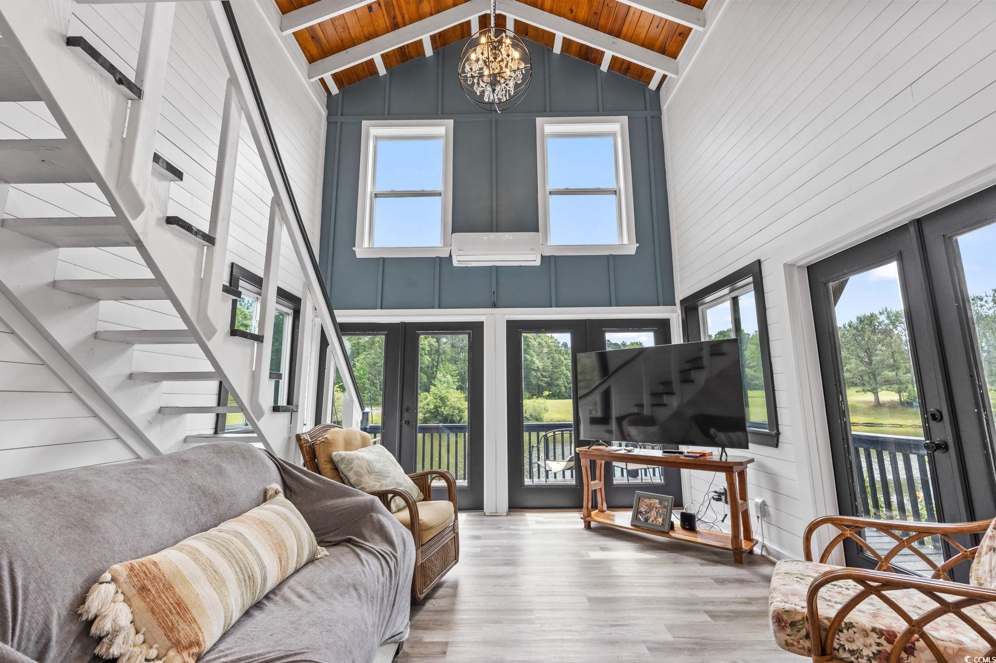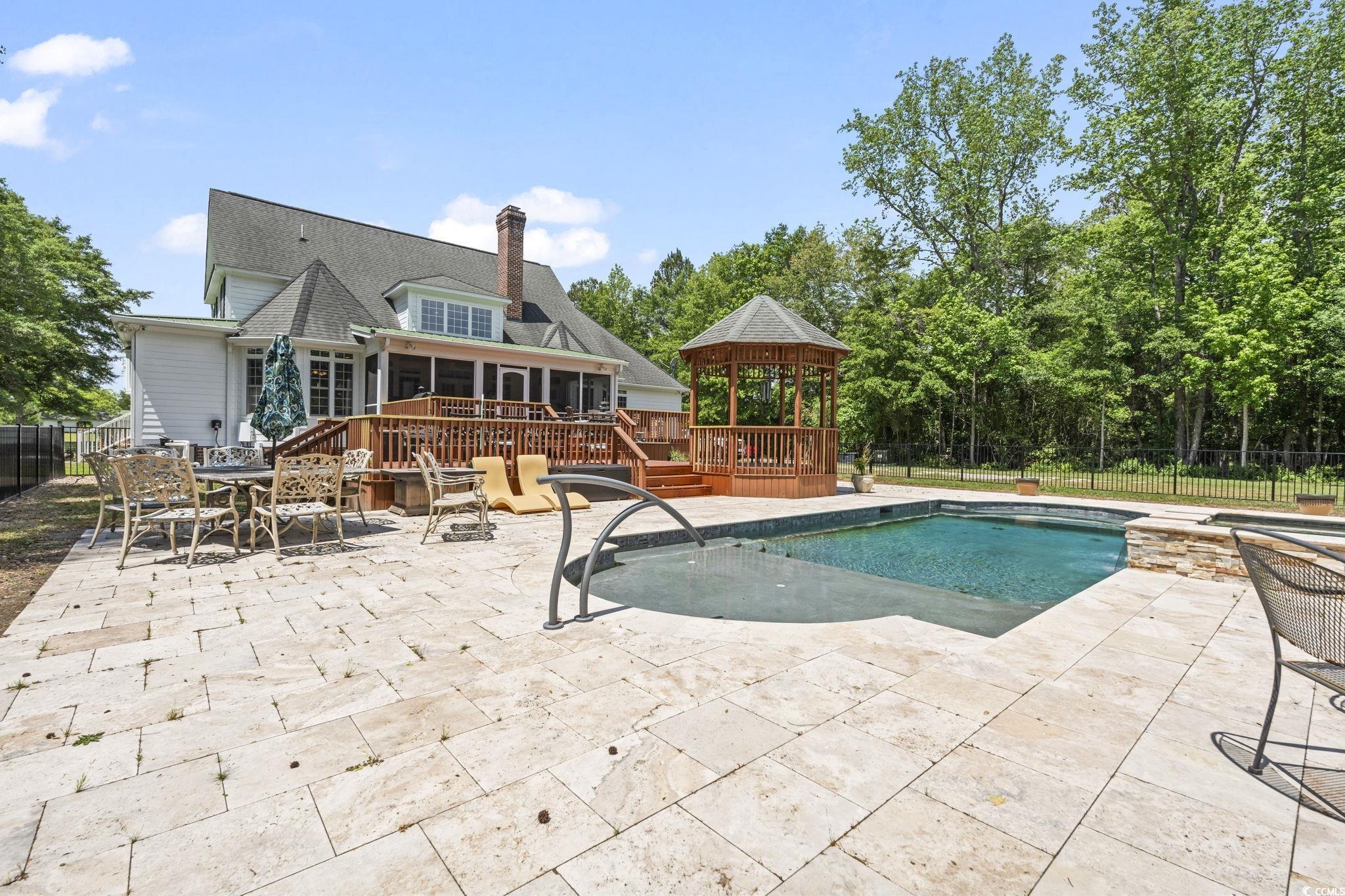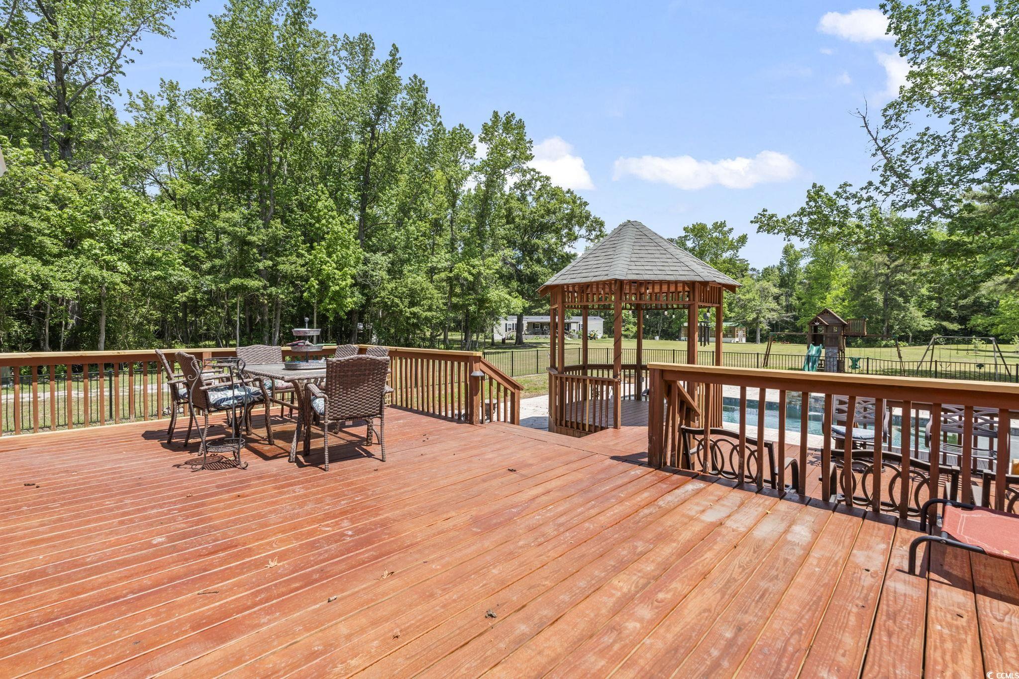 Welcome to an extraordinary opportunity in Longs—an expansive 70.34-acre estate featuring three distinct livable properties that cater to a variety of buyers! There is no other property like this!!! This is a must see in person because there wasn't enough room to post all of the pics of each property! The centerpiece is the stunning low country main house, designed for both comfort and elegance. With 5 bedrooms and 3.5 baths, this home boasts a wrap-around porch that offers breathtaking views of the long driveway and surrounding land, making it the perfect spot to enjoy sunrises and sunsets. The property features a large back deck, an in-ground heated saltwater pool, and an infinity hot tub for ultimate relaxation. Inside, you'll find tall ceilings, an open-concept layout, a formal dining room, a cozy library/den, and a spacious pantry. The bonus room on the third floor and private bar area add to the charm, while the propane fireplaces in both the living room and primary suite create a warm ambiance. The primary suite is a true retreat with a luxurious bathroom, featuring dual vanities, a tiled walk-in shower, a soaker tub, an expansive walk-in closet, and direct access to the screened-in back porch. The property also includes a charming tiny house situated by the pond, remodeled in 2021. This delightful 1-bedroom, 1.5-bath retreat offers modern amenities, including a mini-split system and on-demand water heater. Enjoy peaceful moments on the back dock, overlooking a fully stocked pond that has hosted countless family fishing and paddle boating adventures. Additionally, a three bed/2 bath manufactured home built in 2022 offers modern upgrades throughout, complete with a front covered porch and deck with a ramp added in 2023 for enhanced accessibility. The estate is equipped with two outbuildings at the front, perfect for workshop or storage use, and a greenhouse featuring propane, water, and electric—ideal for gardening enthusiasts. A cozy fire pit area adorned with twinkling lights provides a magical setting for gatherings under the stars. This unique property presents numerous opportunities for families, developers, investors, or anyone seeking a private retreat with endless potential. Don’t miss your chance to own this rare gem in Longs!