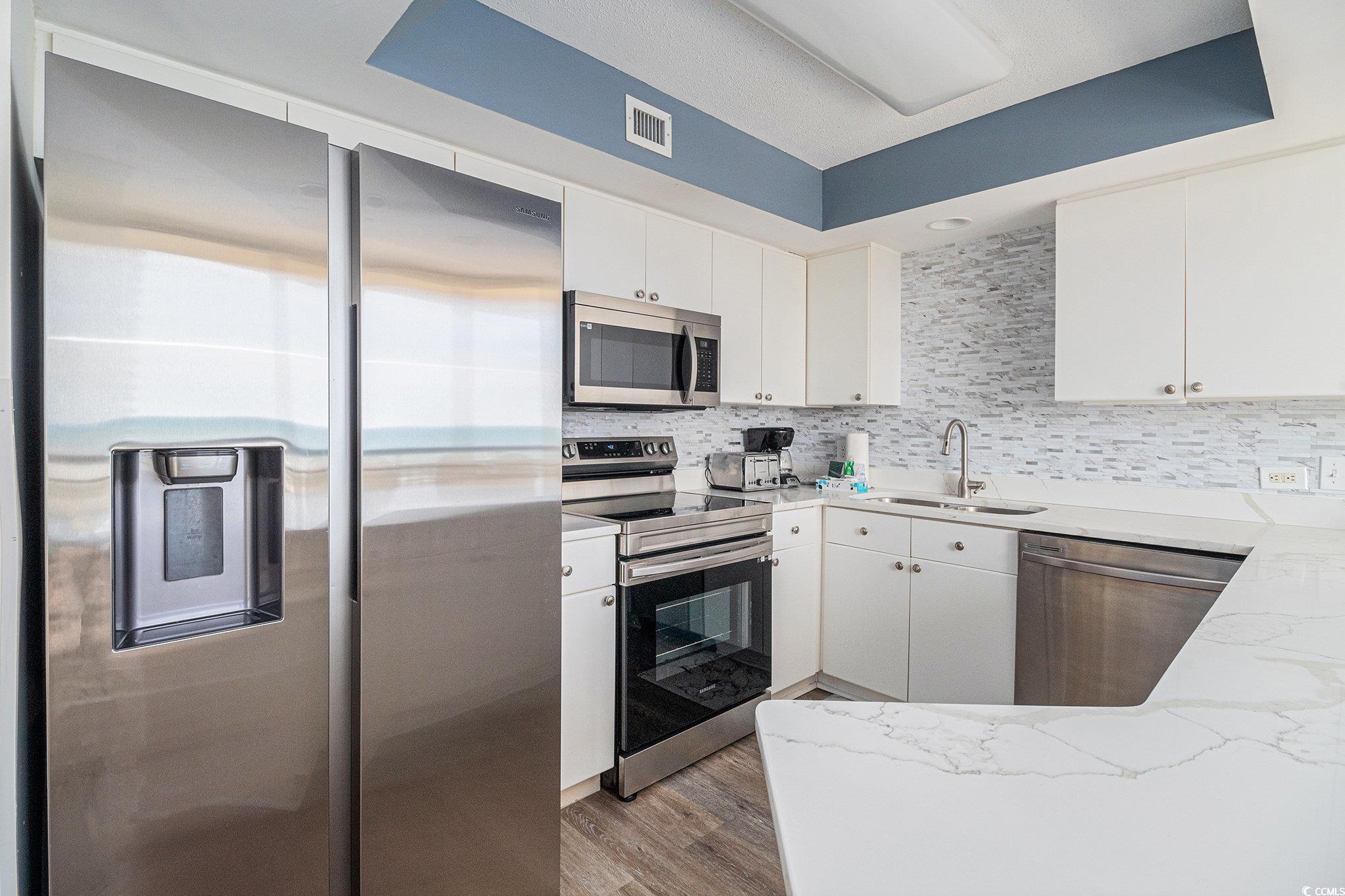 Enjoy coastal living at its finest in this fully furnished 2-bedroom, 2-bath condo located on the desirable south side of Brighton Towers. Enjoy stunning views of the Atlantic, unforgettable sunsets, and the iconic Apache Pier from your private balcony. The open-concept living, dining, and kitchen area is filled with natural light and features LVP wood-look flooring throughout. The updated kitchen includes quartz countertops, a breakfast bar, and ocean views. The spacious master suite offers serene ocean views, a luxurious bath with a jacuzzi tub, and a separate shower. A second bedroom with two queen beds, a large bathroom, and in-unit laundry adds convenience. Perfect as a primary residence, vacation getaway, or investment property. Brighton Towers is located in Kingston Plantation, a 145-acre, gated community that sits along a half mile of coastline with its own private beach access. There is something for everyone at Kingston Plantation, including 3 restaurants that are on-site including the new Black Drum oceanfront Brewhouse. Brighton Towers offers an array of amenities, including pools, hot tubs, fitness centers, 24-hour security, and direct beach access, all just minutes from Myrtle Beach's top attractions, dining, and entertainment.