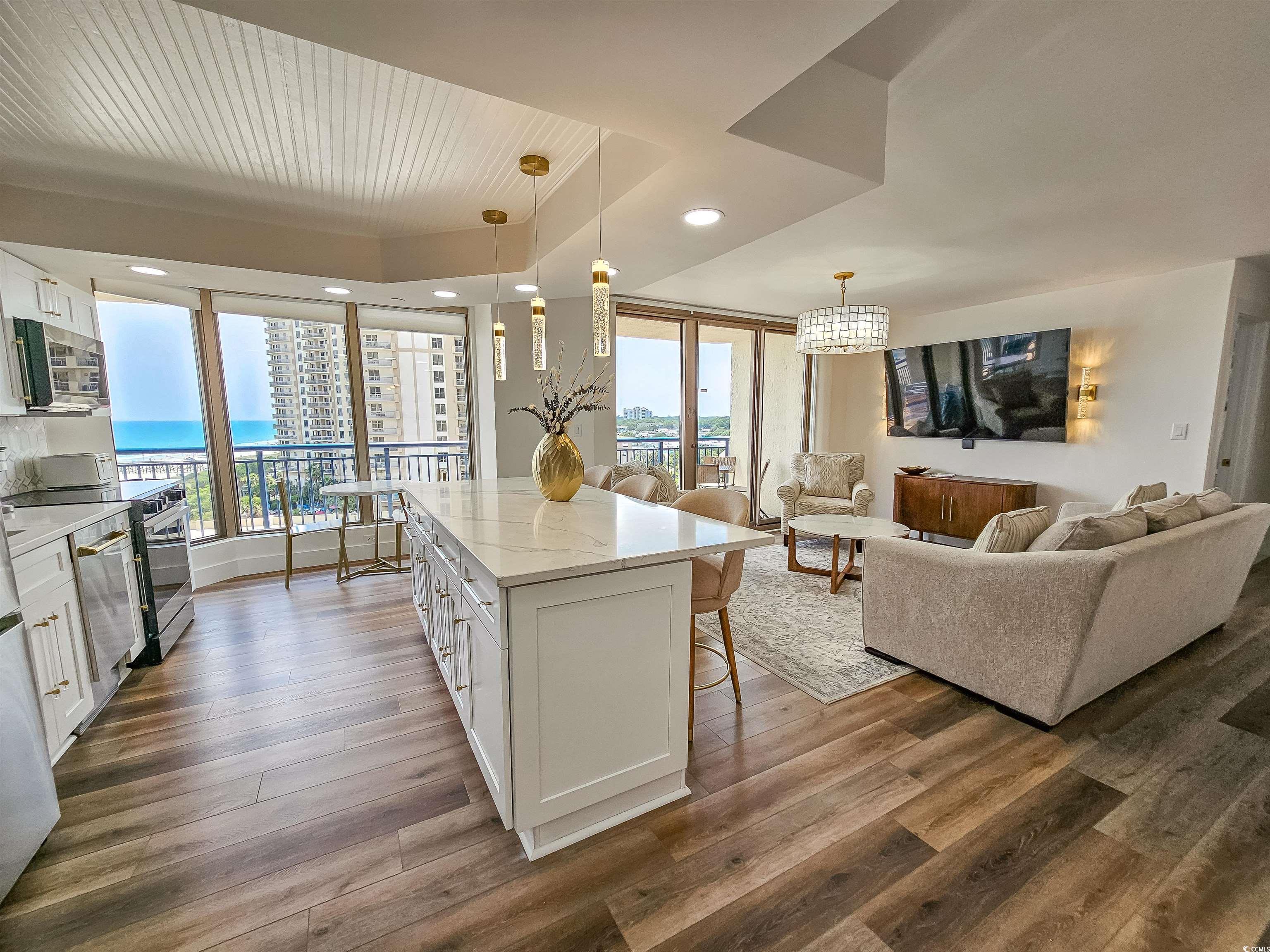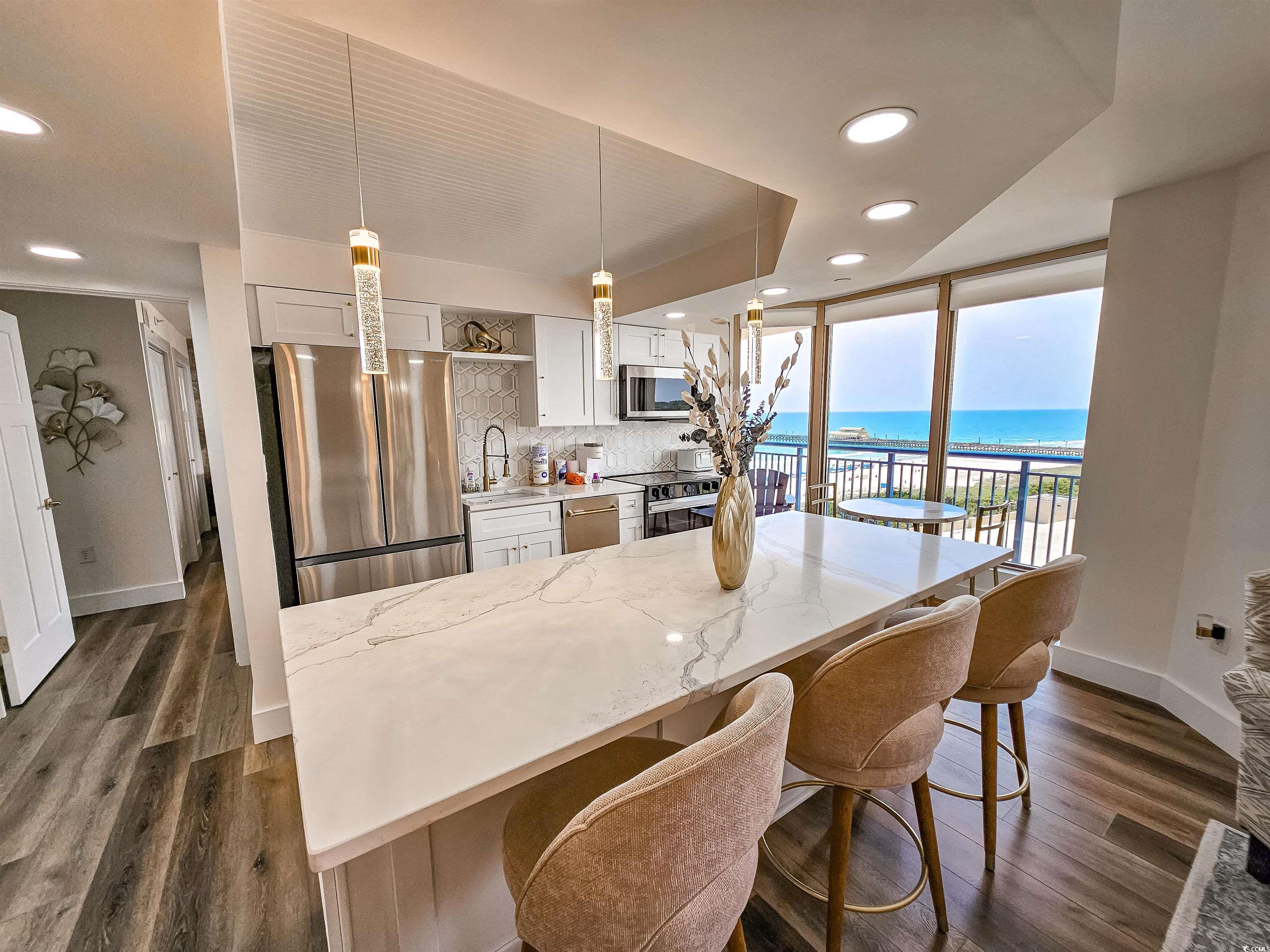 ***BE SURE TO WATCH THE VIRTUAL WALK-THRU VIDEO INCLUDED WITH THIS LISTING*** This home was stunningly and exquisitely renovated and decorated. Everything has been done -- kitchen, bathrooms, flooring, smooth ceilings, doors, hardware, lighting and so much, much more. Nothing has been missed. Marvel at the magnificent view of the ocean from both the interior and expansive deck. The many windows allow the natural light to stream into the home. You'll love that!!! Tastefully decorated and being sold move-in ready. Kingston Plantation is a 145-acre, master planned community in the heart of Myrtle Beach. Kingston offers a combination of amenities and preserved natural environment that's unparalleled. One-half mile of white sand beach, 12 acres of freshwater lakes and mature trees, all surrounded by beautifully manicured grounds. The Plantation offers amenities such as a magnificent Spa and Fitness Center, four clay and hard surface tennis courts, four pickleball courts, multiple pools, badminton, croquet, beach volleyball and much more! Kingston offers a selection of one, two, three and four bedroom villas, townhomes, lakefront lodges and oceanfront high-rises through the community.