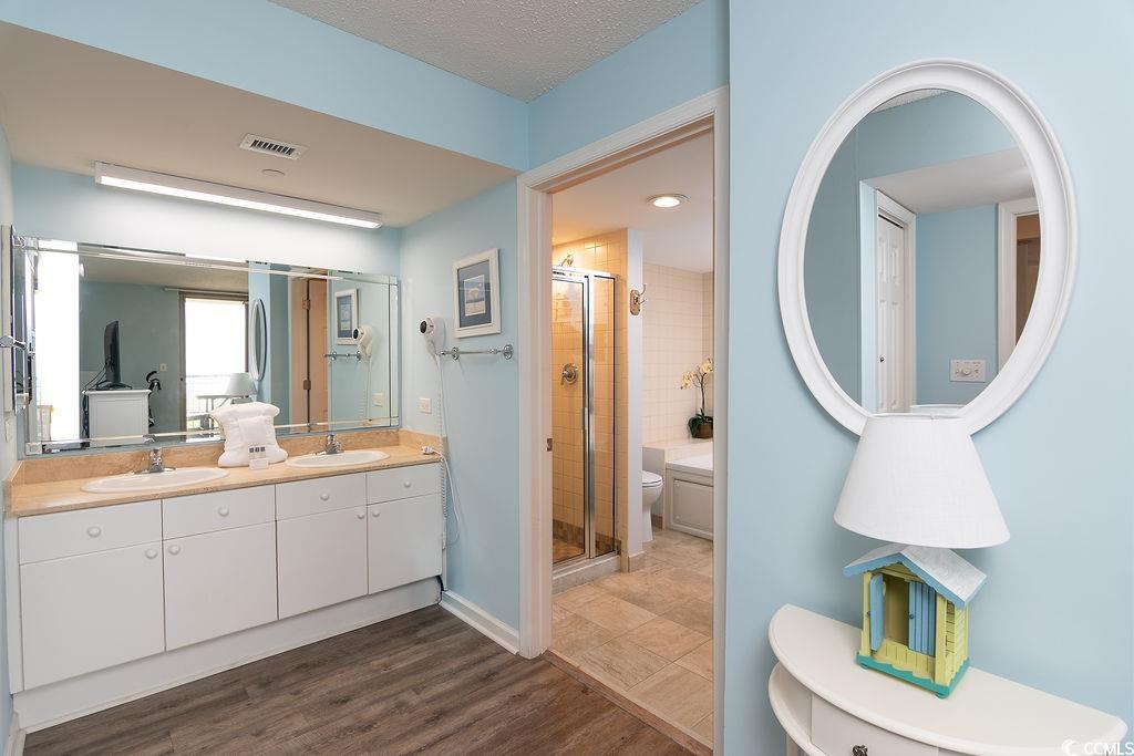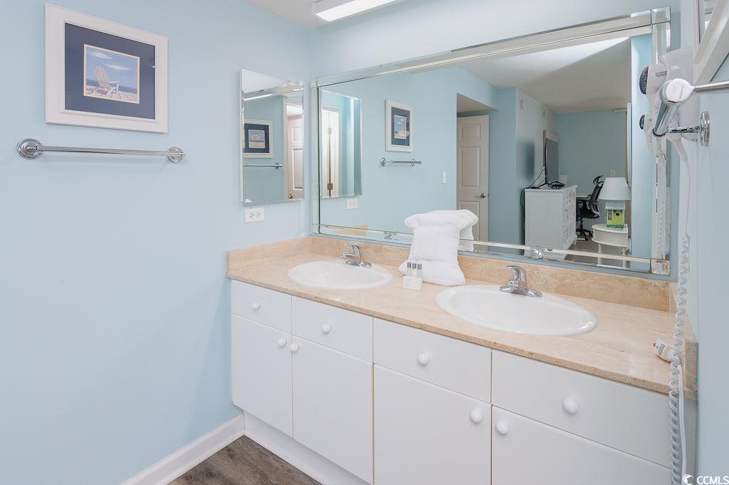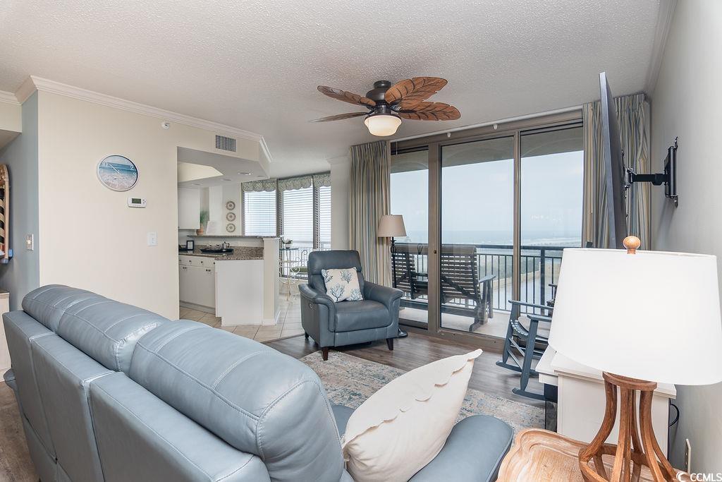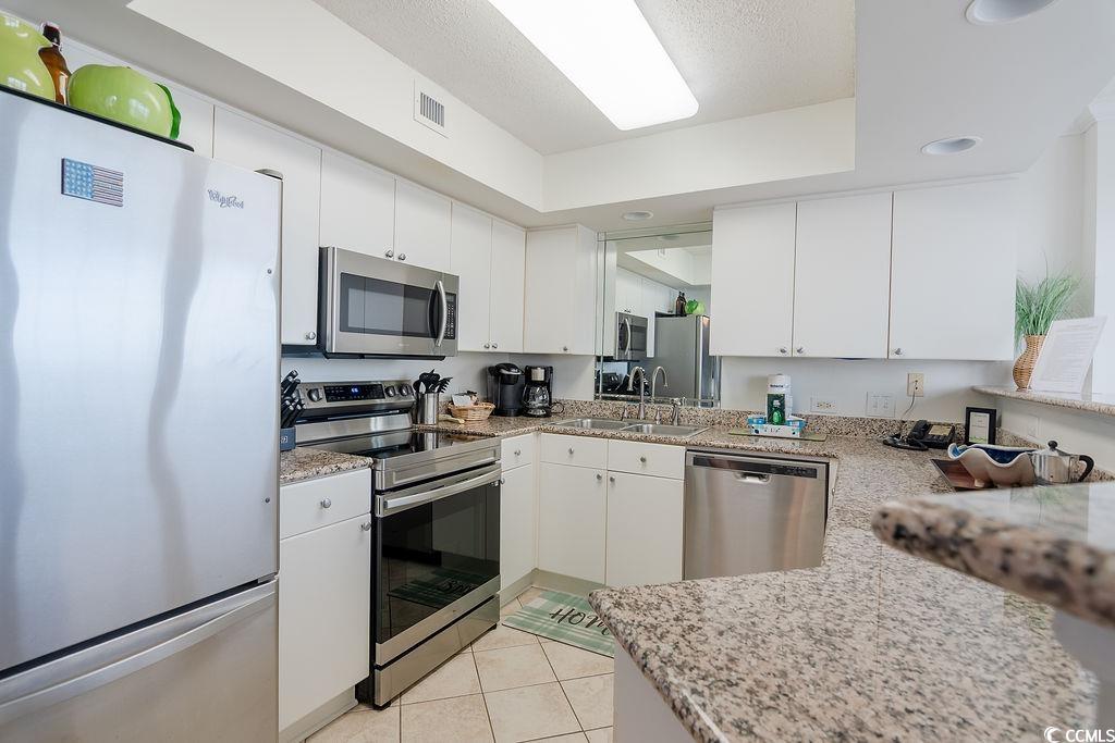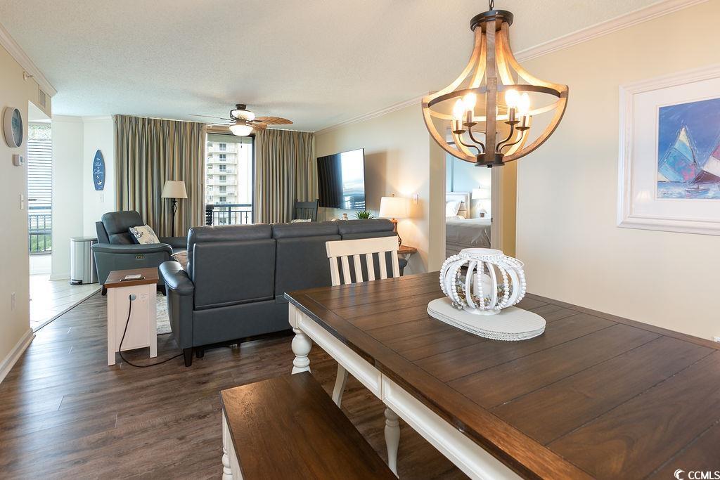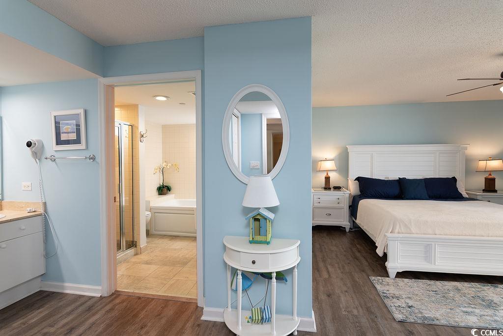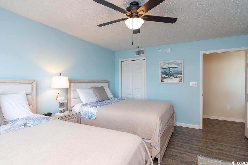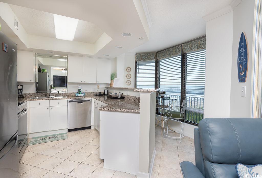 Your beachfront dream awaits at this stunning 2-bedroom condo, offering breathtaking ocean views and direct access to the sand and surf. Imagine waking up to the sound of waves and enjoying morning coffee on your private balcony overlooking the Atlantic. This home has LVP and tile flooring, a gourmet kitchen with a large window overlooking the ocean, stainless steel appliances, solid surface countertops, and a bar area that seats three while you watch the chef! This living/dining room combo and a split bedroom floor plan are great for entertaining. The large primary suite steps out onto the balcony, along with a primary bath with a double sink vanity, whirlpool tub, and a walk-in shower. Large outdoor pool and jacuzzi, three-story parking deck connected to the tower. Located inside the prestigious Kingston Resort, this 145-acre master planned community has amenities galore- an optional Spa and fitness center, tennis courts, pickleball, indoor pool, restaurants, and over half 1/2 mile of sandy beaches! Some resort amenities are only available through the Hilton on-site rental program.