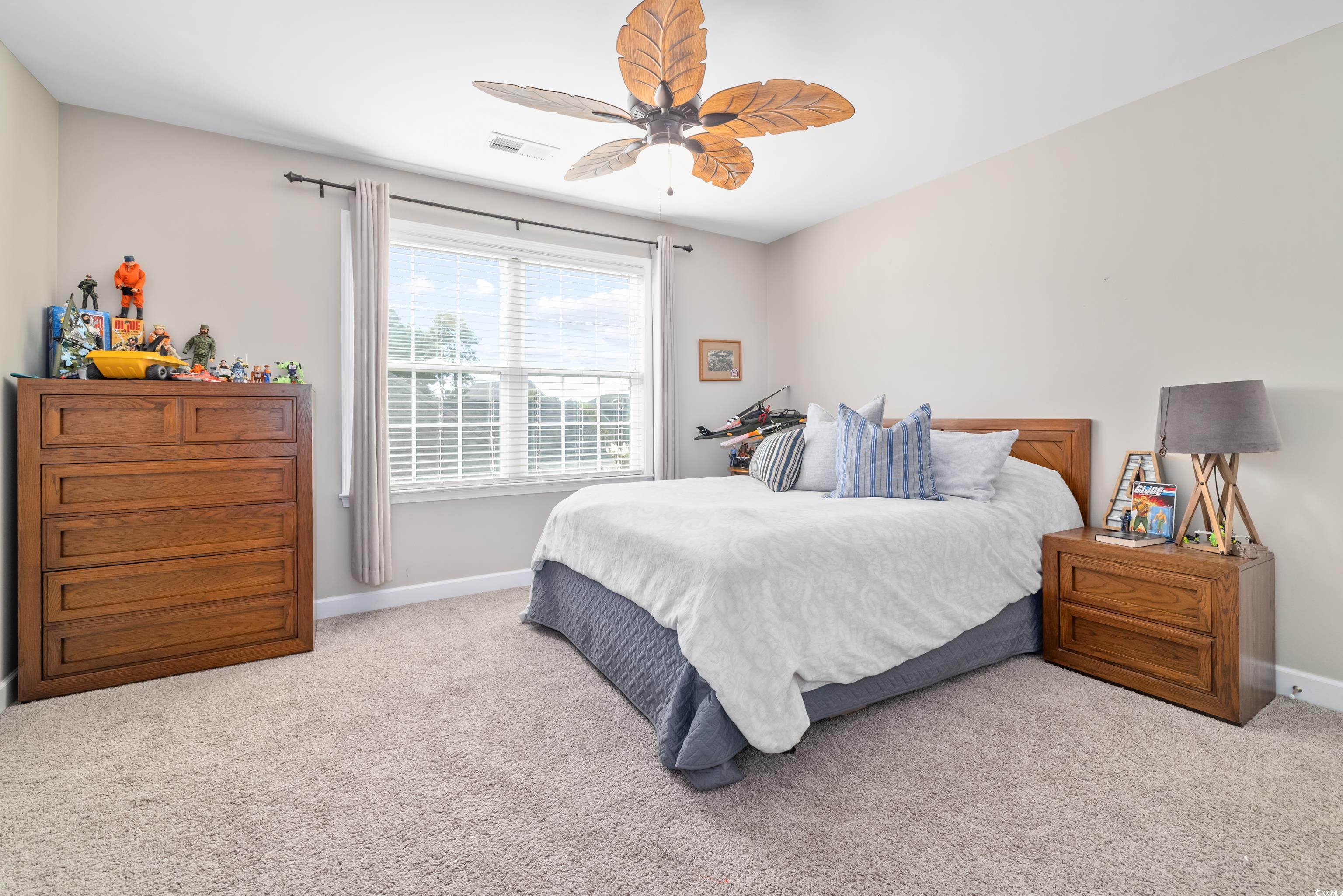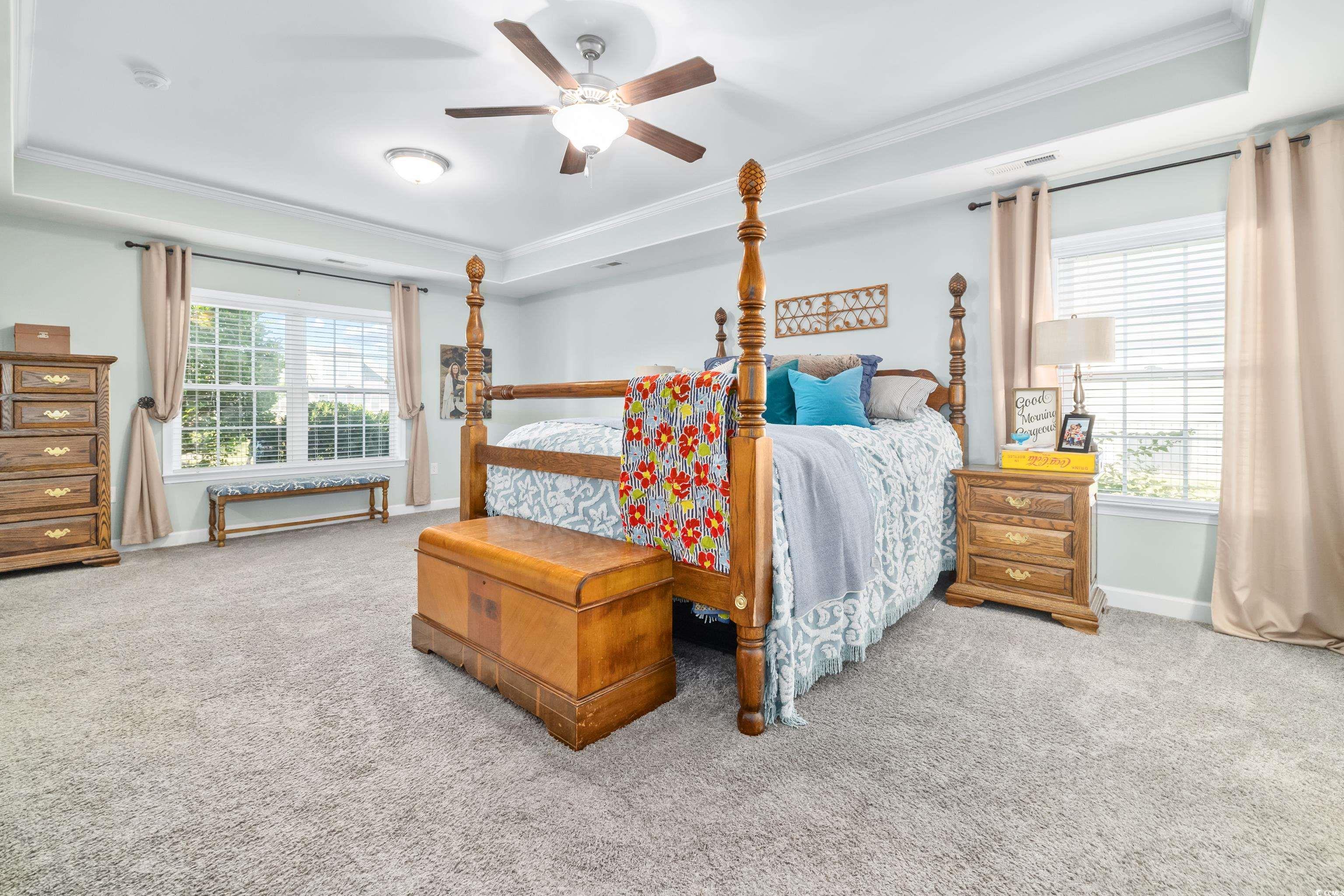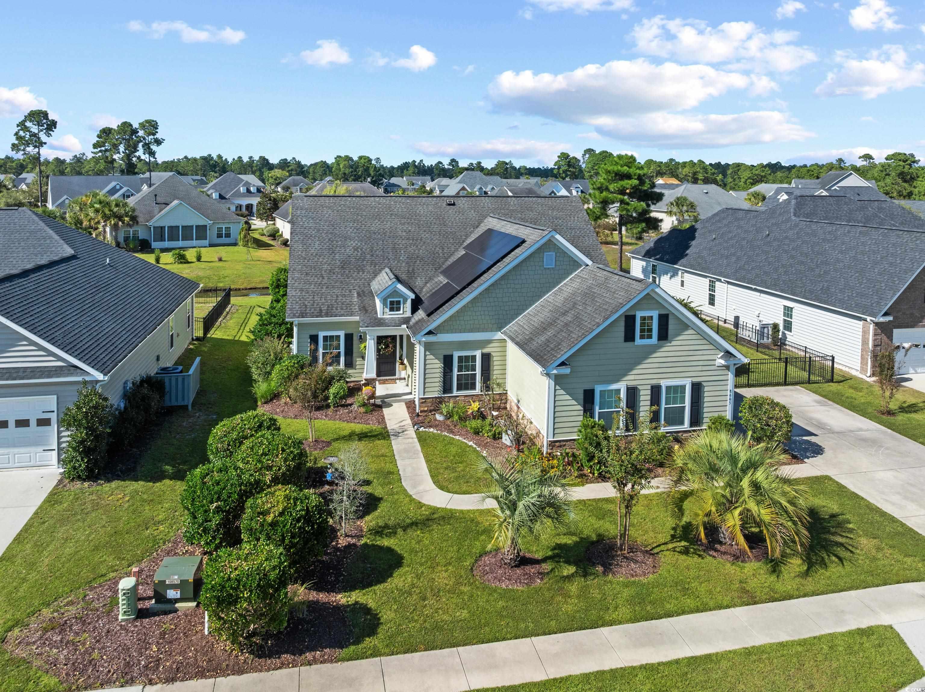 Offering both generous space and thoughtful design, this beautiful home combines upscale features with a warm, livable feel in the well established Waterford Plantation community. The fenced backyard features a patio perfect for relaxing or entertaining. Inside, the open layout includes a dining area, spacious great room, an eat in kitchen with breakfast bar, and a bright Carolina Room. The first floor has the primary suite plus two additional bedrooms. The private owner's retreat includes a sitting area, generous closets, and an ensuite with two vanities, a shower, and a garden tub. Upstairs, a large bonus room, fourth bedroom, and bathroom provide flexible space for a media room, living room, or multigenerational living. The kitchen showcases granite countertops, stainless steel appliances, tile backsplash, a freestanding work island, and a breakfast bar as well as views overlooking the lake and fountain. Additional highlights include owned solar panels (no lease or loan), a Generac power inlet box (generator not included), and a side-entry two car garage. All appliances are electric, and sellers are happy to share details of their very low monthly electric costs thanks to the owned solar panels. Neighborhood amenities include a Junior Olympic pool, cabana, fitness center, playground, basketball court, pickleball and tennis courts, and a recently added Bocce ball court. Sidewalks and a community nature trail make it easy to enjoy the outdoors. Nature, recreation, and everyday conveniences are all close at hand, offering the perfect balance of suburban comfort and coastal accessibility. This particular home truly offers location, lifestyle, and living space, so schedule your private tour today!