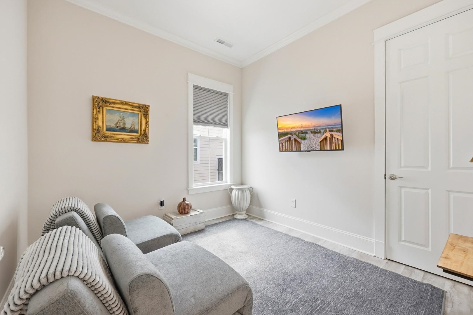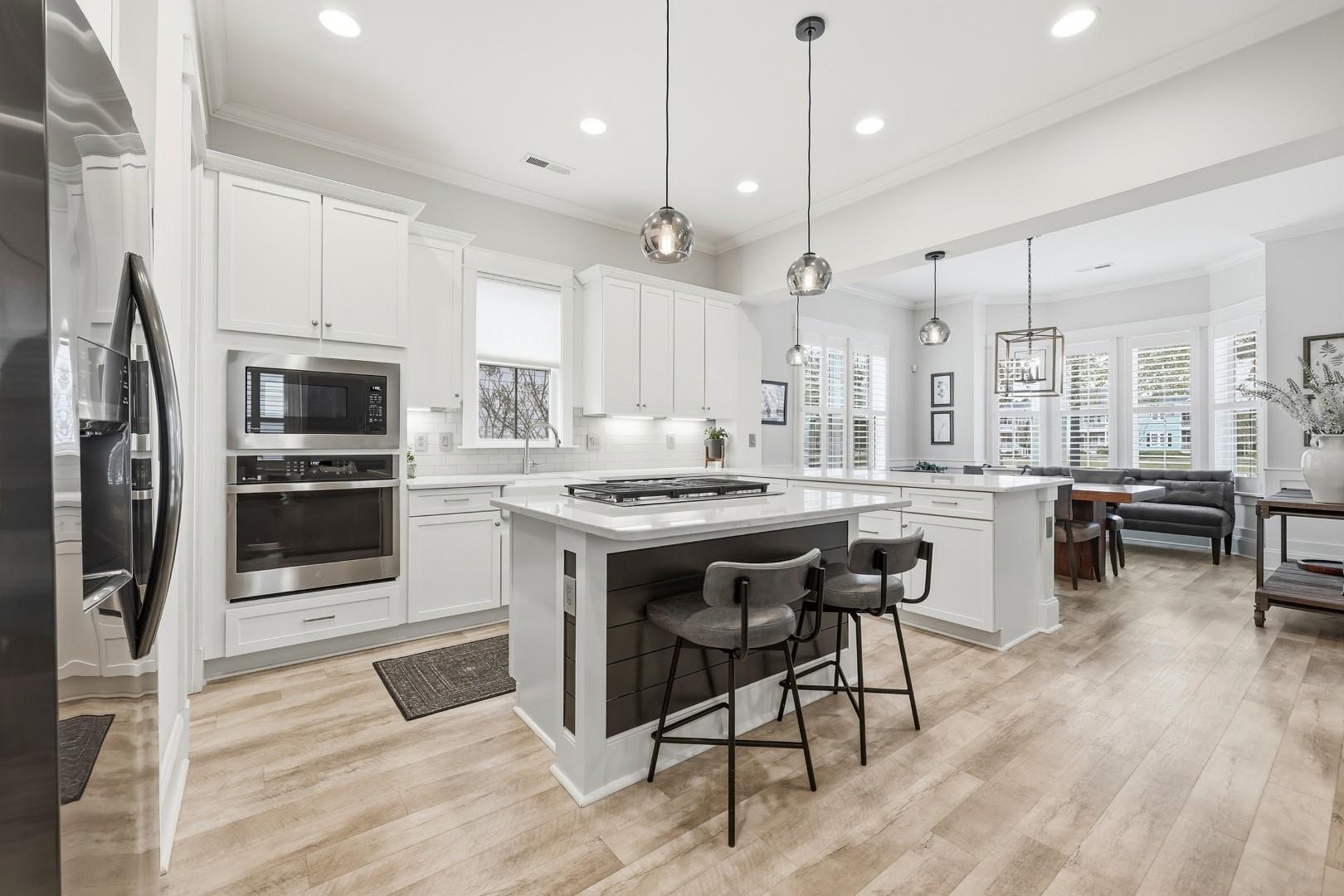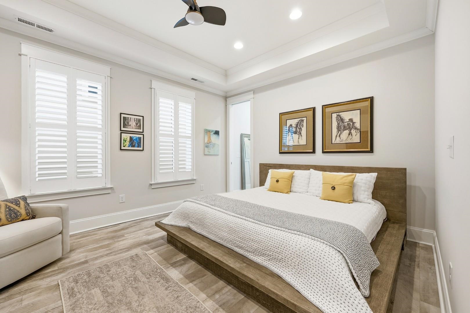 Welcome to 866 Farrow Pkwy, a true Charleston-style showpiece in the heart of the prestigious Wentworth Row community in Market Common. With its double porches, timeless architecture, and undeniable curb appeal, this five-bedroom, three-and-a-half-bath home blends classic Southern charm with forward-thinking luxury in a way that feels both elevated and effortless. From the moment you step inside, you can feel that this home was thoughtfully upgraded well beyond the standard. The living room, redesigned in 2022, centers around a beautiful fireplace with a custom solid old-growth mahogany mantel -- a statement piece that brings warmth and character to the space. Natural light pours in, enhanced by luxury plantation shutters downstairs and blackout designer blinds upstairs with reverse up-and-down functionality, giving you both privacy and flexibility throughout the day. The kitchen and living areas flow seamlessly, creating the kind of layout that works just as well for quiet evenings at home as it does for hosting friends after a day at the beach. Custom upgraded stairs add architectural interest, while every detail feels intentional and refined. Upstairs, the primary suite offers a private retreat. The built-in custom closet, complete with its own fan, adds both organization and comfort. The spa-inspired primary bath was elevated with a custom soaking tub and a glass-enclosed walk-in shower featuring block tile, creating a space that feels more like a boutique hotel than a typical home. Every bathroom throughout the house has been enhanced with lighted mirrors and the downstairs mirrors are enabled with wifi, adding a modern, high-end touch. This home isn't just beautiful -- it's smart and energy efficient. Enphase solar panels installed in 2021, paired with a Tesla 13KW battery with 99% drawdown, provide impressive energy independence and long-term savings. A UV light air purifier by Swift Electric enhances indoor air quality, and two new washers and dryers installed in 2021 make everyday living that much easier. With five bedrooms, there's flexibility for guests, a home office, fitness space, or multi-generational living -- all wrapped in the charm of one of Market Common's most desirable neighborhoods. Wentworth Row offers the best of coastal luxury living, just moments from boutique shopping, dining, parks, walking trails, and the beach. This is more than a home -- it's a statement property that combines Charleston elegance, cutting-edge upgrades, and the lifestyle that makes Market Common so special!