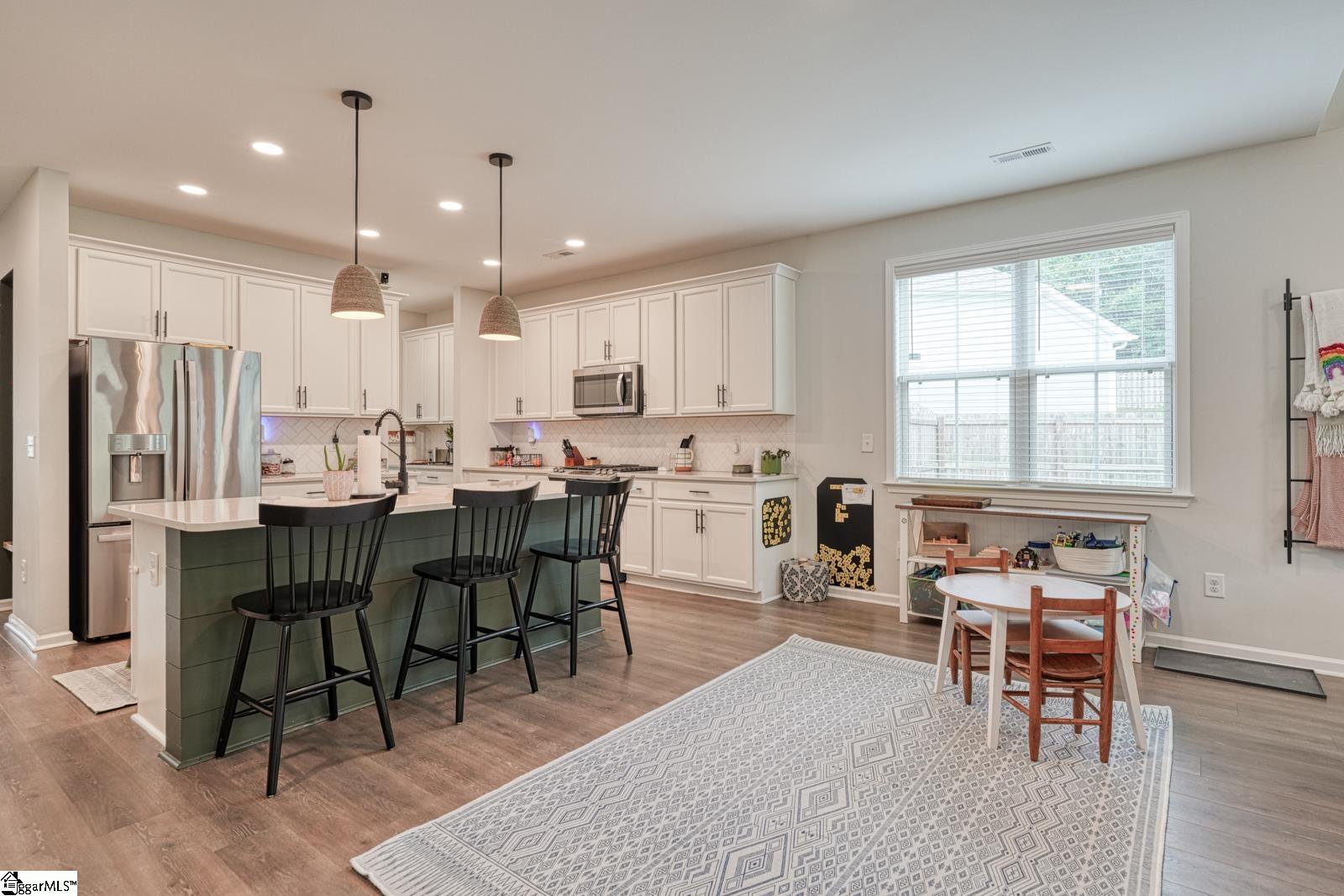 Welcome to Orchard Valley, a sought-after community known for its oversized homesites and quiet cul-de-sac living. This stunning 4BR/3.5BA, 3,040 sq ft Craftsman sits on a .57 acre fenced lot that backs to trees for privacy and play. Inside, the popular Lincoln floor plan offers a main-level owner’s suite with spa bath, plus an open concept design highlighted by a gourmet kitchen featuring quartz countertops, farmhouse sink, extended island with shiplap, double trash pullout, butler’s pantry, and upgraded cabinetry. Acozy gas fireplace anchors the great room, which flows naturally to your large screened-in porch overlooking the expansive backyard — perfect for entertaining or quiet evenings outdoors. Upstairs, three bedrooms each with direct bath access surround aspacious loft with a balcony — ideal for a media room, homework hub, or game lounge. Additional features include tankless water heater, luxury flooring in main areas, dual vanities in all full baths, walk-in closets, and a 2-car garage. Out back, enjoy one of the neighborhood’s largest fenced yards with room for a playset, garden, or pool - a rare find in District 2. Conveniently located near shopping, dining, schools, and major highways, this home blends style, space, and location. Don’t miss this move-in ready gem in Orchard Valley — schedule your showing today!