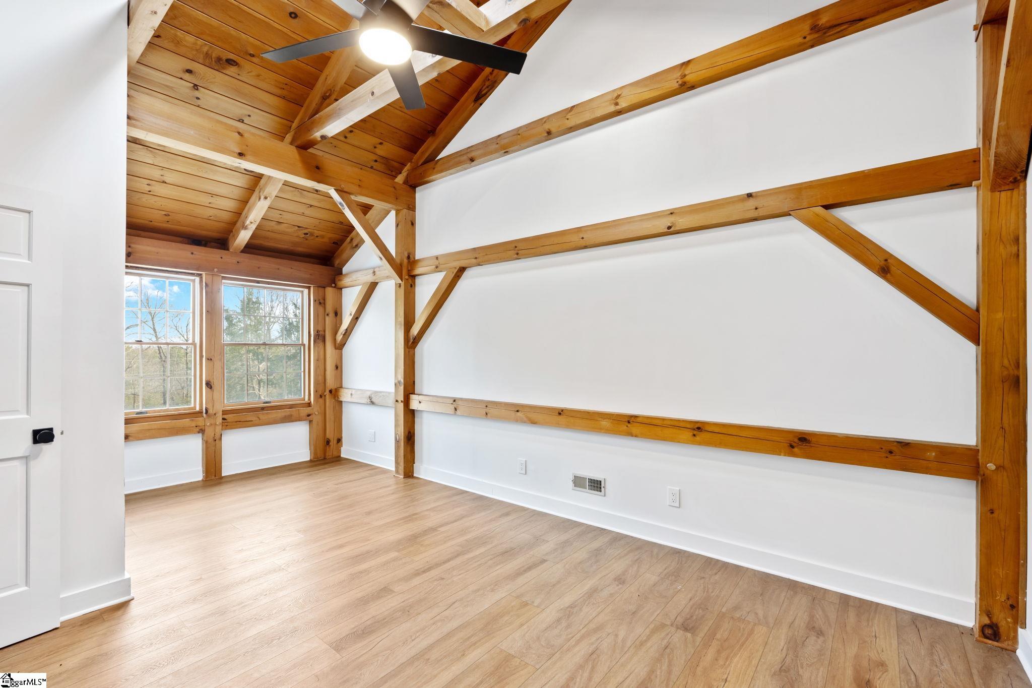 Welcome home to where Adirondack timber craftsmanship meets the quiet beauty of the Carolina countryside. Set on nearly 7 private acres in a peaceful estate setting and NO HOA, this remarkable home offers a rare combination of architectural character, open land, and resort-style outdoor living. Crafted with authentic Adirondack timber in true post-and-beam construction, the home showcases exposed beams, rich wood ceilings, and timeless craftsmanship rarely found in modern construction—creating a warm, inviting atmosphere that feels both refined and enduring. The home underwent extensive updates in 2022-2023, allowing the new owners truly time to enjoy all this estate has to offer. Inside, natural light and rich textures define the main living spaces. The living room is anchored by a fireplace framed by dramatic timber beams, creating the perfect gathering place for cozy evenings or relaxed entertaining. Thoughtful design and generous proportions allow the home to feel both intimate and open, with beautiful views of the surrounding acreage from many rooms. The 3000+ sq ft home offers four bedrooms and three full baths, including a main-level bedroom and full bath ideal for guests, multi-generational living, or a private office or in-law suite. Additional bedrooms and an office/flex space upstairs provides comfort and privacy while maintaining the home’s cohesive architectural character. The newly built three garage has epoxy flooring, a full bathroom that functions well as a pool bath, a workshop area with yard door, and has a full storage area above the garage that could be converted into an additional living space. Step outside to experience one of the home’s most special features—resort-style outdoor living overlooking the backyard and in-ground gunite pool. A spacious covered porch invites long summer evenings, morning coffee, and gatherings with friends while enjoying the peaceful natural setting. The nearly 7-acre property provides privacy and endless possibilities, with open land ideal for recreation, gardening, animals, or future expansion. Bring your horses, ATVs, and a full jug of sweet tea to watch the sun go down. Whether envisioning additional outdoor amenities such as a barn or simply enjoying the beauty of the land, the setting offers both space and flexibility rarely found in today’s market. Practical improvements add peace of mind, including a water filtration system and an encapsulated crawlspace designed to enhance efficiency and long-term home protection. Located just minutes from the new Kawonu Golf Club, soon to be one of Upstate South Carolina’s most scenic and exclusive courses, this property offers a rare opportunity to enjoy true timber-frame craftsmanship, acreage, and outdoor living in a peaceful countryside setting while remaining convenient to Greenville and surrounding amenities. Located within Greenville County and easy access to I-385 and I-85 for easy commutes to Downtown Greenville, Charlotte, Atlanta, Asheville, and Charleston. For all your every day needs, Fairview Road and Woodruff Road are within easy driving distance. A home like this is more than a place to live—it’s a place to build your family legacy; gather, slow down, and enjoy the land around you. Nearly 7 Acres | True Post & Beam Construction | Adirondack Timber | Gunite Pool | Main-Level Bedroom | Encapsulated Crawlspace | Minutes to Kawonu Golf Club * Home has been virtually staged in some rooms to help guide design ideas*