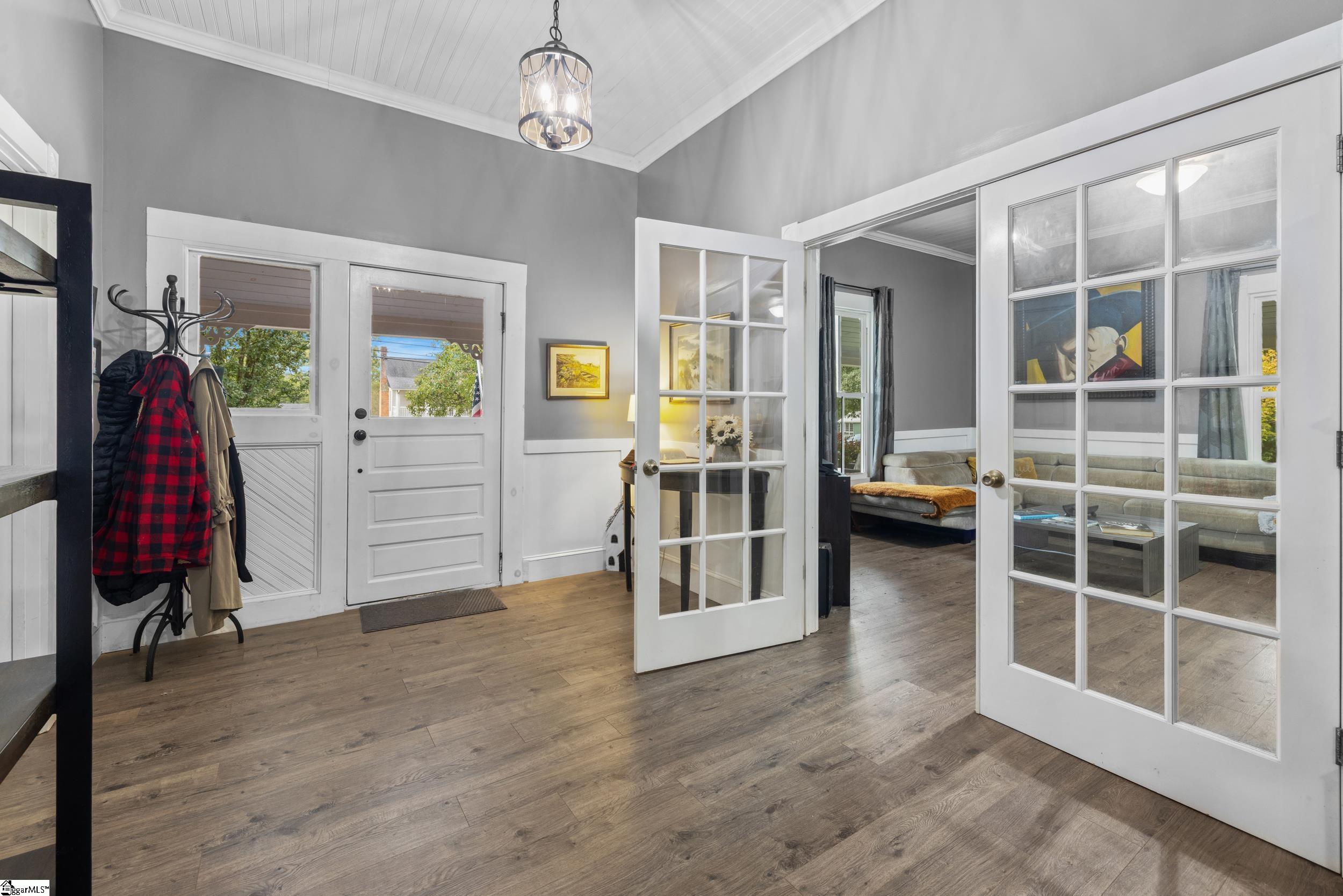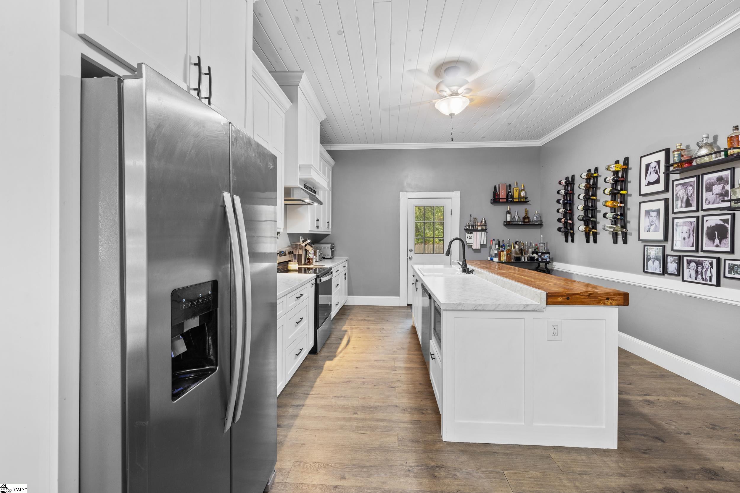Enjoy the best of both worlds in this beautifully restored 1908 Southern farmhouse, renovated from the ground up in 2020 to preserve its classic character while adding today’s modern comforts. One of the original homes in the area, this historic gem has been meticulously rebuilt to showcase early 20th-century craftsmanship alongside modern efficiency and style. Set on nearly a full acre in the heart of Townville, this home offers the tranquility of small-town living with easy access to I-85, and just a short drive to Anderson, Seneca, Clemson, and the scenic Cashiers, Lake Keowee, and Highlands areas. During the extensive renovation, Cox Builders added all-new electrical, HVAC, plumbing, cabinetry, lighting, windows, and appliances—while repurposing much of the home’s original wood into a striking staircase, accent walls, and a handcrafted bar that spans the length of the kitchen island. Outside, the home retains its timeless Southern charm with fresh exterior paint, decorative gable trim, and a welcoming wrap-around porch—perfect for morning coffee or sunset views. The level lot is shaded by mature hardwoods and enclosed with a privacy-fenced backyard ideal for pets or gatherings. Step inside to discover high ceilings, spacious rooms, and an open floor plan that blends period details with new finishes throughout. Luxury vinyl and tile flooring highlight the main level, while the upstairs offers carpeted comfort in the bonus room and third bedroom. The primary suite features two large closets with built-in organizers and a private bath, while a central foyer provides an elegant space for heirloom furniture or art displays. Less than two miles from a public lake Hartwell boat ramp, this property is a rare find—offering small-town charm, modern efficiency, and quick access to recreation and amenities.