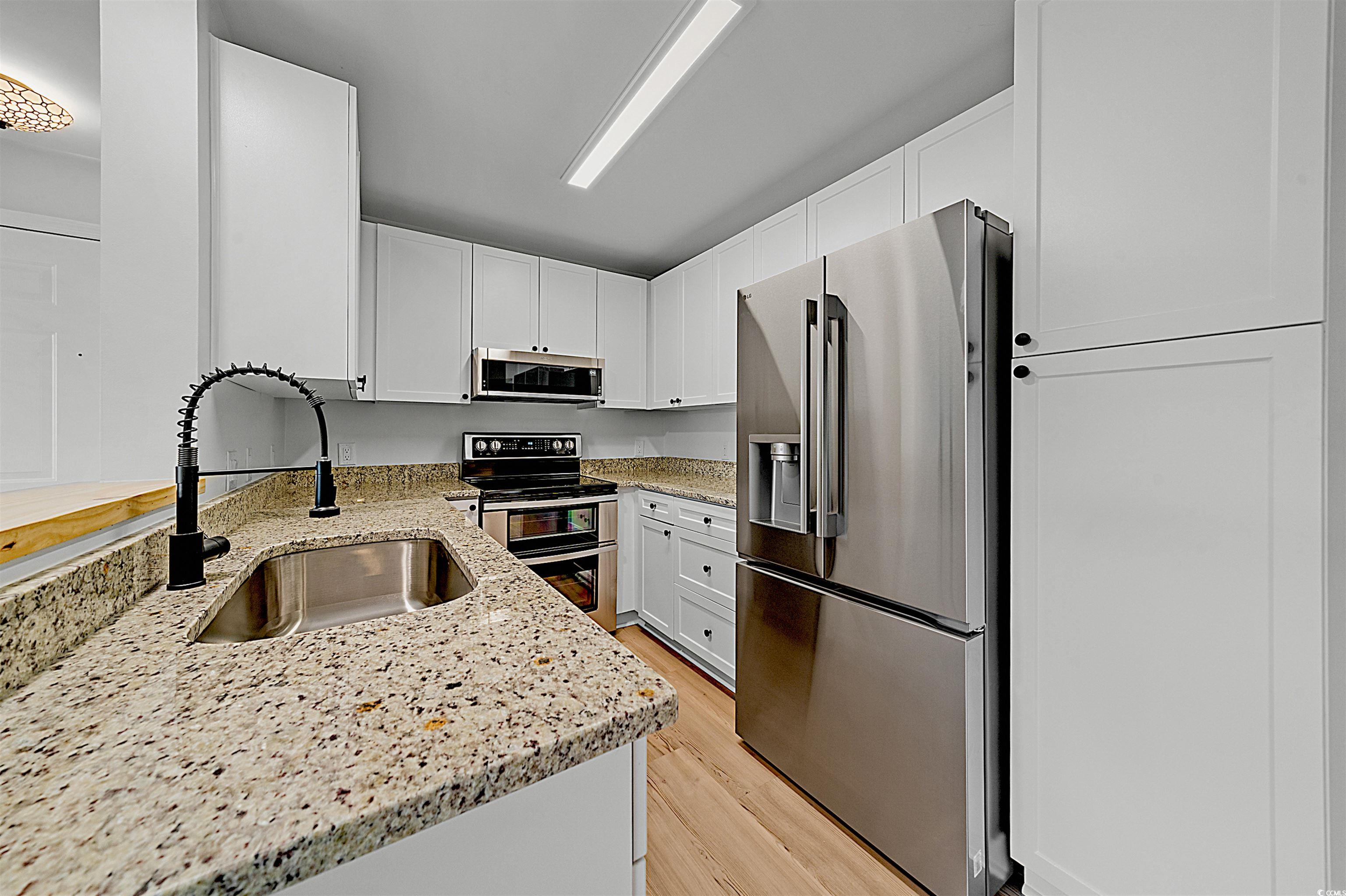 Completely renovated and beautiful. You don't want to miss this opportunity. Located close to shopping, restaurants, medical facilities and the beach, this second floor, corner unit has an open floor plan with lots of natural light. The owner has just installed new flooring, smooth ceilings, new cabinets, new granite counter-tops, new appliances, new light fixtures, new windows, new vanities and even new doors! Don't miss out on this great deal, come see this one before it's gone! Some photos in this listing have been virtually staged.