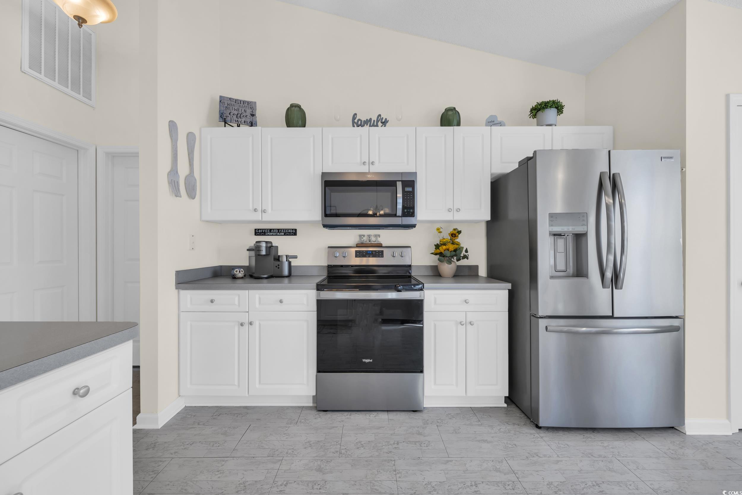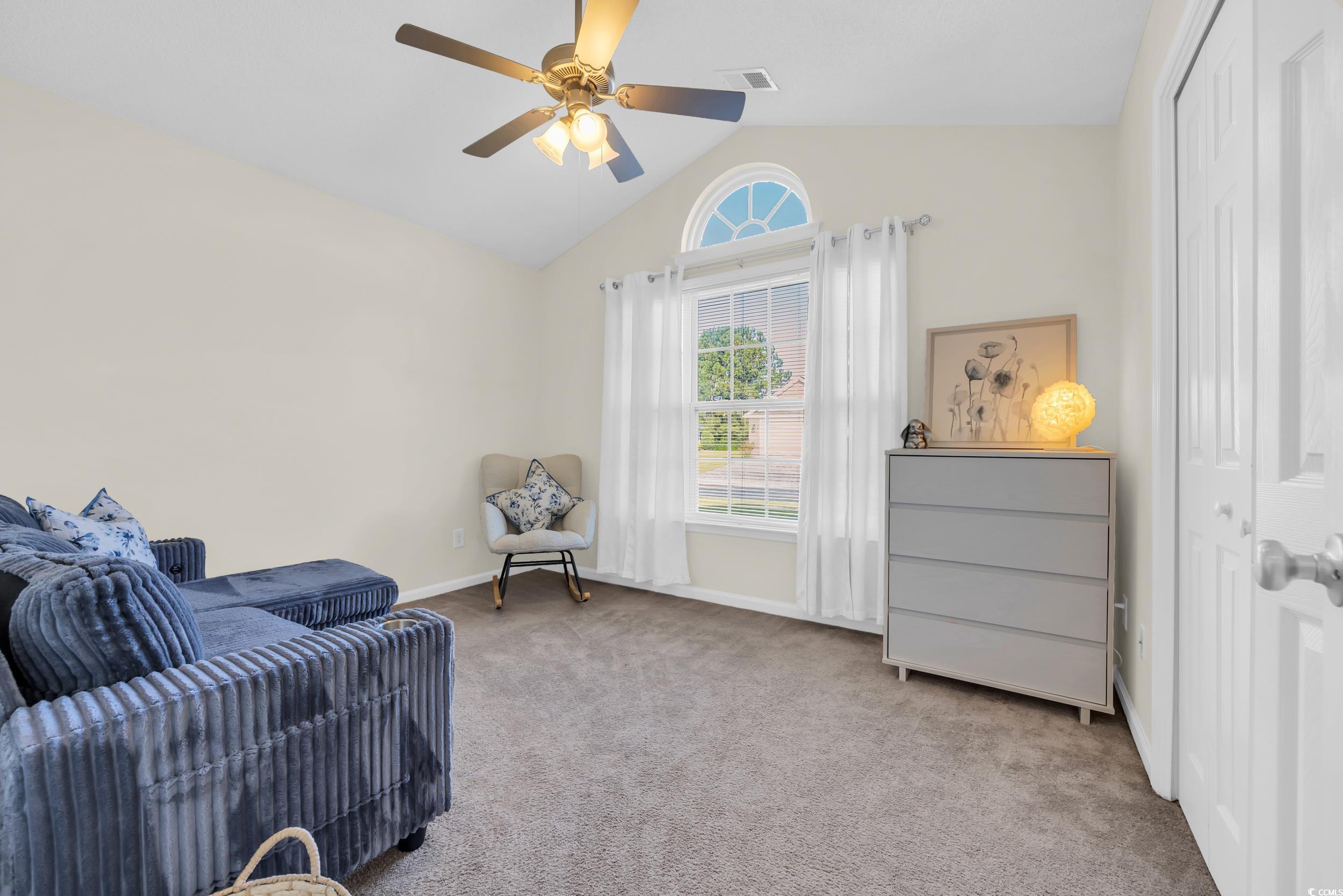 Welcome to this charming 3-bedroom, 2-bath ranch in Highland Ridge, perfectly located in the desirable Forestbrook area of Myrtle Beach. From the moment you step inside, this home welcomes you with a long Foyer, ideal for displaying artwork and décor, leading into a thoughtfully designed split-bedroom floor plan with soaring ceilings in the Main Living Area and a decorative wall shelf, perfect for showcasing treasured pieces. The open layout includes a spacious Living and Dining Area flowing seamlessly into the Kitchen, complete with pantry, SS appliances that include a brand-new Stove, Microwave, and Refrigerator. A large Breakfast Bar and cozy Eat-In Area make this space perfect for both casual meals and entertaining. The generous Primary Suite (15.5’ x 19’) with trey ceiling and fan boasts a Spa-like Bath with Vanity, a Walk-In Closet, and a Linen Closet. Two spacious Guest Bedrooms are conveniently situated at the front of the home with access to a full Bath, offering privacy for family or guests. The generous sized Laundry Room is thoughtfully located just off the 2 Car Garage and offers service as a useful Mudroom. Step outside to your back Patio overlooking a tranquil pond where you can enjoy views of swans and ducks while sunning and grilling to your hearts content. Highland Ridge offers a Community Pool and suburban feel while being just minutes from Shopping, Dining, Coastal Grand Mall, top-rated Schools, and easy access to Hwy 17 Bypass and Hwy 501. With a new HVAC system (2023), this home is move-in ready. Experience the perfect blend of comfort, convenience, and coastal charm—your Myrtle Beach lifestyle awaits at 88 Bonnie Bridge Circle at Highland Ridge.
