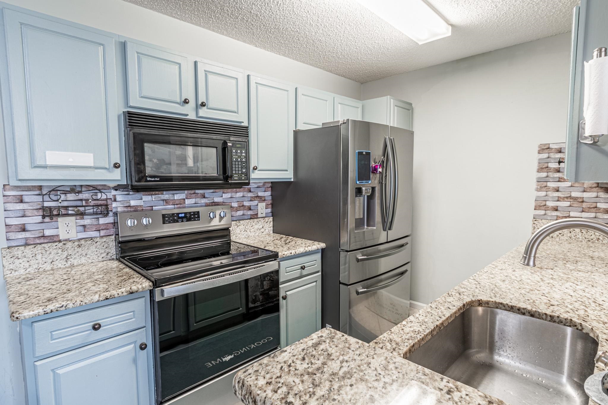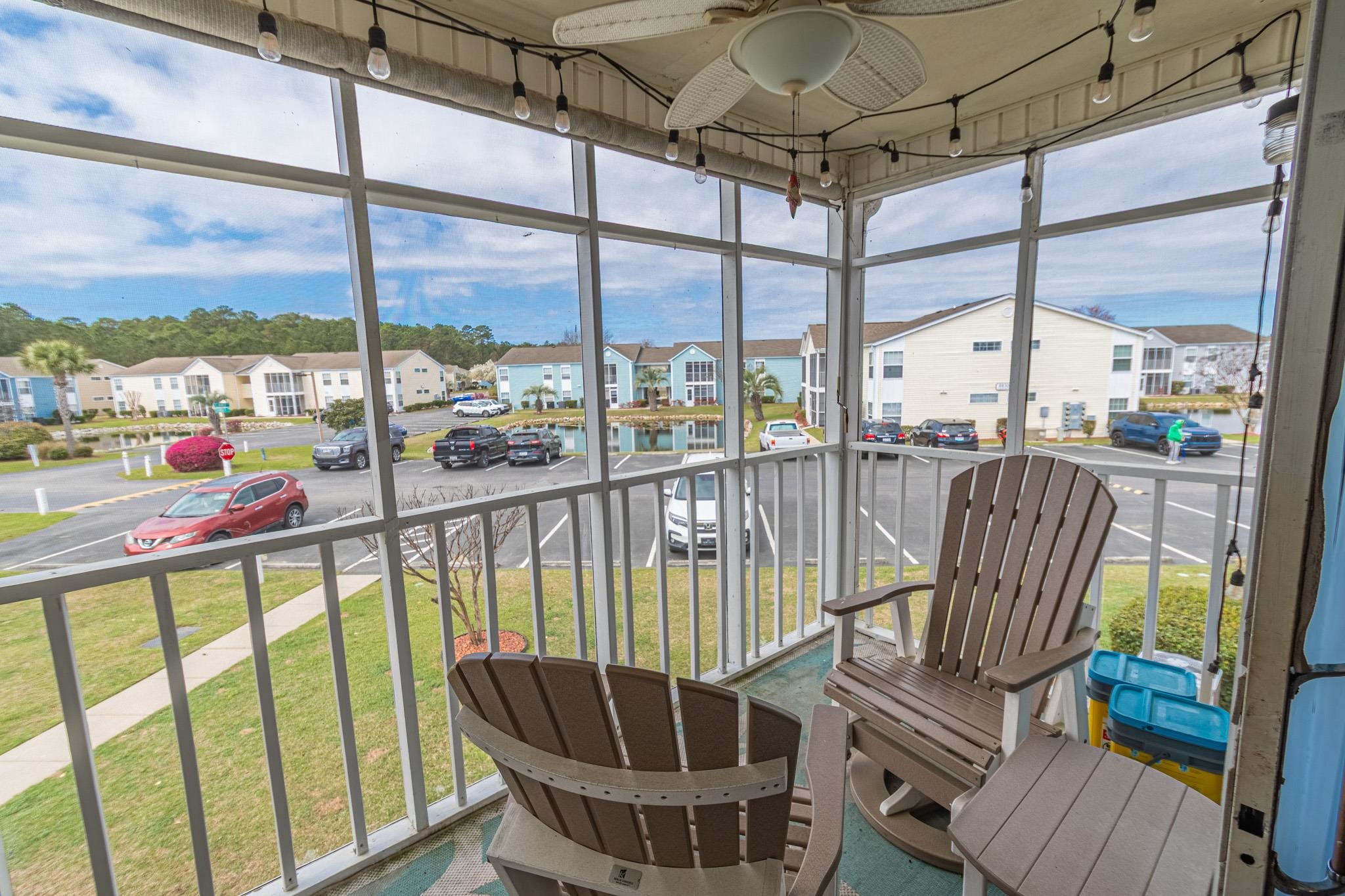 Welcome to this spacious three bedroom, two bathroom second-floor condo located in the desirable South Bay Lakes community. This unit features an open and airy floor plan, perfect for comfortable living or a relaxing coastal getaway. The kitchen is equipped with granite countertops and stainless-steel appliances, offering both style and functionality. The large living and dining area provides plenty of room for entertaining or unwinding after a day at the beach. Step outside to your private screened-in balcony, complete with an outdoor storage closet, ideal for storing beach gear and outdoor essentials. The main bathroom features a beautifully renovated shower, adding a modern touch to this inviting home. Located just minutes from Surfside Beach and the Atlantic Ocean, South Bay Lakes offers convenient access to shopping, dining, golf, and all the attractions of the Grand Strand. Whether you're searching for a primary residence, second home, or vacation getaway, this condo offers the perfect combination of comfort, location, and coastal lifestyle.