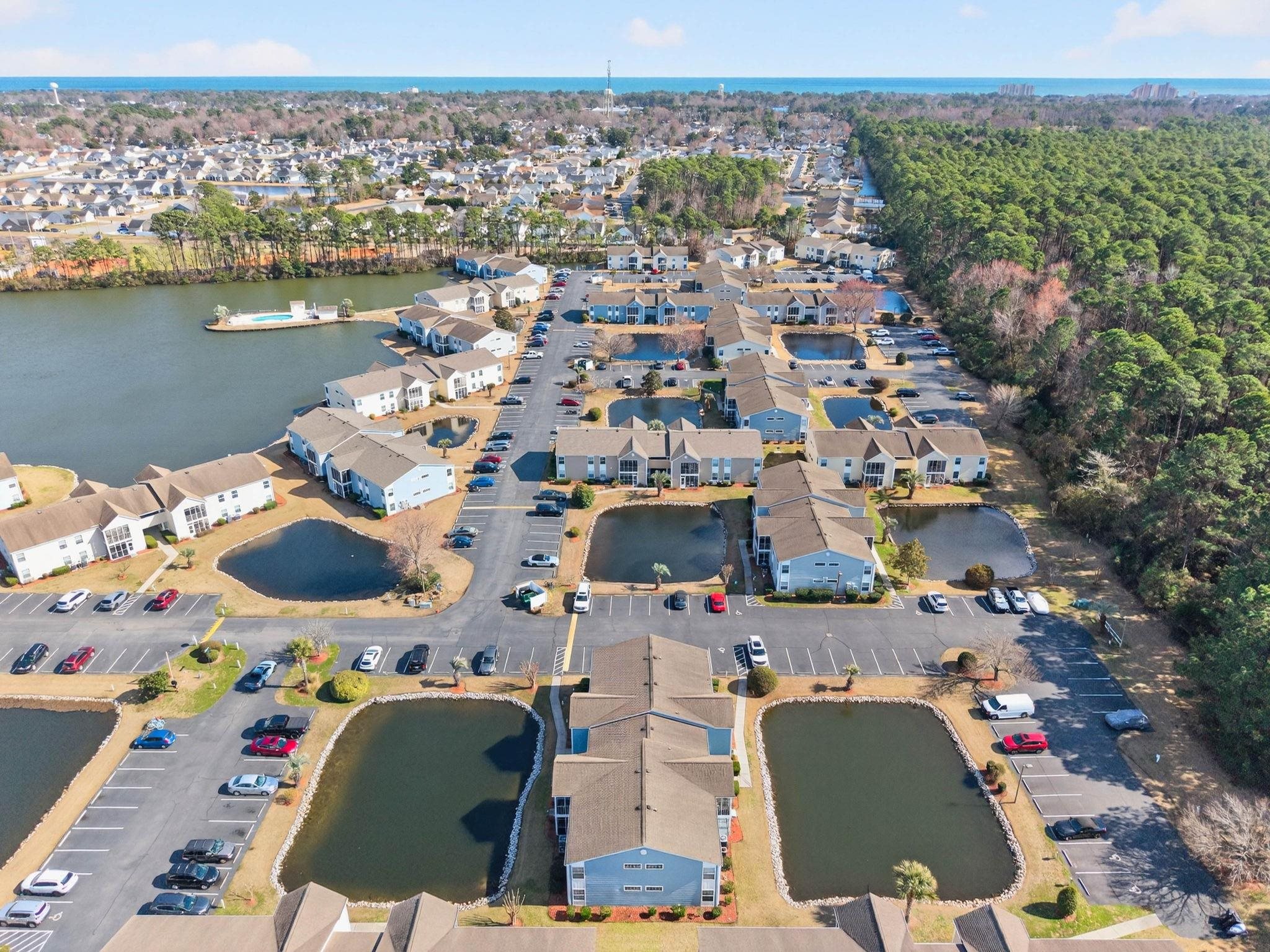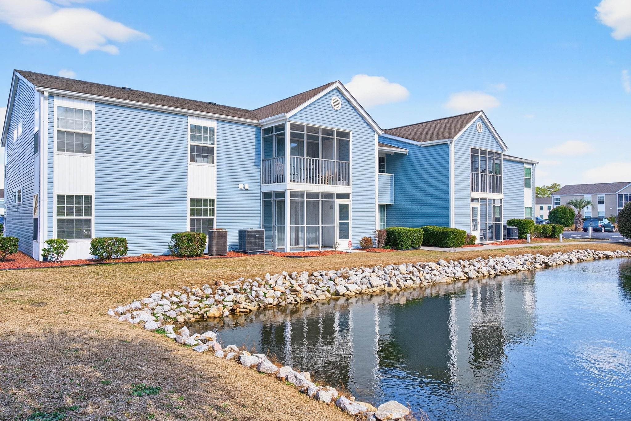 Welcome to 8862 Chandler Drive in Surfside Beach. This 2 bedroom, 2 bath first floor home, located in South Bay Lakes is minutes from Surfside Beach Pier. This home welcomes you with an open floor plan, a screened porch overlooking one of the many lakes and for your convenience, is being sold furnished. The HVAC unit was replaced in February of 2026 and the entire unit was painted, also February 2026 and the primary bath shower in 2025. Amenities include two pools, clubhouse, a pond with dock, and plenty of green space. Entertainment, shopping, attractions and dining options are abundant including The Market Common, Coastal Grand Mall, Broadway at the Beach and of course, the ocean.