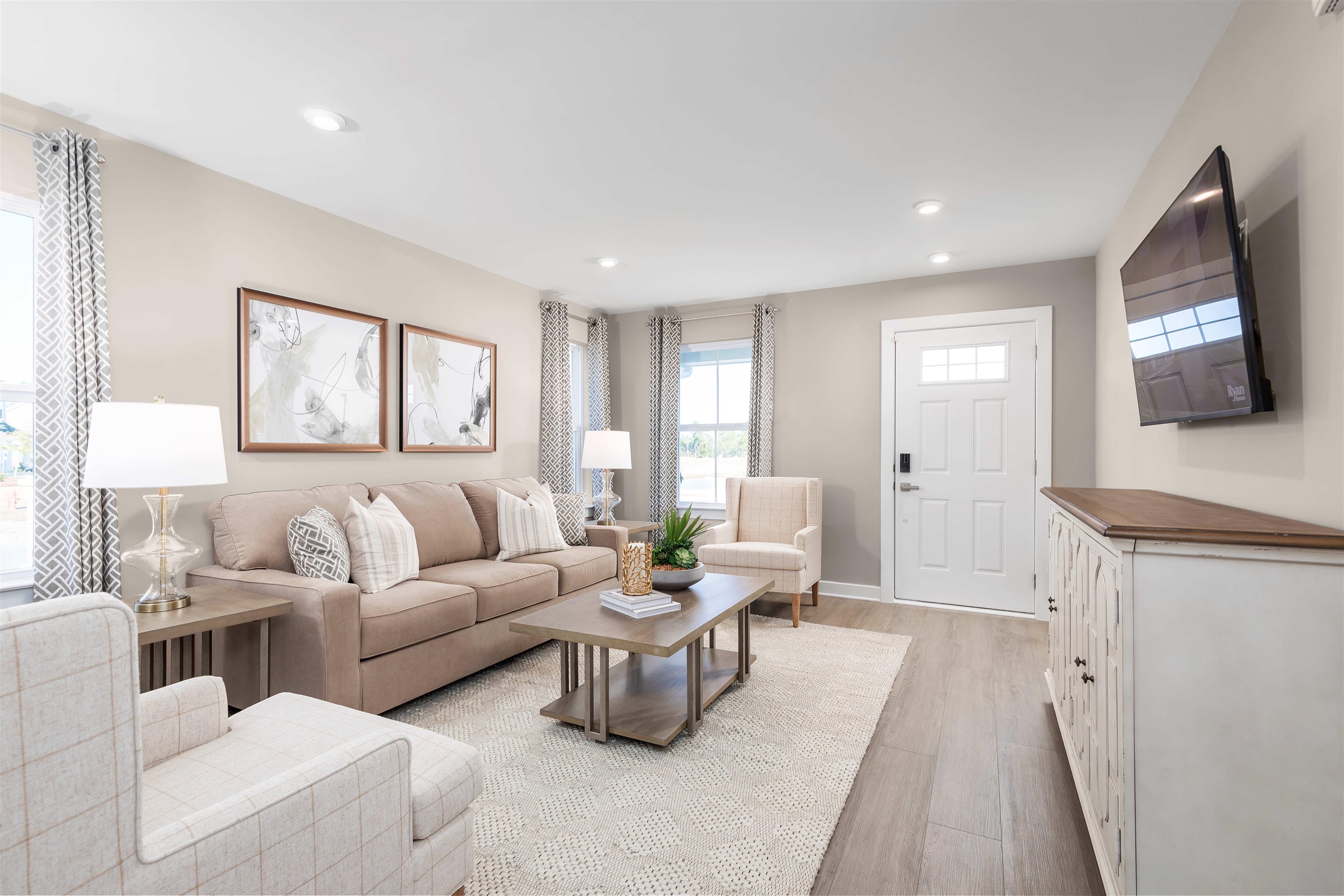 Welcome to Grande Dunes North Village, an upscale gated community ideally nestled between the Intracoastal Waterway and Highway 31 Bypass. This thoughtfully designed neighborhood offers a wealth of amenities, including an outdoor pool, clubhouse, fitness center, pickleball courts, firepit stations, a spacious entertainment lawn, playground, and scenic sidewalks and walking trails woven throughout the community. As a resident, you'll also enjoy exclusive membership to the Grande Dunes Ocean Club, adding beachfront luxury to your everyday lifestyle. The Grand Nassau truly lives up to its grand name. Enter this attached home through the one-car garage and step right into the gorgeous gourmet kitchen. Its large center island overlooks both the inviting great room and the formal dining space. Entertain family and friends here or outside on the optional outdoor patio. The main level also includes your luxury owner’s suite, which features a dual vanity bath and huge walk-in closet. Upstairs, you’ll find two spacious bedrooms, a full bath, and unfinished storage. Contact us today to learn more!