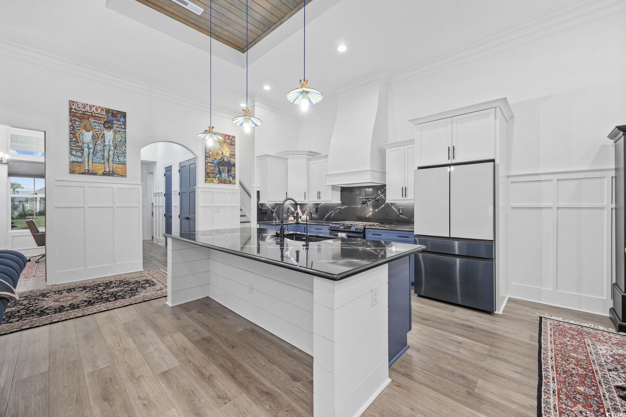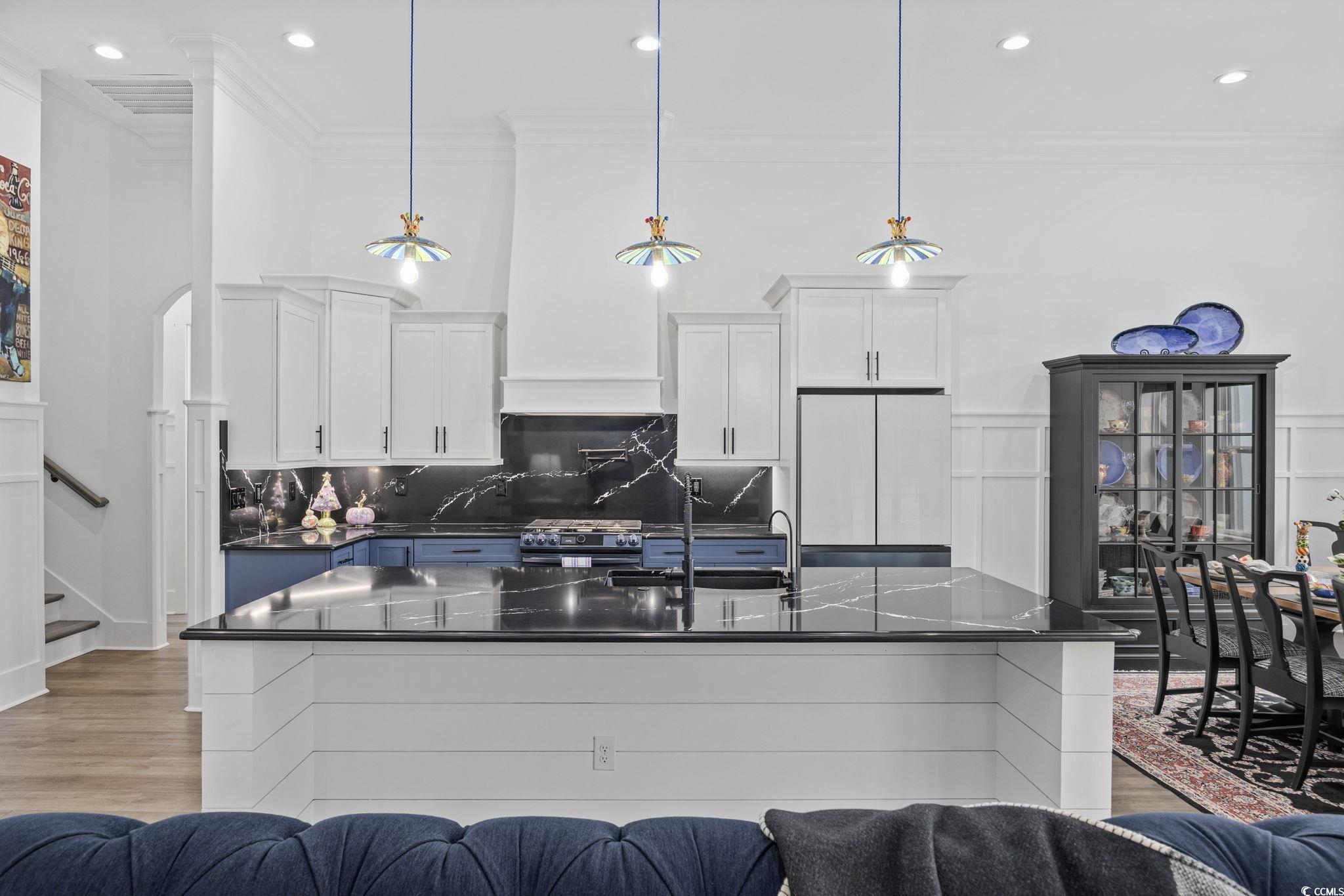 ***OPEN HOUSE Sunday November 16th 1-3pm*** Welcome home to this one-of-a-kind Craftsman style home where artisan craftsmanship, refined luxury, and serene pond views come together in the heart of the prestigious Brunswick Plantation. Perfectly positioned on a serene pond front lot, this custom-built home offers four generously sized bedrooms, four bathrooms three of which are ensuites, and a true three-car garage, combining elegant design with thoughtful upgrades and premium finishes throughout. Built by local custom builder Fox Homes, this property stands apart with quality, function, and style that go well beyond builder grade. The exterior makes a lasting first impression with brick accents, James Hardie board and batten siding, metal accent roofing, and architectural shingles, blending durability with timeless curb appeal. Inside, the open floor plan showcases luxury vinyl plank flooring throughout and soaring 10-foot-plus ceilings on the main level. Architectural details include wood beam and tray ceilings, double-tray ceilings in the dining room, foyer, and primary suite, a stacked-stone gas fireplace with a custom mantel, and extensive crown molding and trim work. The chef’s kitchen is a showstopper, blending artisan charm with high-end functionality. Cambria quartz countertops extend into a full-height backsplash, complemented by an Elkay undermount stainless steel sink and a Bespoke Samsung appliance package with refrigerator, dishwasher, gas stove, and washer/dryer with stands. A café-style white drawer microwave adds convenience, while three handcrafted pendant lights over the island—designed by UK ceramic artist Mary Rose Young add a one-of-a-kind artistic touch. For peace of mind and a healthier lifestyle, this home is equipped with a whole-house Kinetico water filtration system, UV light purification, a water softener, reverse osmosis filtration at the kitchen sink, and a PFAS filter for the refrigerator water line. Natural light pours into the living spaces, softened by Hunter Douglas cordless Duette honeycomb blinds that are as beautiful as they are energy-efficient. The primary suite is generously sized with dual custom walk-in closets, granite dual vanities, a soaking tub, and a custom-tiled walk-in shower. Additional features include a three-car garage, a spacious screened rear porch and patio for outdoor entertaining, abundant walk-in attic storage for easy and convenient access. LP Gas supplies the tankless water heater, fireplace, and kitchen range for even more of a bonus. Brunswick Plantation is one of Calabash, North Carolina’s premier gated communities, offering world-class amenities, lush landscaping, and resort-style living just minutes from the coast. There is a brand new clubhouse, pool and pickleball courts in the Hamptons section of Brunswick Plantation. You also have access to the other pools and amenities within Brunswick Plantation as well as the peace of mind of being in a gated community. When only the best will do, this home delivers. Schedule your showing today and come and see it for yourself!