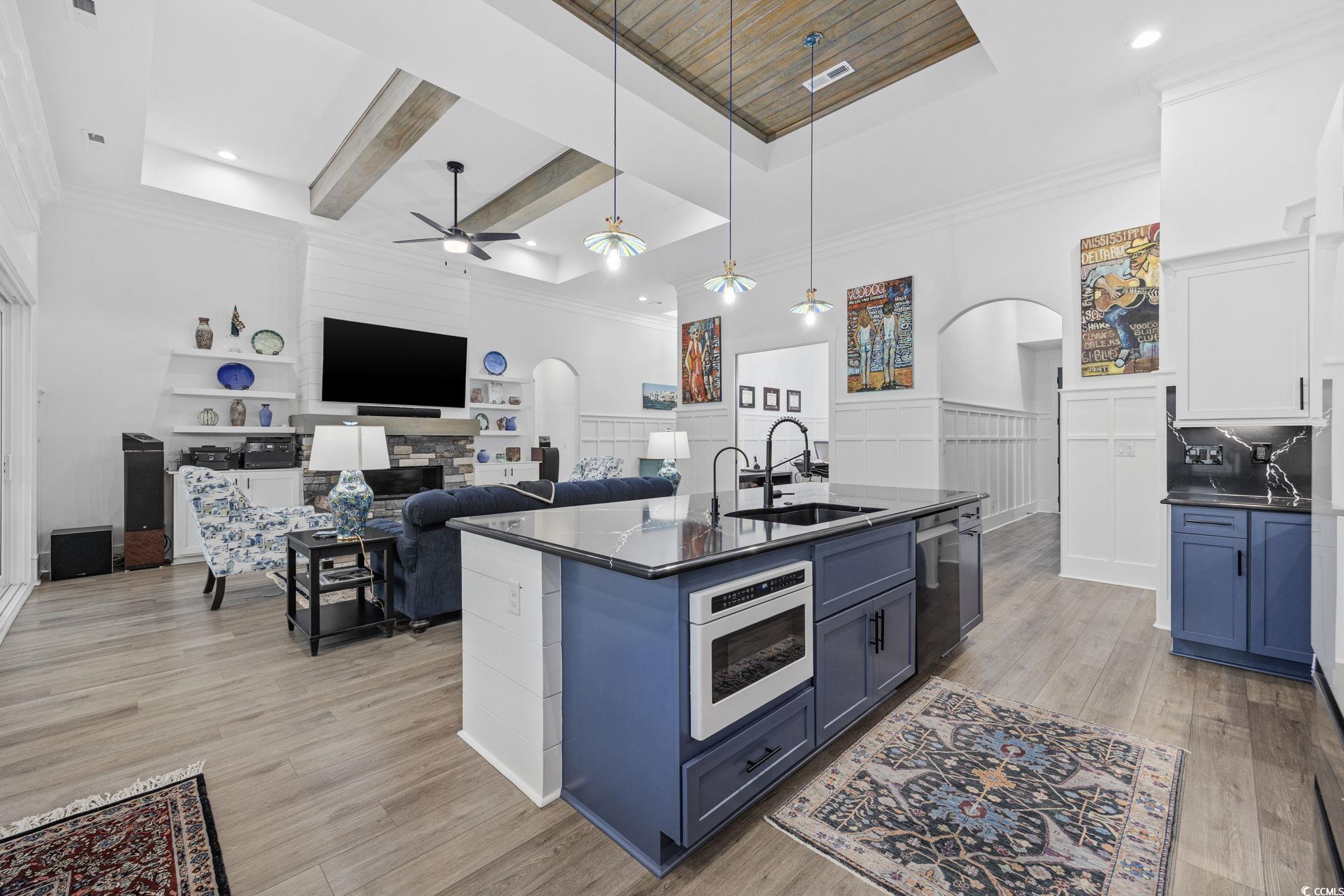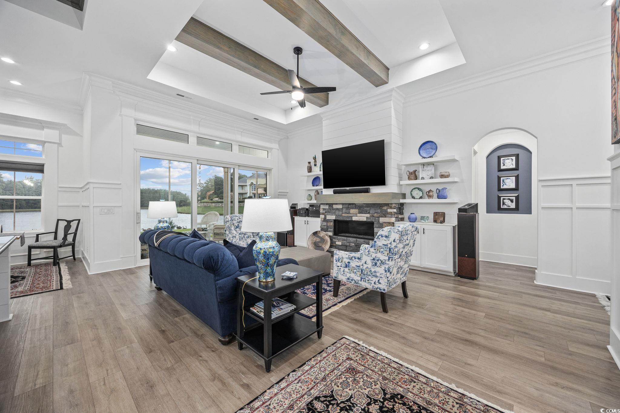 Welcome home to this one-of-a-kind Craftsman style home where artisan craftsmanship, refined luxury, and serene pond views come together in the heart of the prestigious Brunswick Plantation. Perfectly positioned on a serene pond front lot, this custom-built home offers four generously sized bedrooms, four bathrooms three of which are ensuites, and a true three-car garage, combining elegant design with thoughtful upgrades and premium finishes throughout. Built by local custom builder Fox Homes, this property stands apart with quality, function, and style that go well beyond builder grade. The exterior makes a lasting first impression with brick accents, James Hardie board and batten siding, metal accent roofing, and architectural shingles, blending durability with timeless curb appeal. Inside, the open floor plan showcases luxury vinyl plank flooring throughout and soaring 10-foot-plus ceilings on the main level. Architectural details include wood beam and tray ceilings, double-tray ceilings in the dining room, foyer, and primary suite, a stacked-stone gas fireplace with a custom mantel, and extensive crown molding and trim work. The chef’s kitchen is a showstopper, blending artisan charm with high-end functionality. Cambria quartz countertops extend into a full-height backsplash, complemented by an Elkay undermount stainless steel sink and a Bespoke Samsung appliance package with refrigerator, dishwasher, gas stove, and washer/dryer with stands. A café-style white drawer microwave adds convenience, while three handcrafted pendant lights over the island—designed by UK ceramic artist Mary Rose Young add a one-of-a-kind artistic touch. For peace of mind and a healthier lifestyle, this home is equipped with a whole-house Kinetico water filtration system, UV light purification, a water softener, reverse osmosis filtration at the kitchen sink, and a PFAS filter for the refrigerator water line. Natural light pours into the living spaces, softened by Hunter Douglas cordless Duette honeycomb blinds that are as beautiful as they are energy-efficient. The primary suite is generously sized with dual custom walk-in closets, granite dual vanities, a soaking tub, and a custom-tiled walk-in shower. Additional features include a three-car garage, a spacious screened rear porch and patio for outdoor entertaining, abundant walk-in attic storage for easy and convenient access. LP Gas supplies the tankless water heater, fireplace, and kitchen range for even more of a bonus. Brunswick Plantation is one of Calabash, North Carolina’s premier gated communities, offering world-class amenities, lush landscaping, and resort-style living just minutes from the coast. There is a brand new clubhouse, pool and pickleball courts in the Hamptons section of Brunswick Plantation. You also have access to the other pools and amenities within Brunswick Plantation as well as the peace of mind of being in a gated community. When only the best will do, this home delivers. Schedule your showing today and come and see it for yourself!