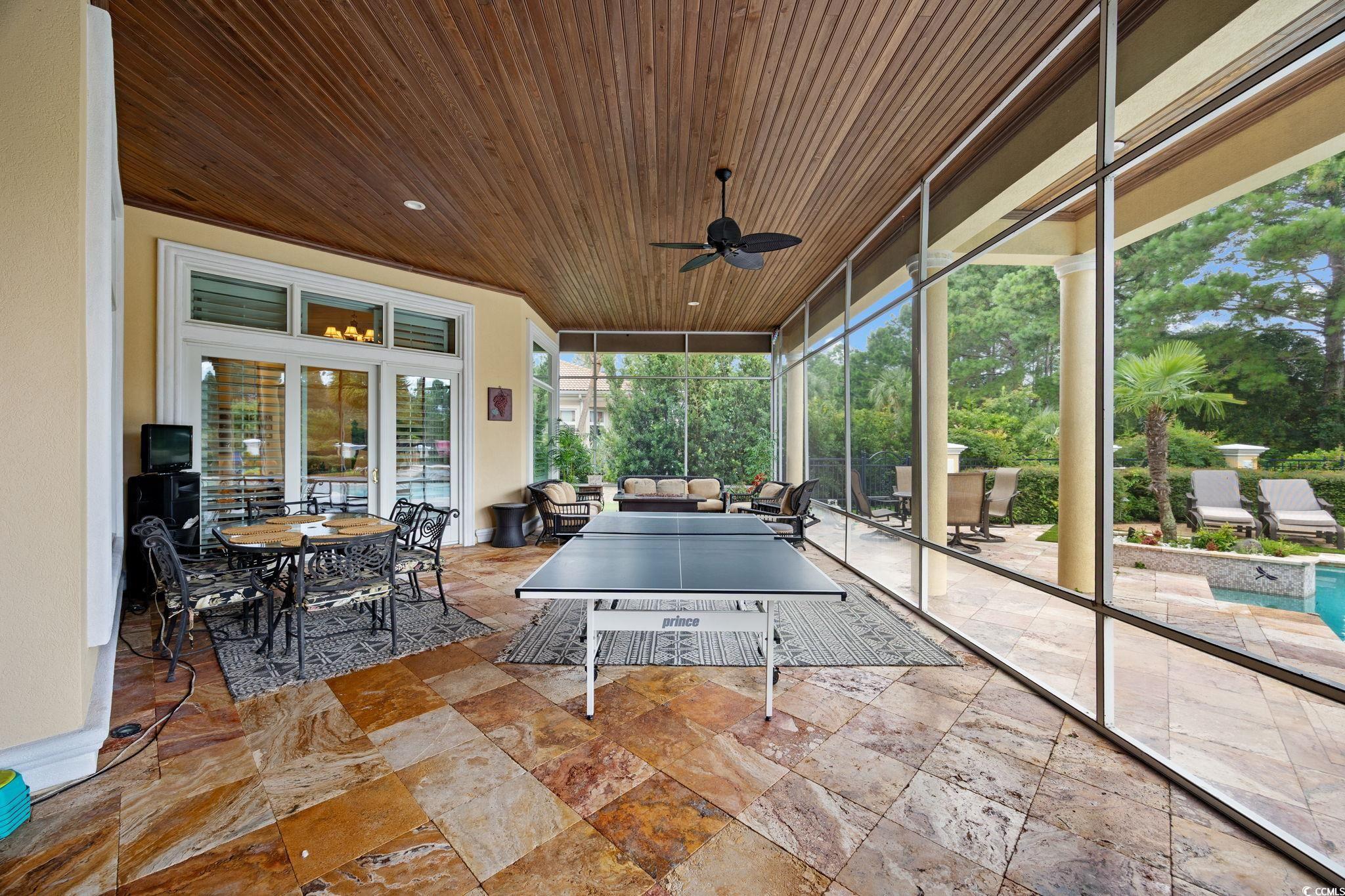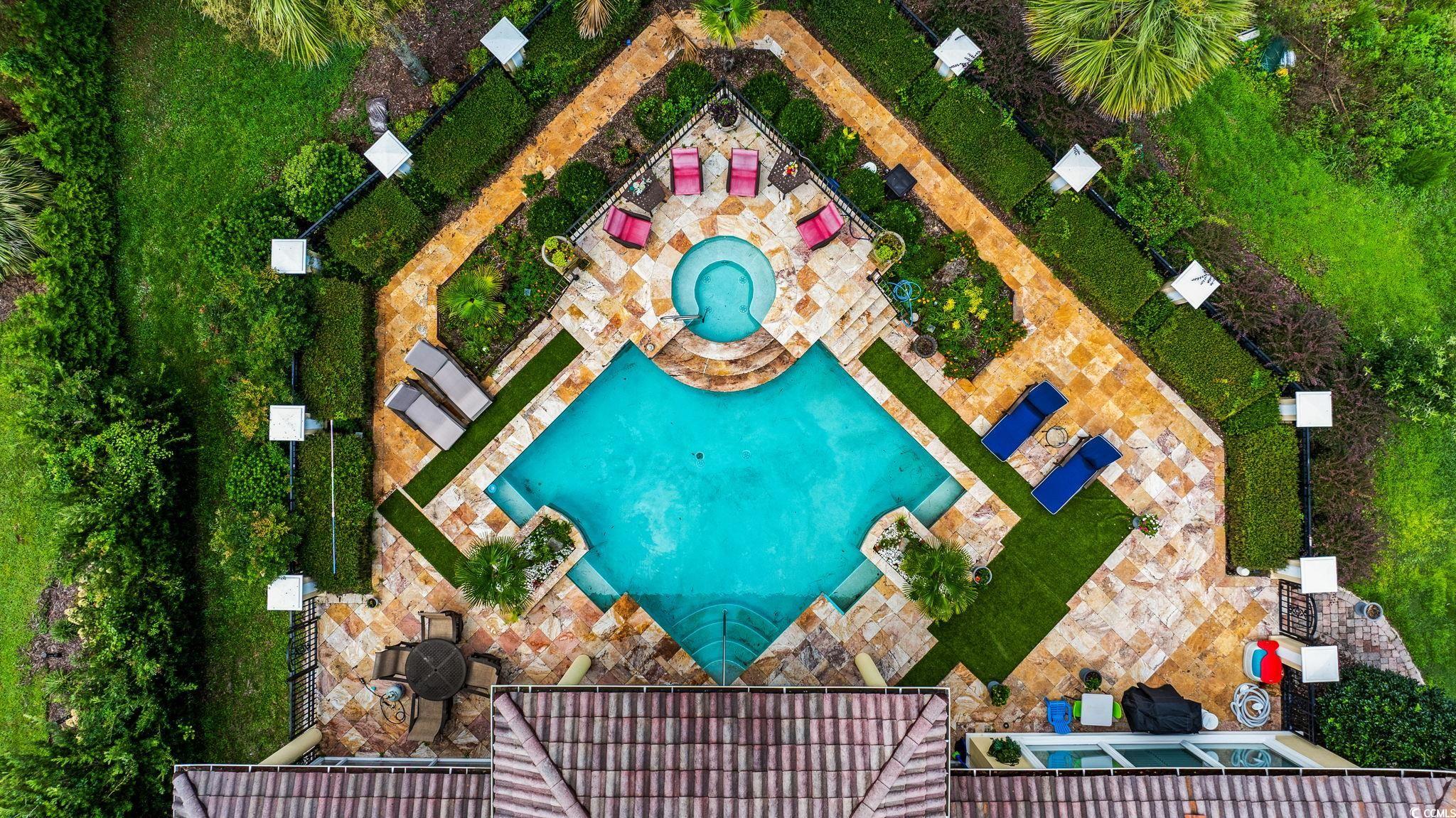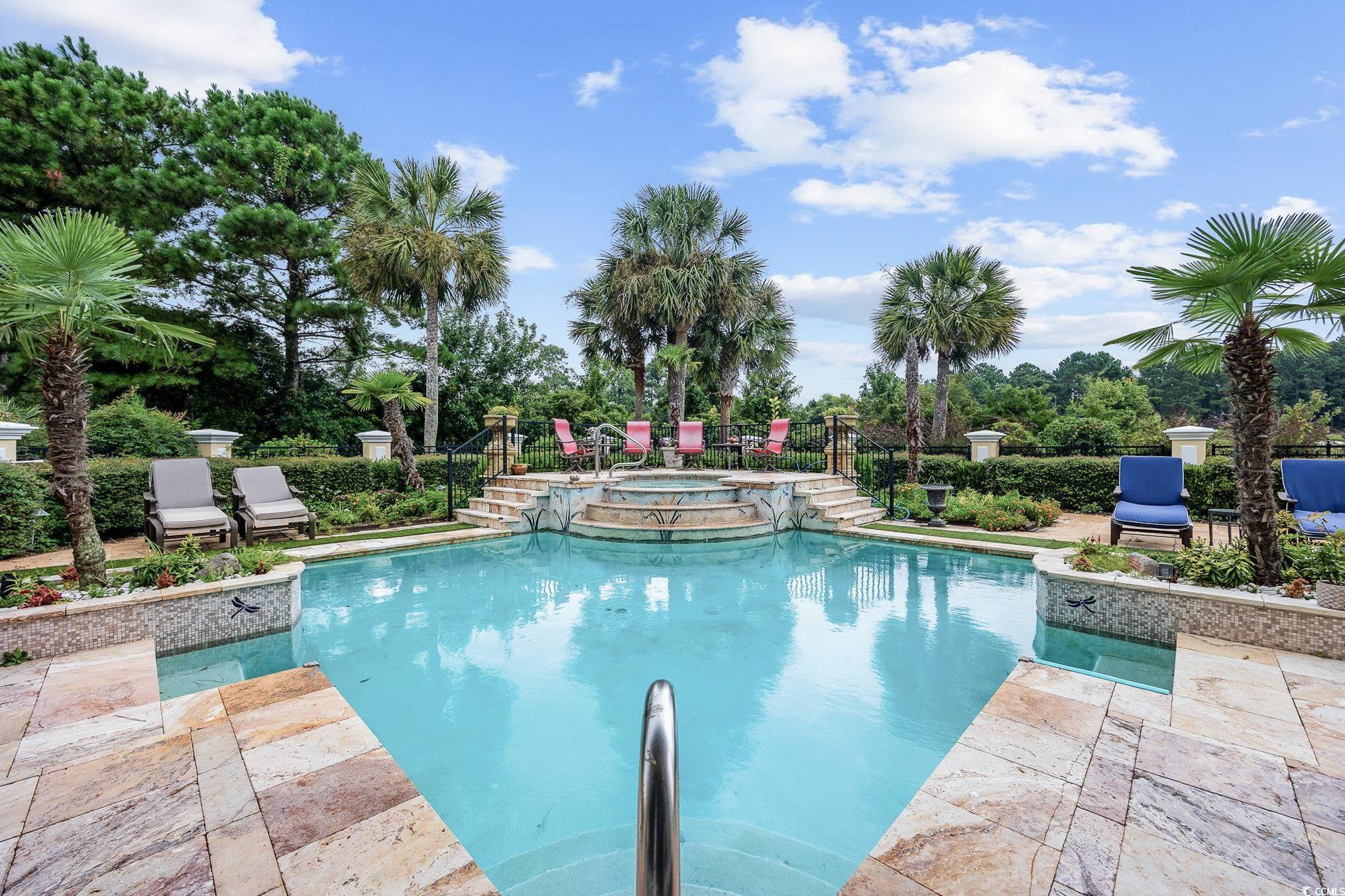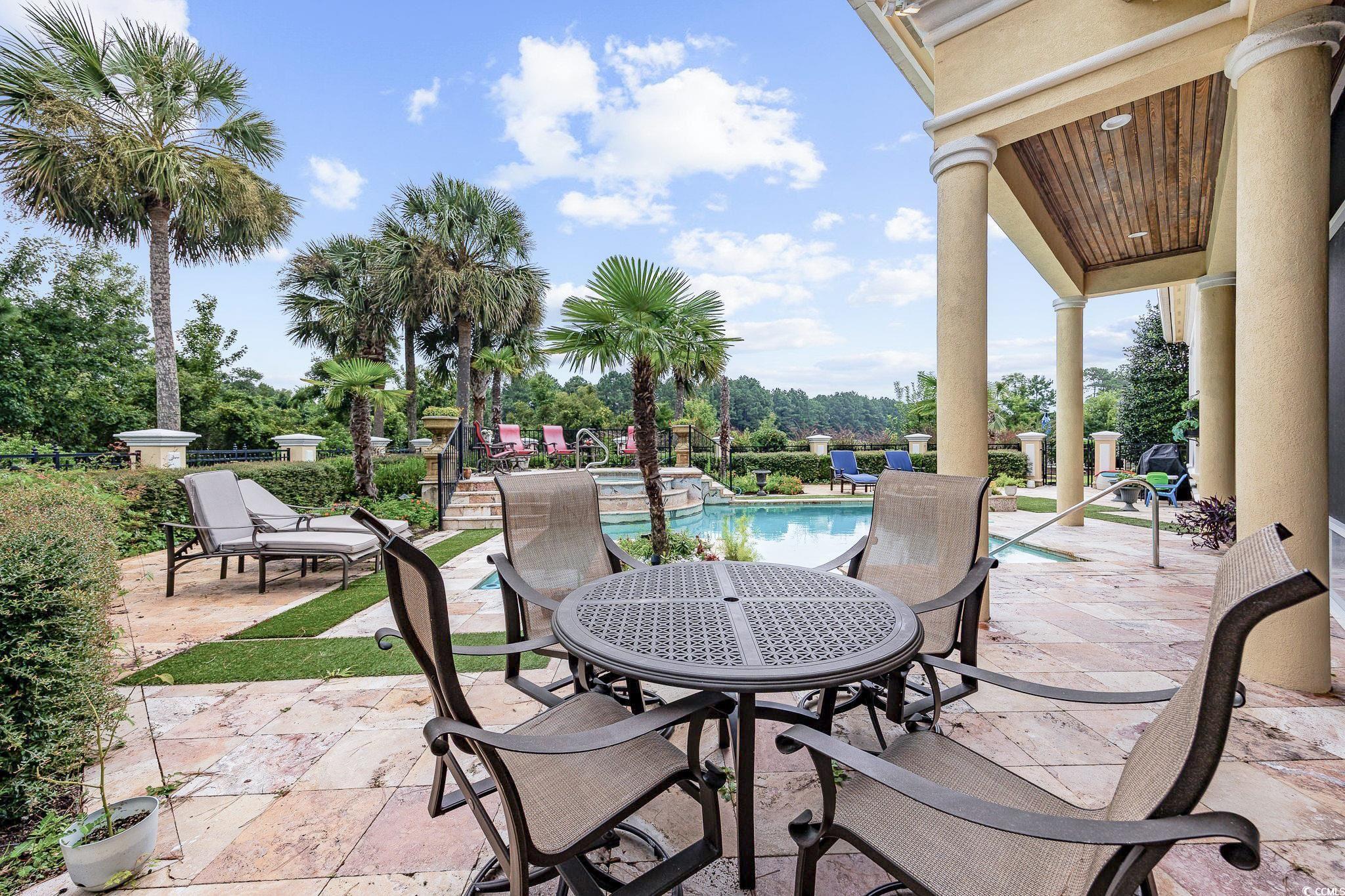 Welcome to this stunning custom-built home located in the prestigious double-gated Tuscany Village section of Grande Dunes in Myrtle Beach, South Carolina. 8969 Bella Verde Court sits on a hole #5 of the Grande Dunes Resort Course and offers ample indoor and outdoor living space and a custom-designed pool and spa. Step inside and you’ll immediately notice the luxury—travertine floors, granite countertops, custom cabinetry, and built-ins throughout. Exquisite architectural design, superb artisanship, quality ICF steel-framed construction, and freshly painted inside and outside. The gourmet kitchen features built in appliances, two freezers, a trash compactor, a 6 burner gas stove, large island, breakfast bar and dining nook, perfect for both everyday living and entertaining. The owners' suite has a jacuzzi tub, large walk in shower with many different shower heads, double vanity, walk-in closet and sliding doors from the bedroom that lead to the outdoor oasis. 2 more bedrooms each have their own bathrooms and then a half bath off of the kitchen. The layout includes both formal and casual living and dining areas, a home office or study and everything is on one level. Outside there is almost 1000 square feet of living area in the screened room. Conveniently there is a door to the half bath and the owners' suite. The pool is salt water with unique and rare tile mosaics and a brand new pool heater. Tucked away in one of the most sought-after and guard gated neighborhoods on the Grand Strand, this home offers an incredible lifestyle that’s hard to beat. You’re just minutes from the beach, shopping, restaurants, and airport—but still get to enjoy the peace and quiet of a resort-style community. Here, you’ll have access to top-notch amenities including two 18 hole golf courses, a deep-water marina, tennis courts, fitness centers, walking and biking trails, and options for on-site dining. Plus, ownership includes membership to the exclusive Grande Dunes Ocean Club, where you can golf cart to the exclusive oceanfront pool, restaurant, bar, and beach access. Schedule your tour today and become a part this amazing community in a fantastic home.