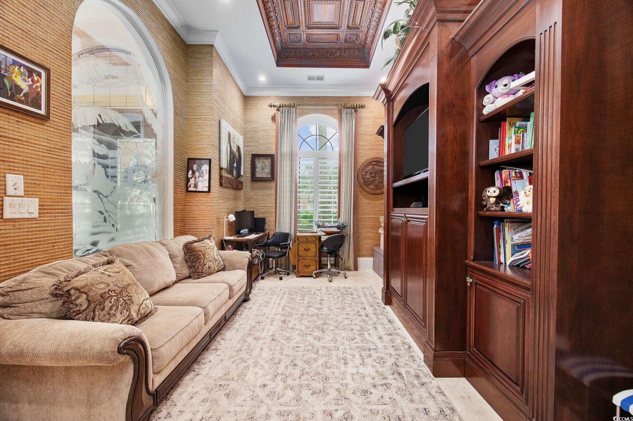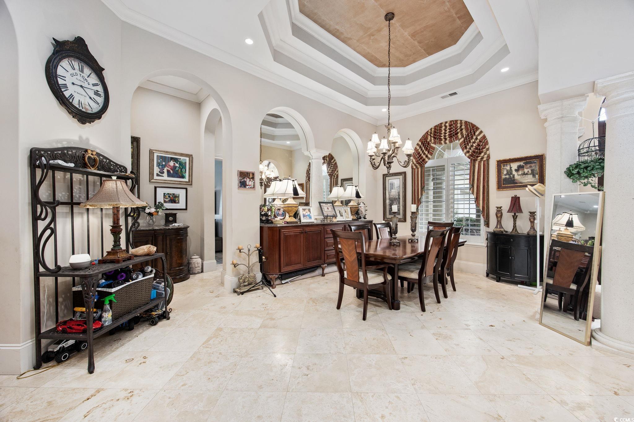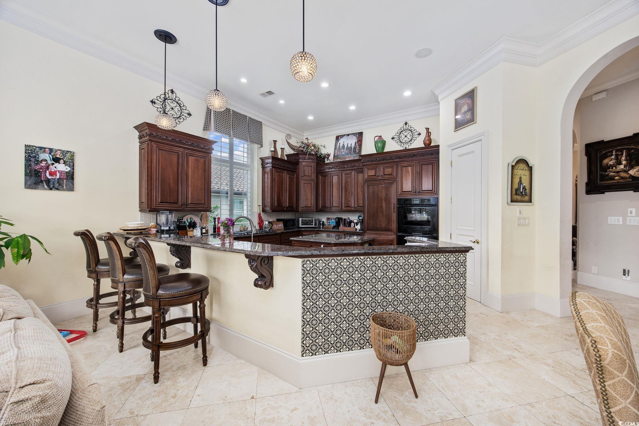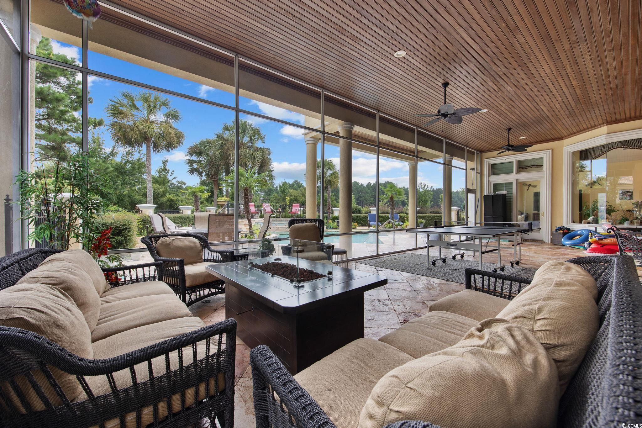 Welcome to this stunning custom-built home located in the prestigious double-gated Tuscany Village section of Grande Dunes in Myrtle Beach, South Carolina. 8969 Bella Verde Court sits on a hole #5 of the Grande Dunes Resort Course and offers ample indoor and outdoor living space and a custom-designed pool and spa. Step inside and you’ll immediately notice the luxury—travertine floors, granite countertops, custom cabinetry, and built-ins throughout. Exquisite architectural design, superb artisanship, quality ICF steel-framed construction, and freshly painted inside and outside. The gourmet kitchen features built in appliances, two freezers, a trash compactor, a 6 burner gas stove, large island, breakfast bar and dining nook, perfect for both everyday living and entertaining. The owners' suite has a jacuzzi tub, large walk in shower with many different shower heads, double vanity, walk-in closet and sliding doors from the bedroom that lead to the outdoor oasis. 2 more bedrooms each have their own bathrooms and then a half bath off of the kitchen. The layout includes both formal and casual living and dining areas, a home office or study and everything is on one level. Outside there is almost 1000 square feet of living area in the screened room. Conveniently there is a door to the half bath and the owners' suite. The pool is salt water with unique and rare tile mosaics and a brand new pool heater. Tucked away in one of the most sought-after and guard gated neighborhoods on the Grand Strand, this home offers an incredible lifestyle that’s hard to beat. You’re just minutes from the beach, shopping, restaurants, and airport—but still get to enjoy the peace and quiet of a resort-style community. Here, you’ll have access to top-notch amenities including two 18 hole golf courses, a deep-water marina, tennis courts, fitness centers, walking and biking trails, and options for on-site dining. Plus, ownership includes membership to the exclusive Grande Dunes Ocean Club, where you can golf cart to the exclusive oceanfront pool, restaurant, bar, and beach access. Schedule your tour today and become a part this amazing community in a fantastic home.