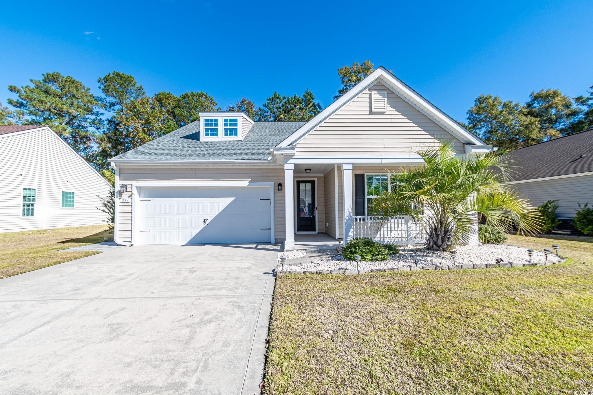 Welcome home to this charming 3-bed, 2-bath residence with a 2-car garage and serene wooded backdrop in the desirable community of Carolina Crossing. Inside, you’ll find a blend of wood, LVP, and tile flooring throughout. The home welcomes you with a covered front porch and a foyer entry that opens to a spacious living and dining area featuring a ceiling fan, board-and-batten wall accents, and a sliding door leading to the screened-in back porch—perfect for relaxing and enjoying the private views. The kitchen offers granite countertops, stainless steel appliances, a stylish tile backsplash, staggered cabinetry, pantry, and a breakfast bar ideal for casual meals. The primary suite features a ceiling fan, walk-in custom closet, and a private bath complete with dual vanities, a deep soaking tub, and a separate walk-in shower. Bedroom two showcases vaulted ceilings, a ceiling fan, built-in cabinetry, and a custom closet, while bedroom three includes a ceiling fan and a spacious closet. Both share a hall bath with a vanity and a tub/shower combination. A large laundry room and mudroom provide additional convenience. Enjoy low maintenance living with Carolina Crossing’s HOA, which covers lawn care, irrigation, trash pickup, internet, and access to community amenities including a pool and clubhouse. Conveniently located just a short drive from Little River’s waterfront, area beaches, restaurants, shopping, dining, and entertainment. Square footage is approximate and should be verified by buyers.