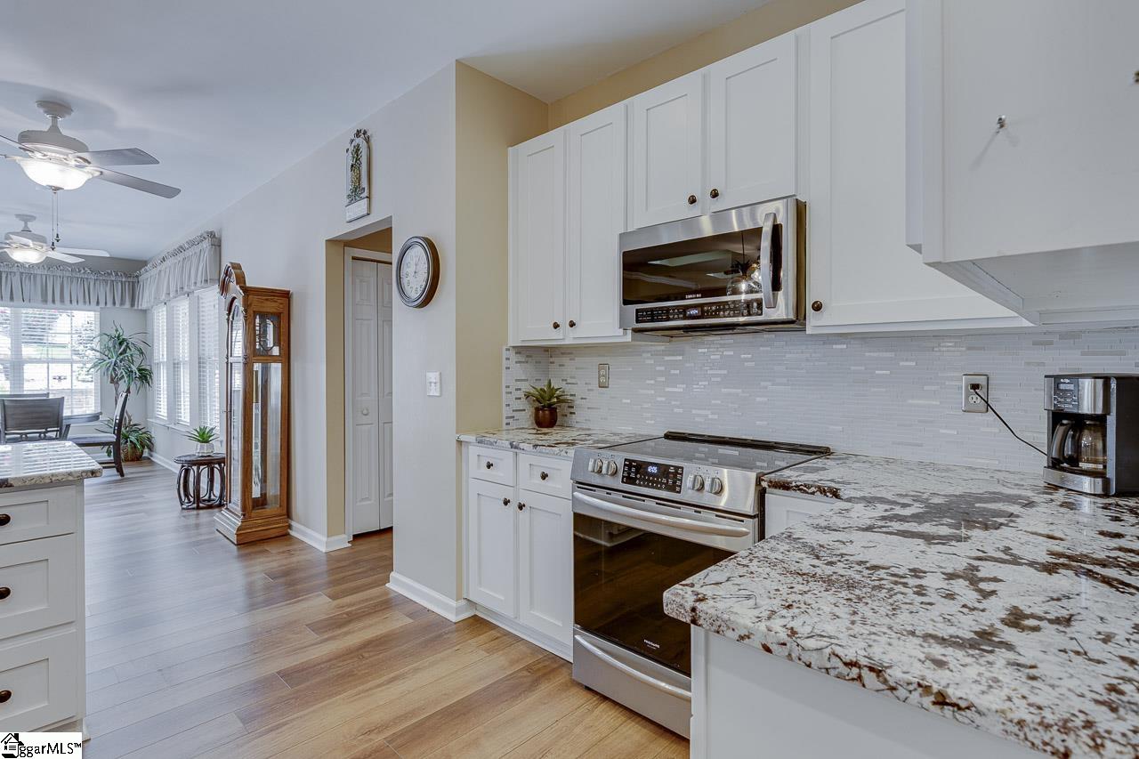 Enjoy an elevated resort life-style in this in this immaculate, well-maintained 1.5-story all brick home nestled in the serene Steeplechase Community where residents enjoy convenient access to schools, shopping, restaurants, medical facilities, GSP and the greater Simpsonville area. Situated on an established .52 acre interior lot, this low maintenence home offers appeal, comfort and livability with hardwood LVP floors, 9-foot ceilings, and excellent flow—ideal for everyday living, family gatherings, and entertaining. Large windows and skylights allow for plenty of natural light. New, high end Anderson front door and double patio doors recently installed.This comfortable home offers a spacious roomy layout with three bedrooms on the main level, plus a versatile upstairs game room, family room, or optional fourth bedroom / office. Step outside and enjoy the peace and quiet of your very own private retreat featuring a resort-style pool, cabana, attractive landscaping, and full fencing for added privacy. All smartly incorporated into the back yard. Although not designated as an empty-nester community, Steeplechase is a medium size community that offers a similar look and feel featuring sidewalks, cul-de-sac streets, and no through traffic, providing excellent walkability and a peaceful neighborhood. With one main entrance and cul-de-sac streets, the community offers a quiet retreat from traffic and the constant comings and goings of everyday life. As the Upstate continues to grow and develop, homes of this quality and type represent an outstanding value in highly sought-after locations and communities.