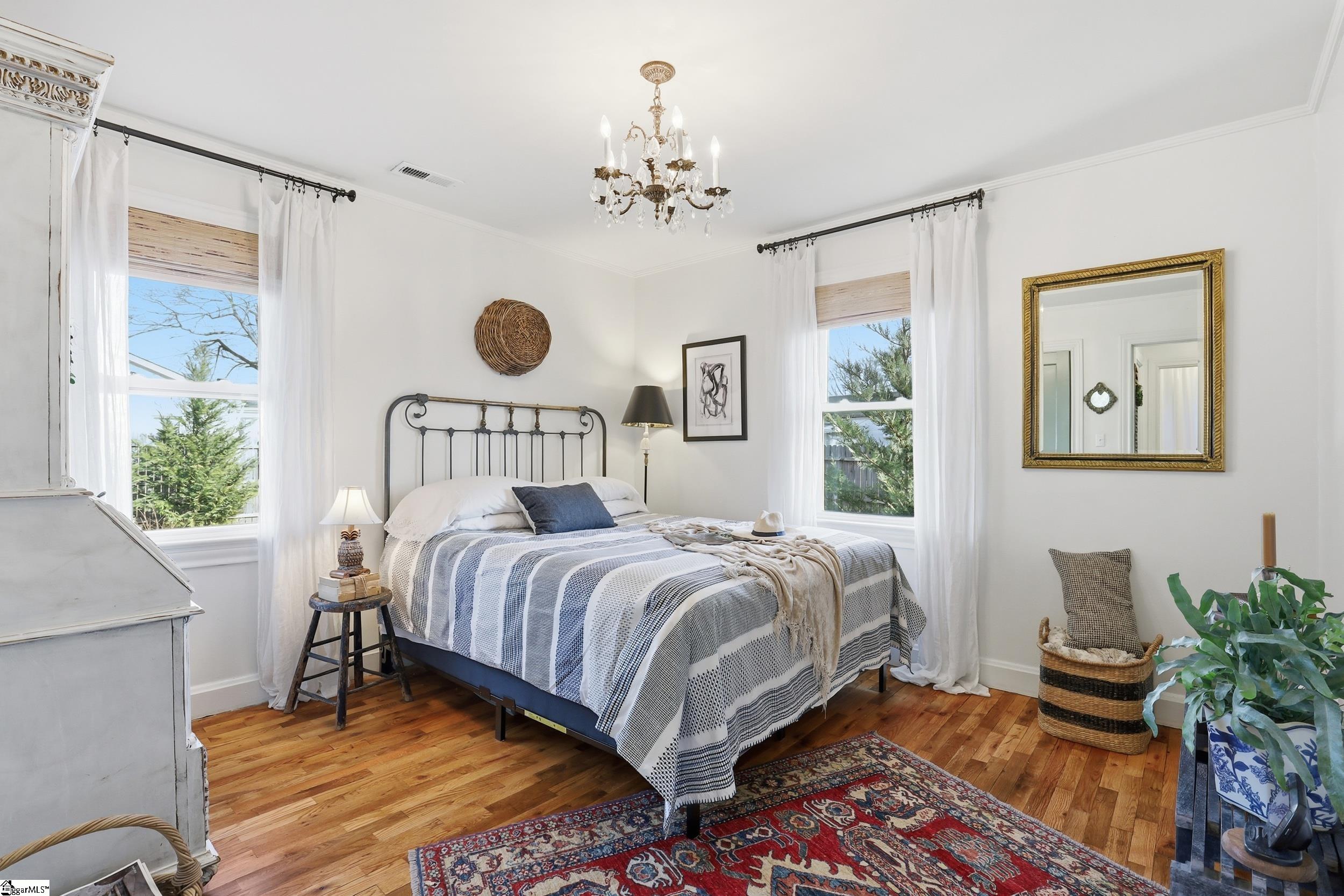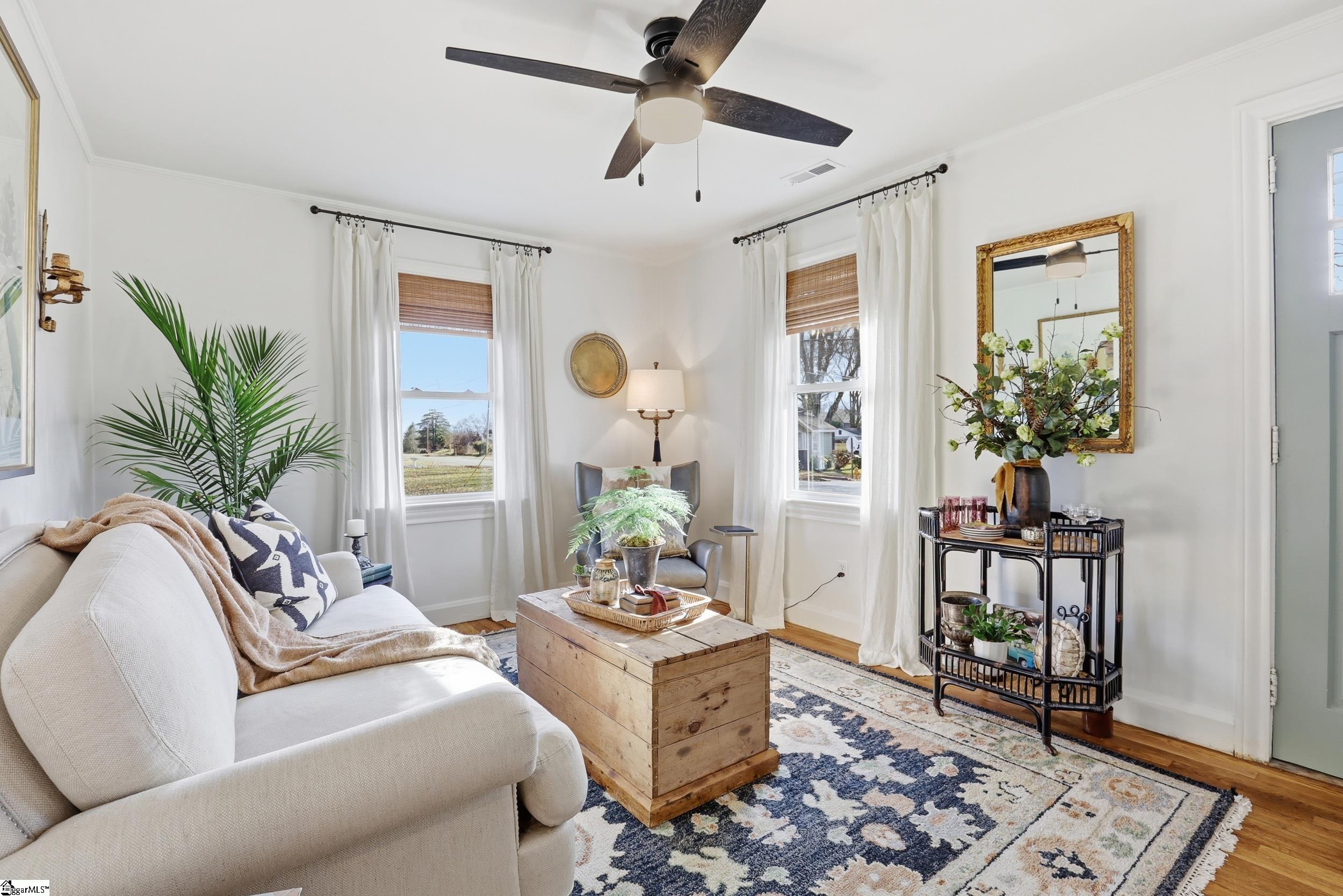 Welcome to 9 Beatrice St, a beautiful cottage perfectly located just 2 miles from downtown with easy access to Hwy 25 and only 20 minutes from GSP Airport. Conveniently close to parks, grocery stores, shops, and hospitals, this home offers both charm and practicality. Inside, you'll find a custom kitchen featuring ceiling-height cabinets, custom fixtures and lighting, and plenty of space for cooking and entertaining. Hardwood floors run throughout the home, complemented by bamboo Roman shades on the windows for a warm, polished touch. The fenced backyard provides ample room for gardening and offers the perfect balance of sun and shade—ideal for dining al fresco or enjoying an evening cocktail. The outdoor shed will stay with the home, and it's great for gardening storage. The owner thoughtfully landscaped both the front and backyard, including adding rock to the front ditch for improved drainage and curb appeal. Major updates include a new roof in 2025, HVAC replaced in 2022 and upgraded in 2025 by Ace Plumbing with a Pro Air Defense System, and a termite bond for added peace of mind.