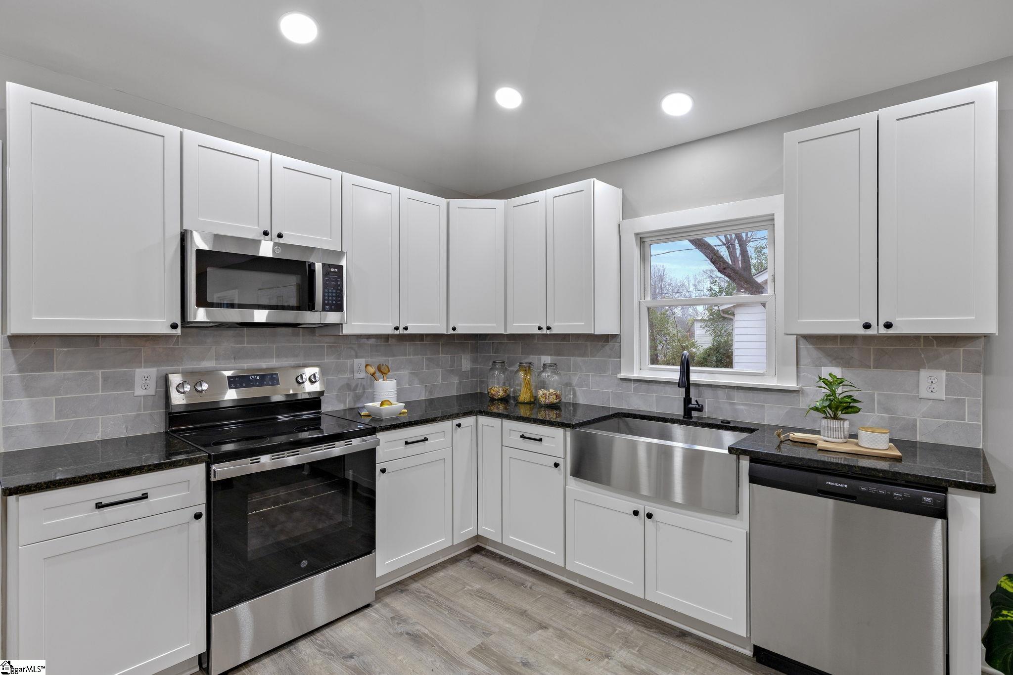 Fashionable "like new" home boasts a NEW kitchen featuring soft close cabinets, granite countertops, a tile backsplash, and new appliances . A NEW primary bathroom with a luxurious tile walk-in shower. Efficient gas heat, and gas tankless water heater and high ceilings add to the list of favorite home features. Plus shiny refinished wood floors and new luxury vinyl flooring. The home sits on a spacious, flat lot, complete with a front porch and a brand-new deck 9 Brooks Avenue is a short drive to Downtown Greenville to enjoy all the great restaurants, nightlife and festivals Greenville .Coming soon ... , the exciting “On The Trail GVL” initiative. On the Trail GVL is an expansive 240-acre redevelopment that is reporting for a 2.2-mile Swamp Rabbit Trail connector in the Sans Souci community. The trail extension will connect to Paris Mountain State Park. It will also feature multiple pedestrian bridges including one over West Blue Ridge Drive. gathering areas, and over 20 million square feet of mixed-use development including new commercial, residential and hospitality features and 100 acres of greenspace. You’re also only minutes from Travelers Rest! Come check out 9 Brooks Avenue today, you won’t regret it! Plus Direct access from the neighborhood to the Swamp Rabbit Trail and bike or walk to Downtown Greenville or go north to downtown Travelers Rest