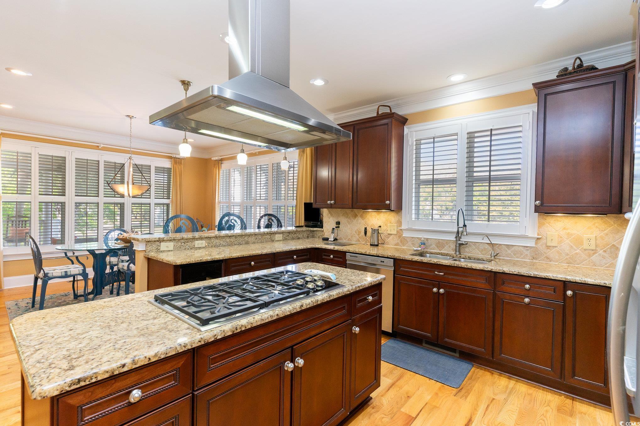 This stunning Low Country property located in the coveted, gated community of Belle Vue in Murrells Inlet is waiting for you to make it your own. Your new home features 3 levels, 5 large bedrooms, 4 full bathrooms, 1 half bath, an interior elevator going to all 3 levels, HUGE wrap around porch, recently replaced roof, gorgeous hardwood floors, recently painted exterior, multiple propane fireplaces, and more! Your primary bedroom features a sitting area, private screened in porch, fireplace, large ensuite with a large tile walk in shower and bath. Each additional bedroom is large, filled with light and have large walk in closets. On the ground floor, your huge, heated & air conditioned 3 bay, 5 car garage (which can accommodate 5 vehicles!) leads to an additional living space, and full bathroom! You are a short walk to the beautiful marshes of Murrells Inlet, where your community provides you with access to a private boat ramp, where you can take your boat from the Inlet to the Ocean! You also have a large community dock for crabbing, fishing , or simply relaxing! DO NOT wait on this one, it will not last long! Call today for more information or to schedule a private showing!