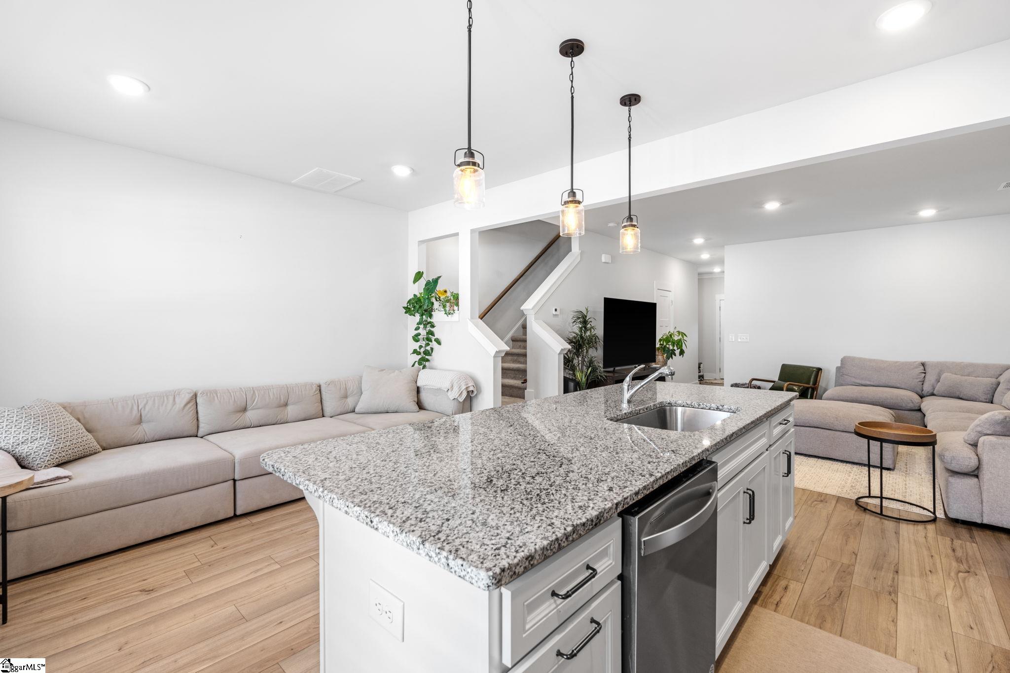 Meticulously maintained townhouse just minutes from downtown Travelers Rest, Furman University, Paris Mountain, and downtown Greenville. The open floor plan features a kitchen with an island with quartz countertops, gas range, stainless steel appliances, and new subway tile backsplash flowing into a bright den and breakfast area. Upstairs offers new carpet (with upgraded pad) and plantation shutters throughout. The primary suite includes a walk-in closet, dual sinks, and tiled shower. Two other bedrooms, a full hall bath, and laundry room complete the upstairs. Backyard is a fenced yard for added privacy with new sod. Move-in ready and ideally located for convenience and comfort!