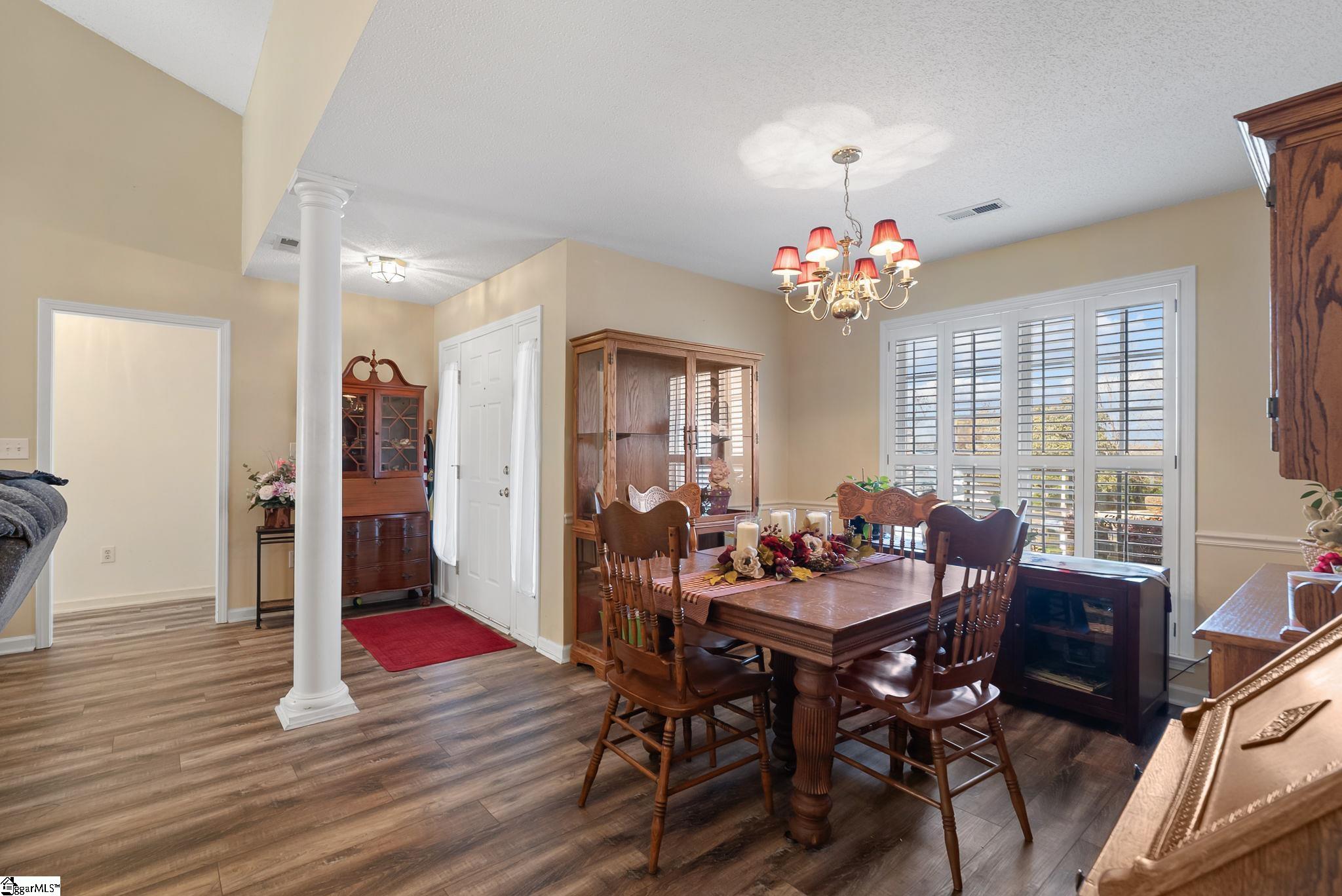 Discover this well-maintained three-bedroom, two-bathroom single-story home at 9 Pheasant Ridge Dr. in Taylors. At the heart of the home, the inviting living room boasts vaulted ceilings and a cozy gas fireplace, flowing seamlessly into a kitchen equipped with sleek stainless steel appliances and an abundance of cabinetry. For those who love to host, the formal dining area provides the perfect backdrop for holiday meals and intimate gatherings. The spacious primary suite serves as a private retreat, with vaulted ceilings and a full bath featuring a separate shower and tub. Two additional bedrooms share a second bathroom on the opposite side, as the home features a thoughtful split floor plan that prioritizes privacy. Practicality meets convenience with a dedicated walk-in laundry room and an attached two-car garage that offers ample room for vehicles and extra storage. Step outside to discover your own private oasis: a screened porch perfect for morning coffee and a sprawling, large backyard complete with an outbuilding for hobbies or tools. Recent updates include new LVP flooring and plumbing pipes. Located just minutes from the vibrant retail and dining corridor of Wade Hampton Blvd. and only a short drive to the award-winning downtown Greenville, this home offers the perfect balance of suburban tranquility and urban accessibility.