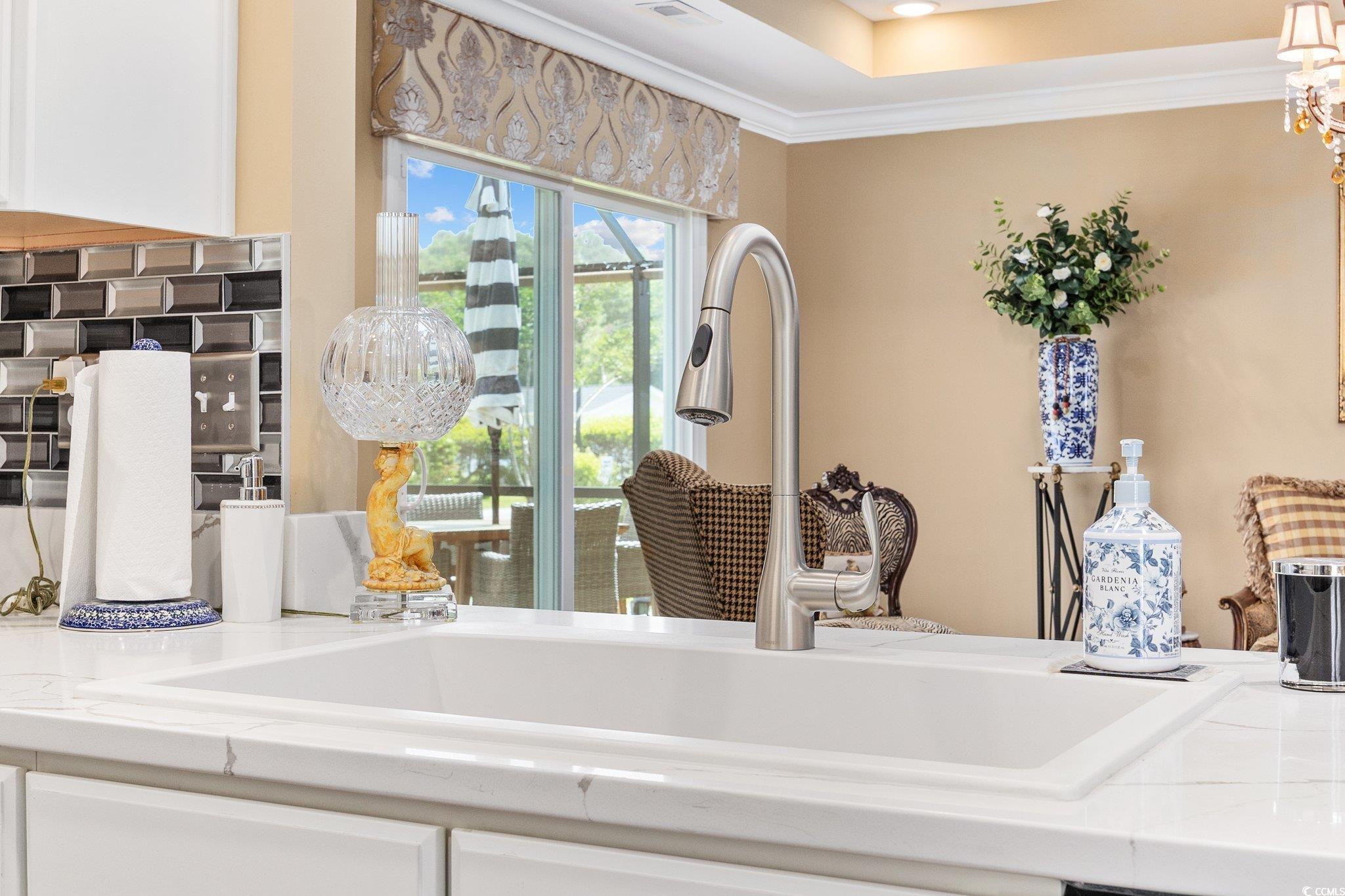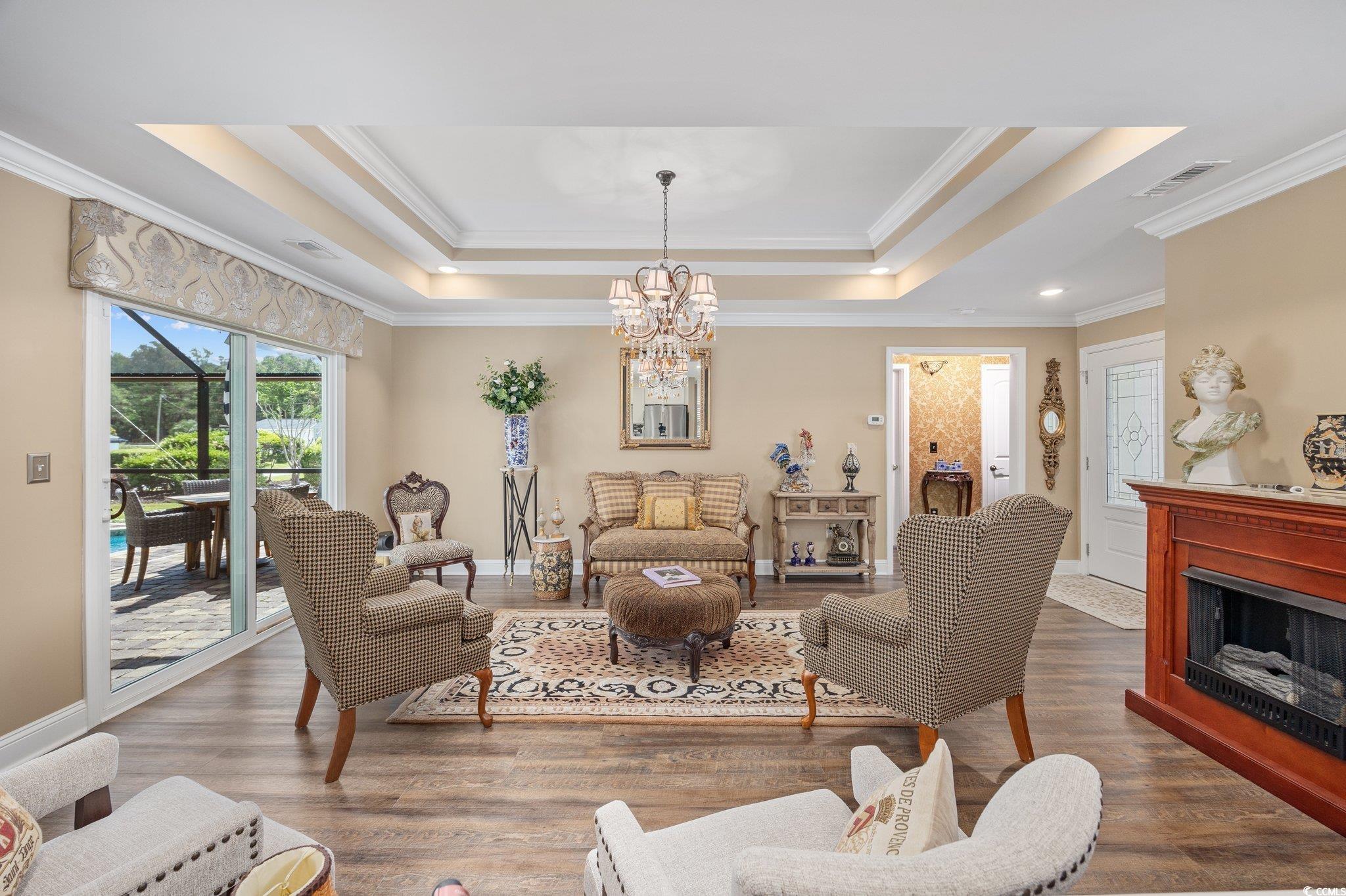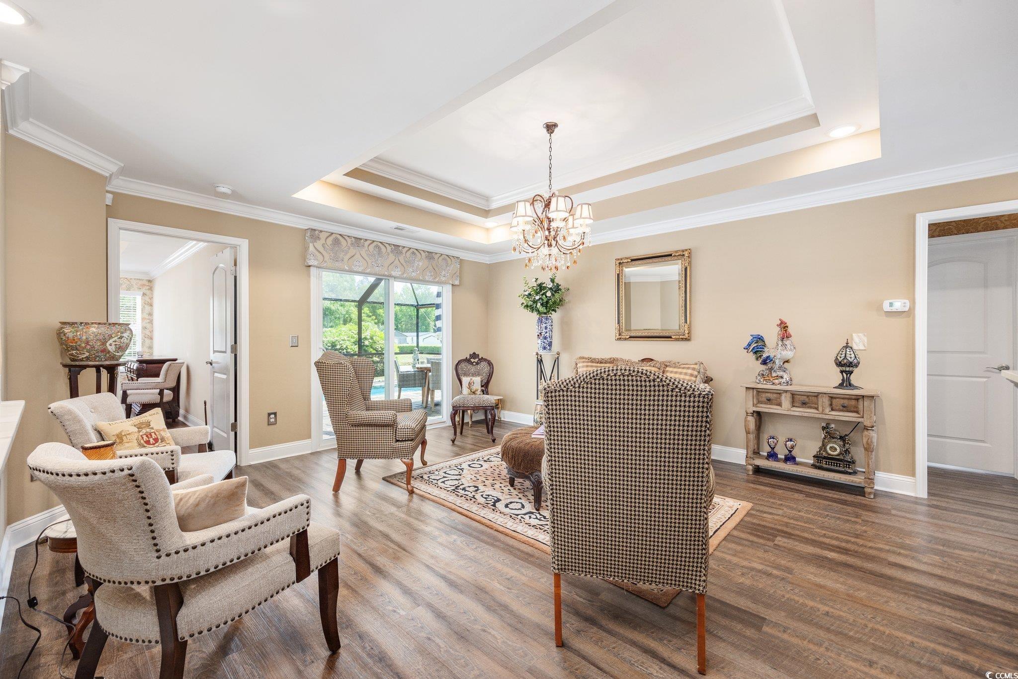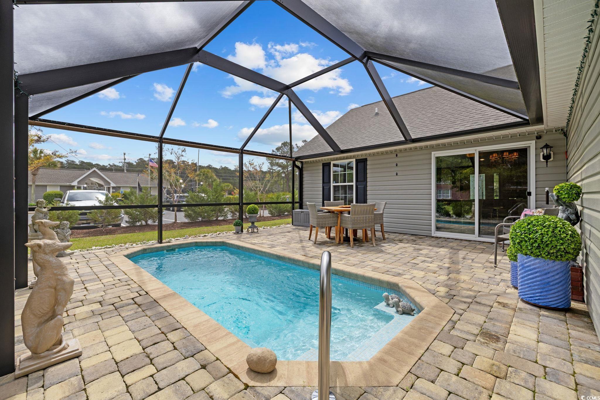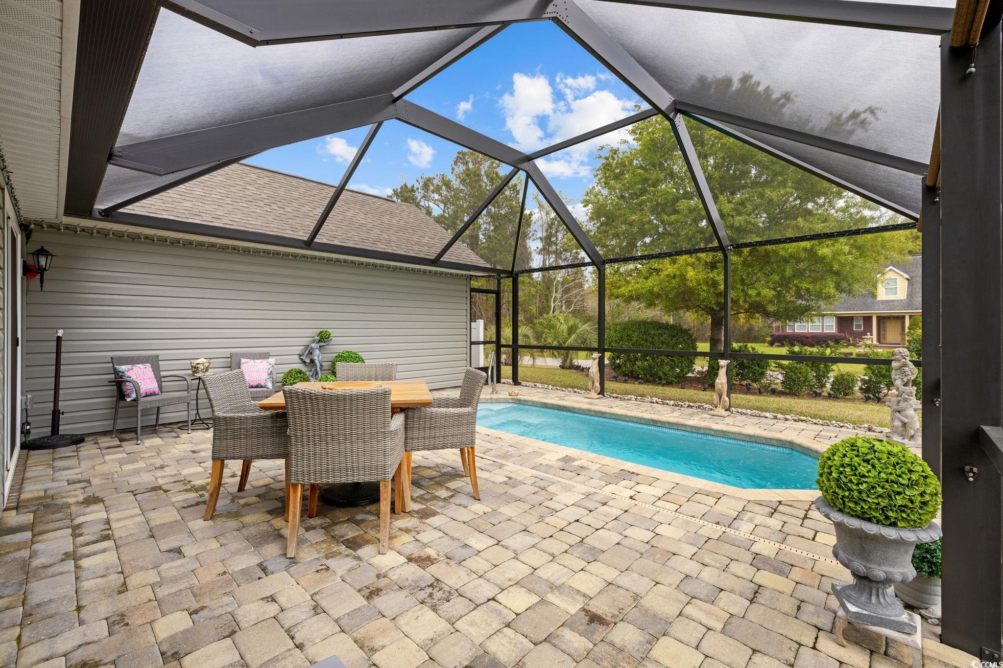 Motivated Seller!! Price Reduction!! Your Private Oasis Awaits: Beautiful Home well maintained with a Pool! This lovely 3-bedroom, 2-bathroom home located in the sought-after Carolina Crossing Subdivision. This move-in-ready gem is ready for you to make it your own! As you step inside, you’ll immediately notice the bright, open living room with a stunning double tray ceiling that adds a touch of elegance to the space. The kitchen is perfect for anyone who loves to cook, featuring sleek quartz countertops, stainless steel appliances, and a convenient kitchen/dining combo—ideal for easy meals and entertaining. The spacious master suite is a true retreat, boasting a large tray ceiling and a beautiful ensuite bathroom with a double granite vanity and a stand-up shower. The two guest rooms are equally comfortable and share a guest bathroom with a granite vanity and stand-up shower. Throughout the home, you’ll find low-maintenance vinyl plank flooring and charming crown molding. Now, step outside to your very own outdoor oasis! The enclosed pool area, with its paver decking and screened lanai, is perfect for relaxing or hosting friends and family on warm summer nights. Living in Carolina Crossing comes with great perks too! The community offers fantastic amenities, including a saltwater pool, clubhouse, lawn care, irrigation of yard, and even internet—everything you need is taken care of with the community assessments. This home truly has it all—fantastic location, comfortable living, and stylish finishes. Don’t let this incredible opportunity pass you by—come see it for yourself and imagine life in your new home at Carolina Crossing!