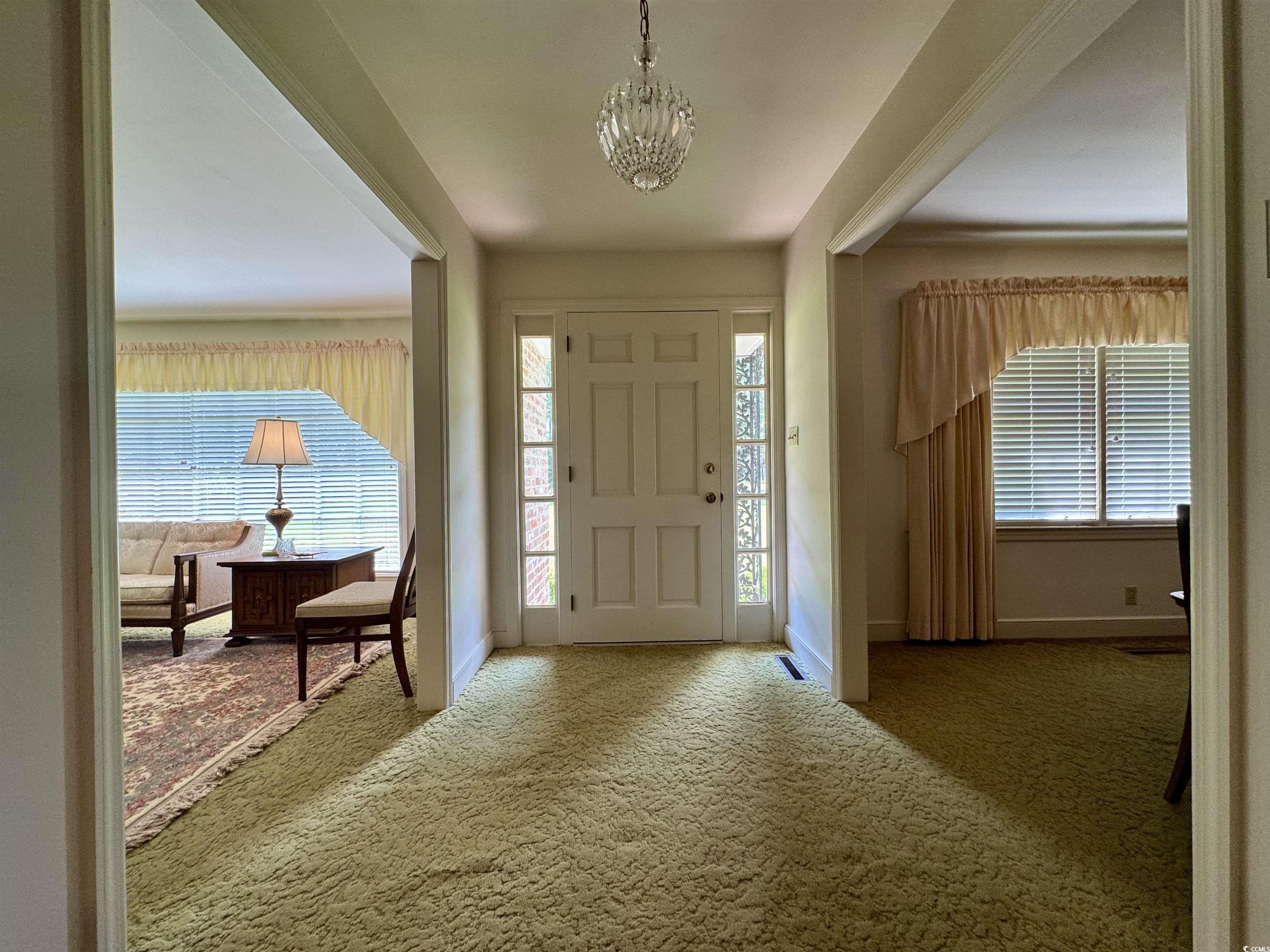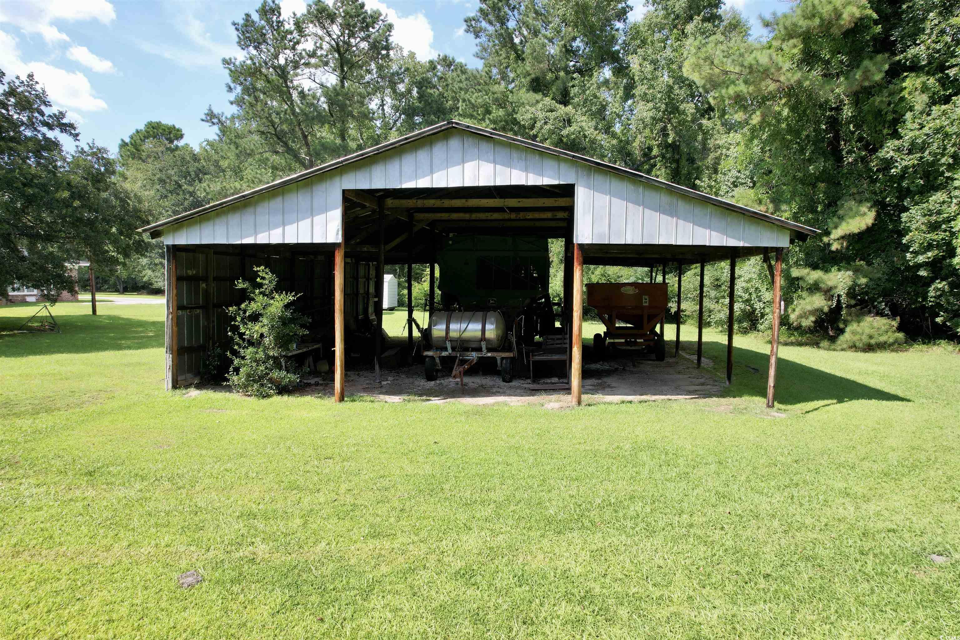Situated on 4 acres, this stately 1960s brick ranch is located on Gordon Avenue in downtown Lane, SC. The house features large rooms throughout. From the entry hall, you’re greeted by a formal living room with a fireplace and large picture window. Across the hall from the living room is a dining room with a built in china cabinet. The kitchen has a roomy breakfast nook which offers great natural light from three floor to ceiling windows overlooking the backyard. Off the kitchen is an oversized den with exposed beams, a brick fireplace, built ins, and a bay window also overlooking the backyard. There are three bedrooms, two of which share a hall bathroom. Both bathrooms feature general layouts and original tile. Additional features include a sun room, a detached carport, and a tractor shed. Despite being in town, this property feels as if it’s in the country and offers the peace, quiet and acreage you’re looking for!
