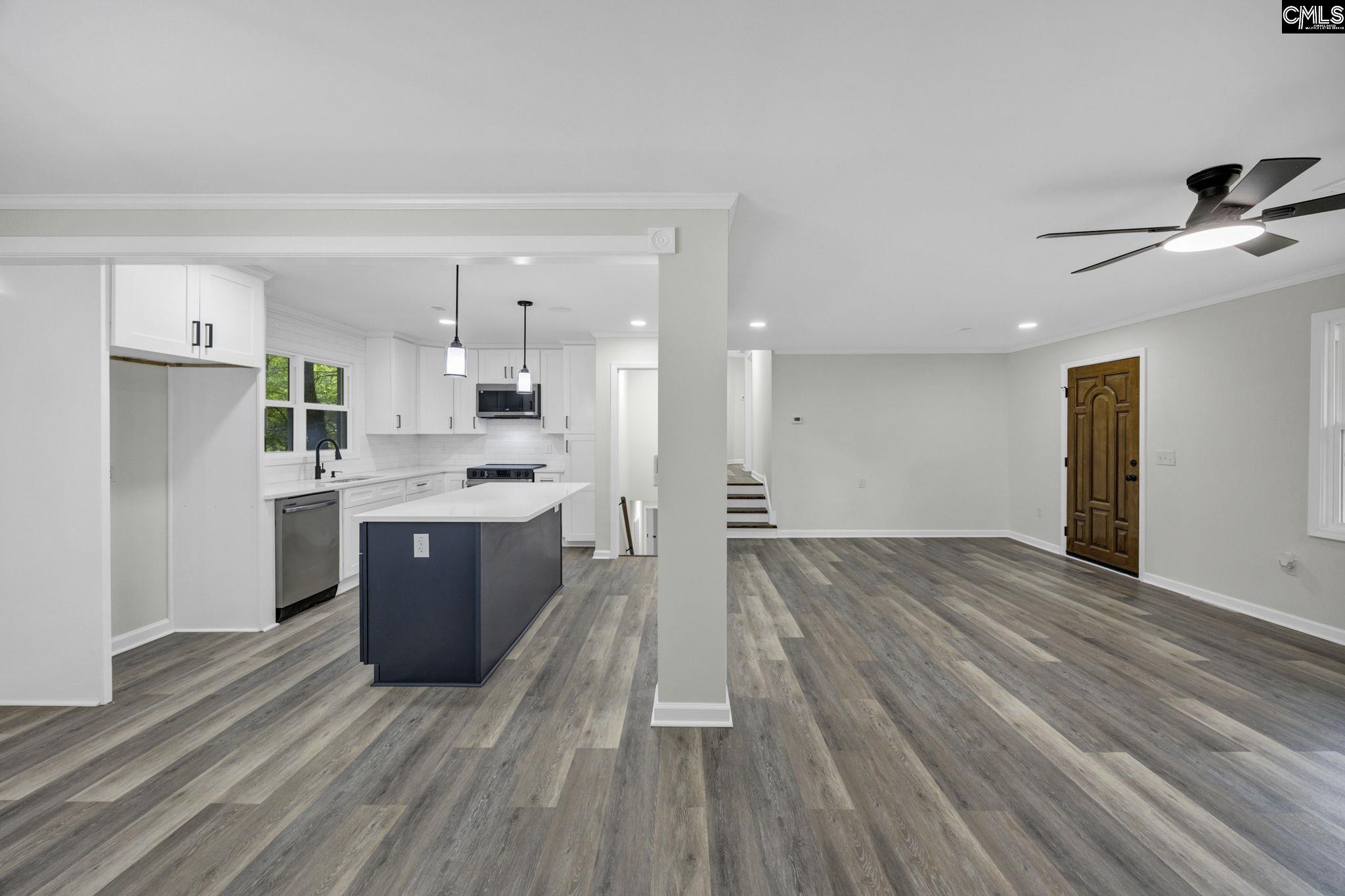 Welcome home to this beautifully updated 4 bedroom all brick tri level home perfectly situated on a huge corner lot in West Columbia. From the moment you walk in, you will notice the stylish updates, thoughtful design, and spacious layout that make this home truly stand out. The main level features durable LVP flooring throughout and a warm, inviting living room with a custom built entertainment center and electric fireplace that creates the perfect focal point for relaxing or gathering with family and friends. The kitchen is designed to impress with solid wood soft close cabinets, a large island perfect for entertaining, quartz countertops, a tile backsplash that extends up the walls, all new appliances,a touchless sink faucet, and Bluetooth speakers for added convenience and fun. Upstairs, two secondary bedrooms share a beautifully updated bath with double vanity, tile floors, tub shower combo, and matte black finishes. The primary suite offers a walk in closet, ceiling fan, and private bath with double vanity, board and batten accent wall, and tiled shower with bench. Downstairs, you will find the fourth bedroom, half bath, laundry room, and a huge flex room ready for a playroom, media room, home gym, office, or guest space. With new zoned HVAC,new electrical throughout, new windows, no HOA, and a location just 10 minutes from all the dining, shopping, and entertainment of downtown columbia, this home offers the perfect blend of character, comfort, and convenience. Disclaimer: CMLS has not reviewed and, therefore, does not endorse vendors who may appear in listings.