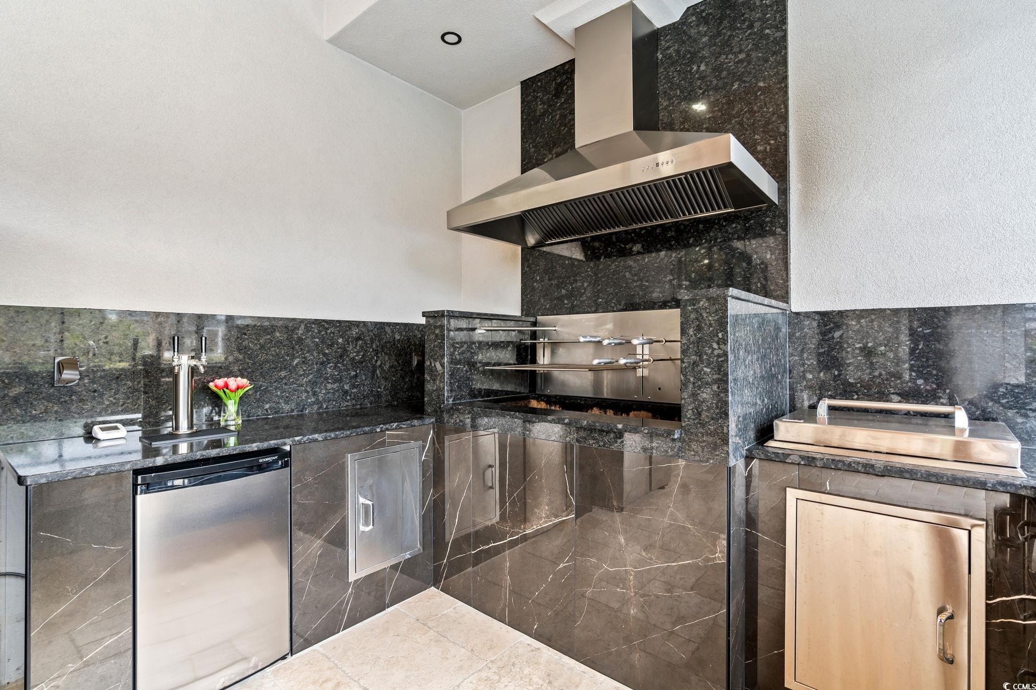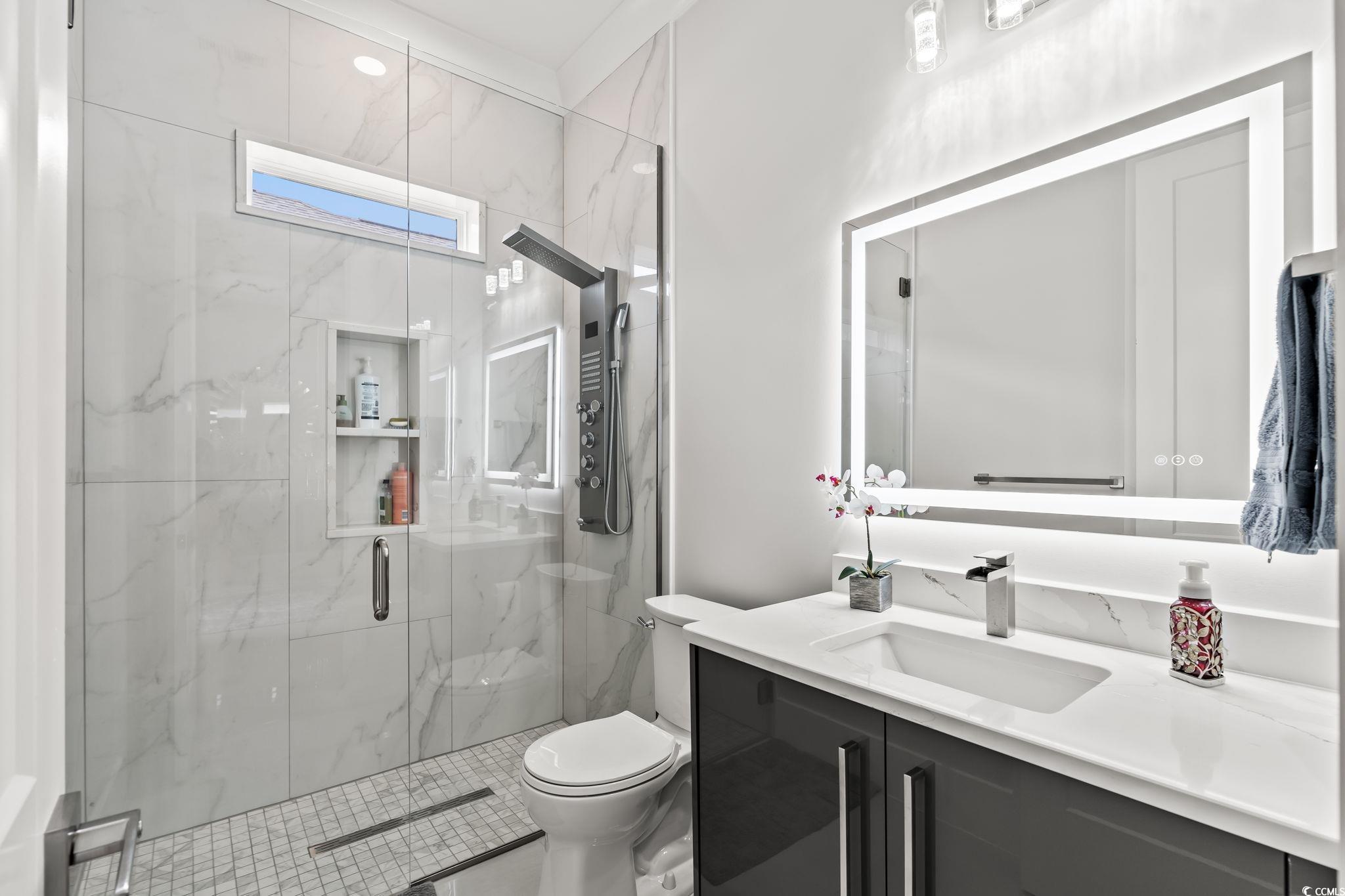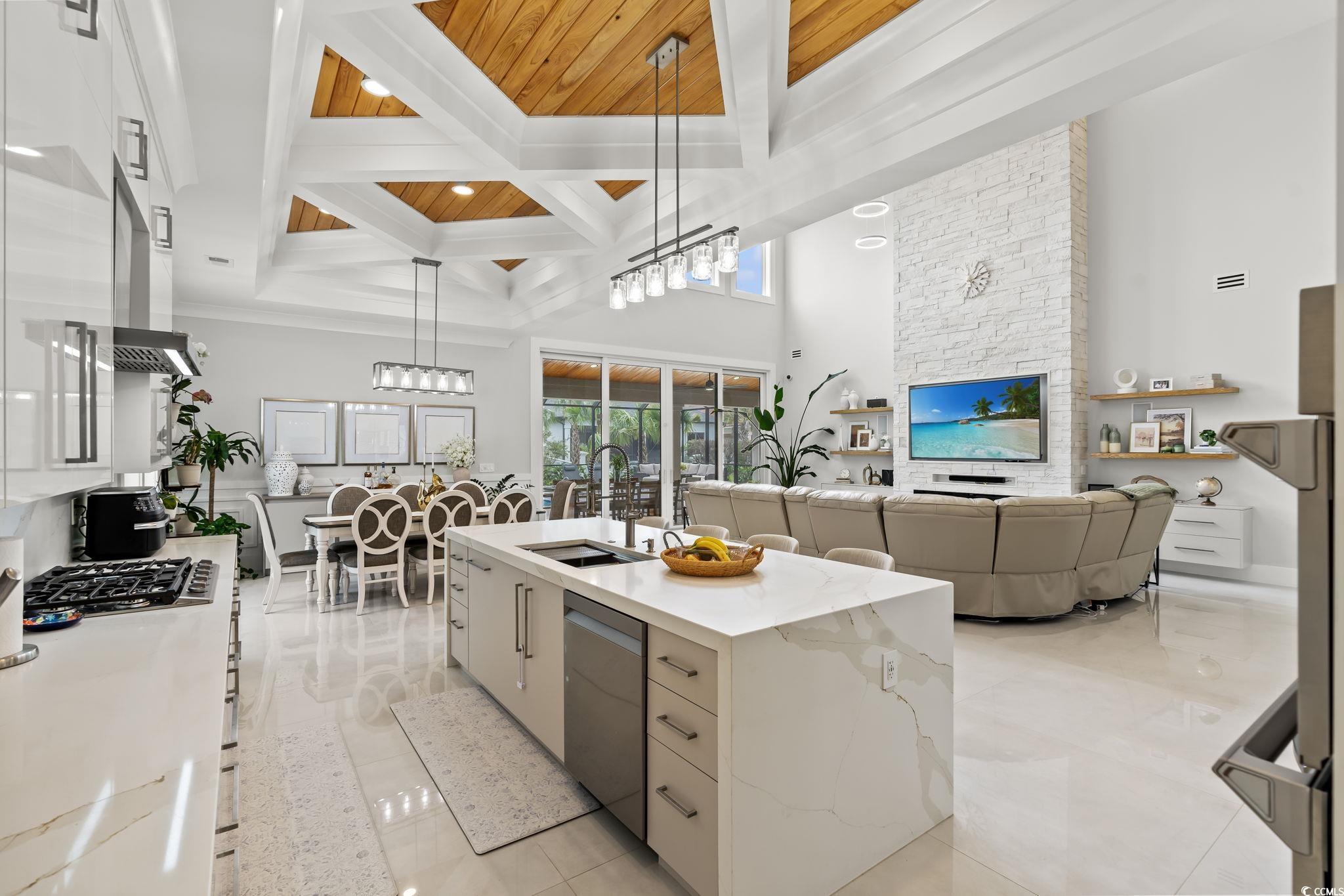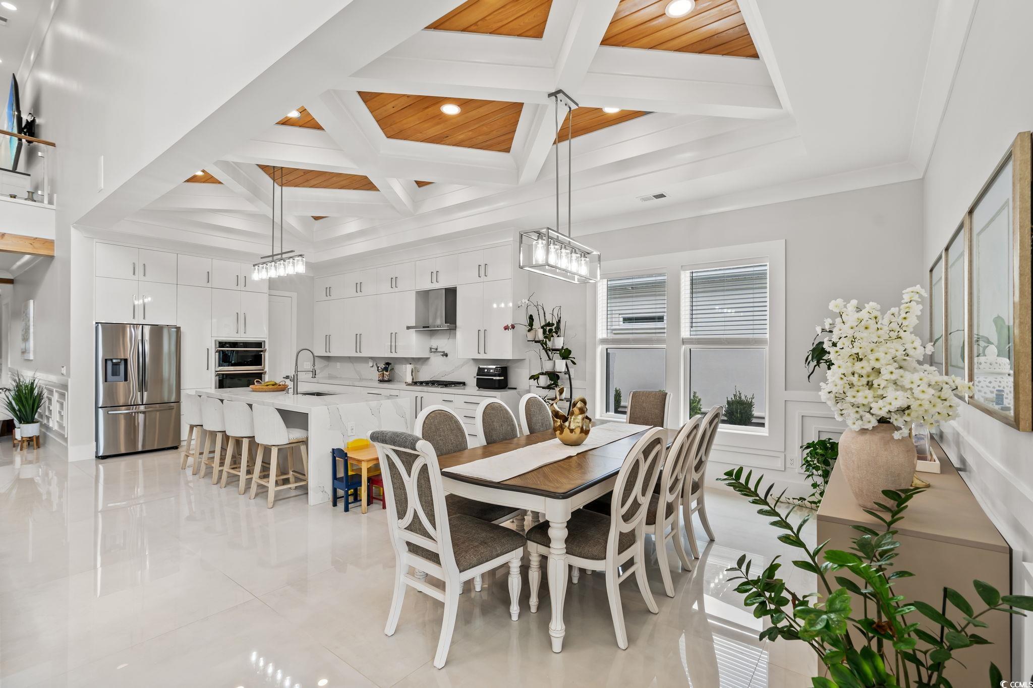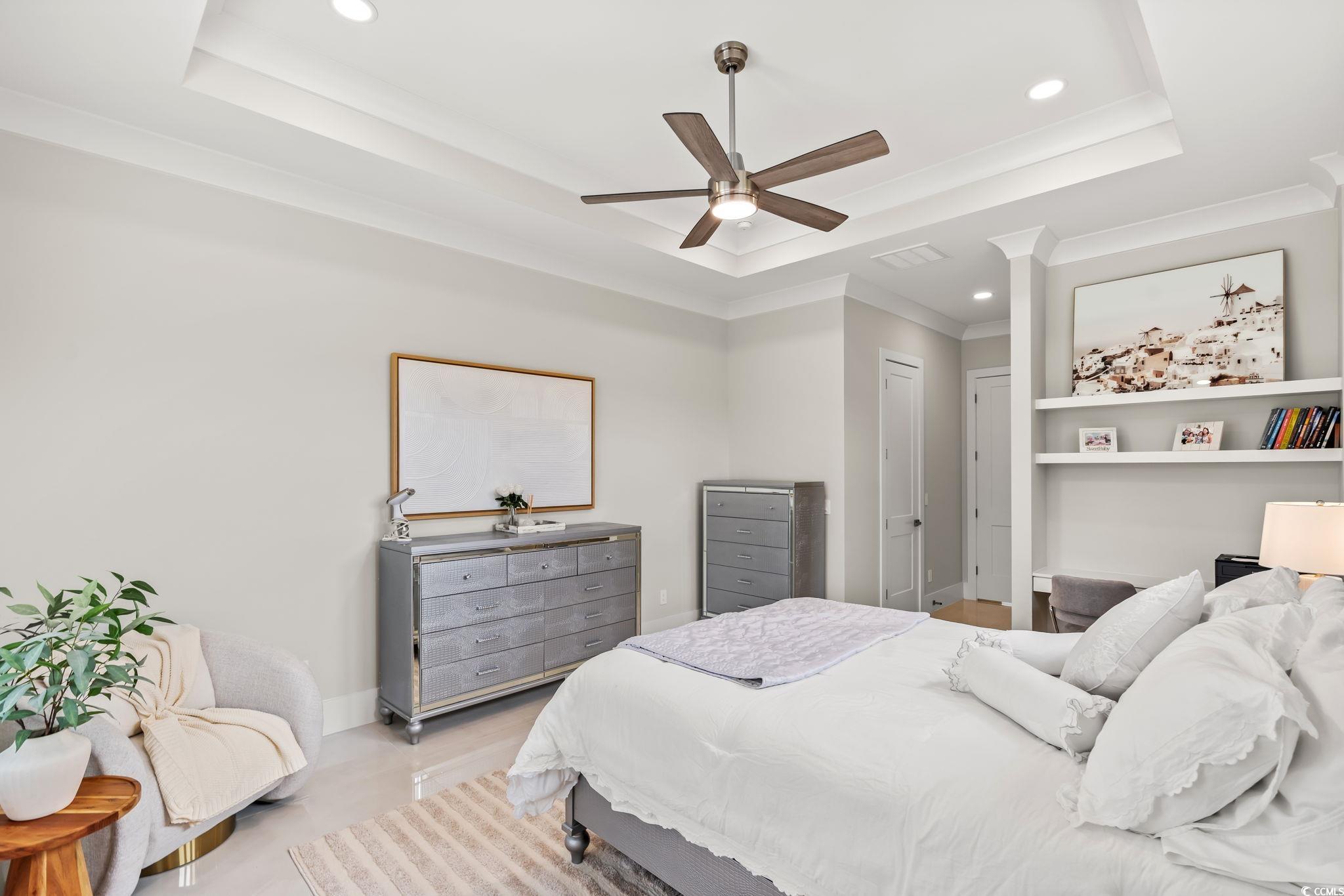 This exquisite custom-built residence is located in the gated community of Carolina Waterway Plantation along the Intracoastal Waterway. The luxury home, featuring 4 bedrooms, 1 office, and 3.5 bathrooms, blends architectural elegance with resort-style living. Built with 2x6 exterior walls, spray foam insulation in the walls and the attic, and a sleek white stucco finish, it is accented by black modern windows, soffit lighting, a paver driveway and walkway, and stone hardscape with palm tree detailing for timeless curb appeal. The outdoor oasis features a pool enclosure (cage) 54 x 23 feet over the pool deck. The salt and heated pool size is 15 x 27 feet, along with an 8 x 8 feet jacuzzi spa, a waterfall wall, travertine tiles pool deck, and a full outdoor kitchen complete with a Brazilian grill, stove, refrigerator, draft box/ beer keg, sink, and granite countertops—perfect for entertaining family and friends. A half bath, storage room, outdoor shower, and wood-paneled porch ceiling add to the luxury experience. Inside, sophistication flows through every detail—4 x 4 tile floors throughout the home, high ceilings, crown molding, and wood ceiling accents. The living room’s 22-ft stone-accented wall, electric fireplace, four panels of a 10-foot sliding glass door, glass handrail, and wooden staircase create a grand architectural statement. The chef’s kitchen offers quartz countertops, a waterfall island, a gas cooktop, a built-in oven and microwave, and plenty of European glossy cabinetry, custom built-in shelving in the pantry room. All four bedrooms are spacious with tray ceilings and large windows; the primary suite impresses with his-and-hers custom closets and a spa-like bath featuring dual vanities, rainfall showers, and a freestanding soaking tub. Additional highlights include an epoxy-coated garage, smart camera/speaker systems, and professional tropical landscaping. Every element of this home is designed for beauty, comfort, and modern coastal living. The community features a pickleball and tennis court, a community outdoor pool with a clubhouse, Boat and RV parking/storage, and a waterway boat access ramp. Located near stores, restaurants, and a hospital with a short drive to the Atlantic Ocean beaches, this property is your Perfect Dream Home. Don't miss out and schedule your showing today!