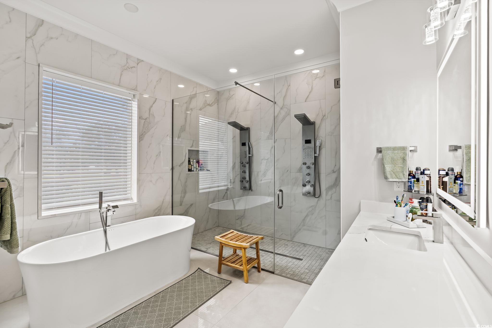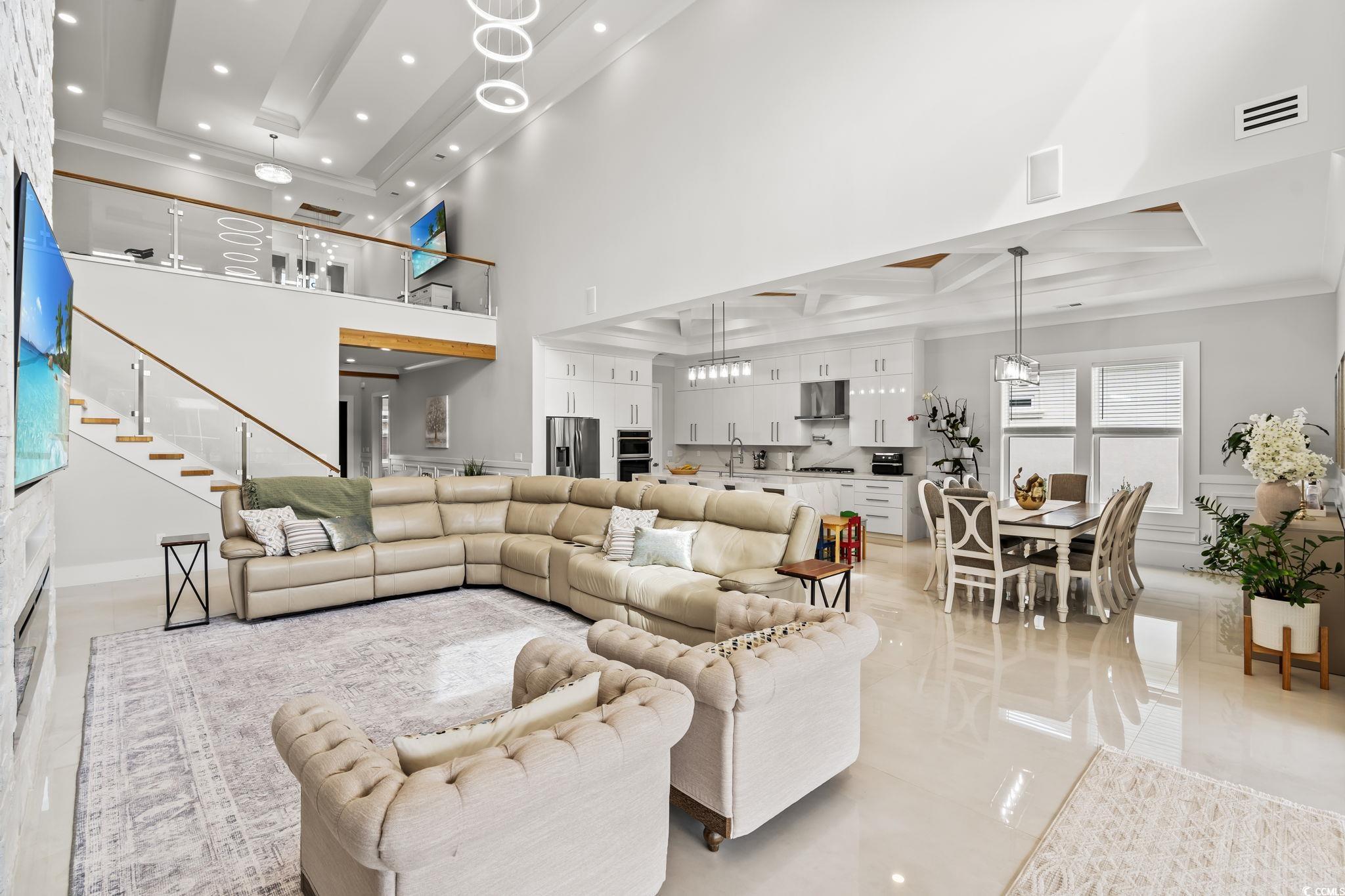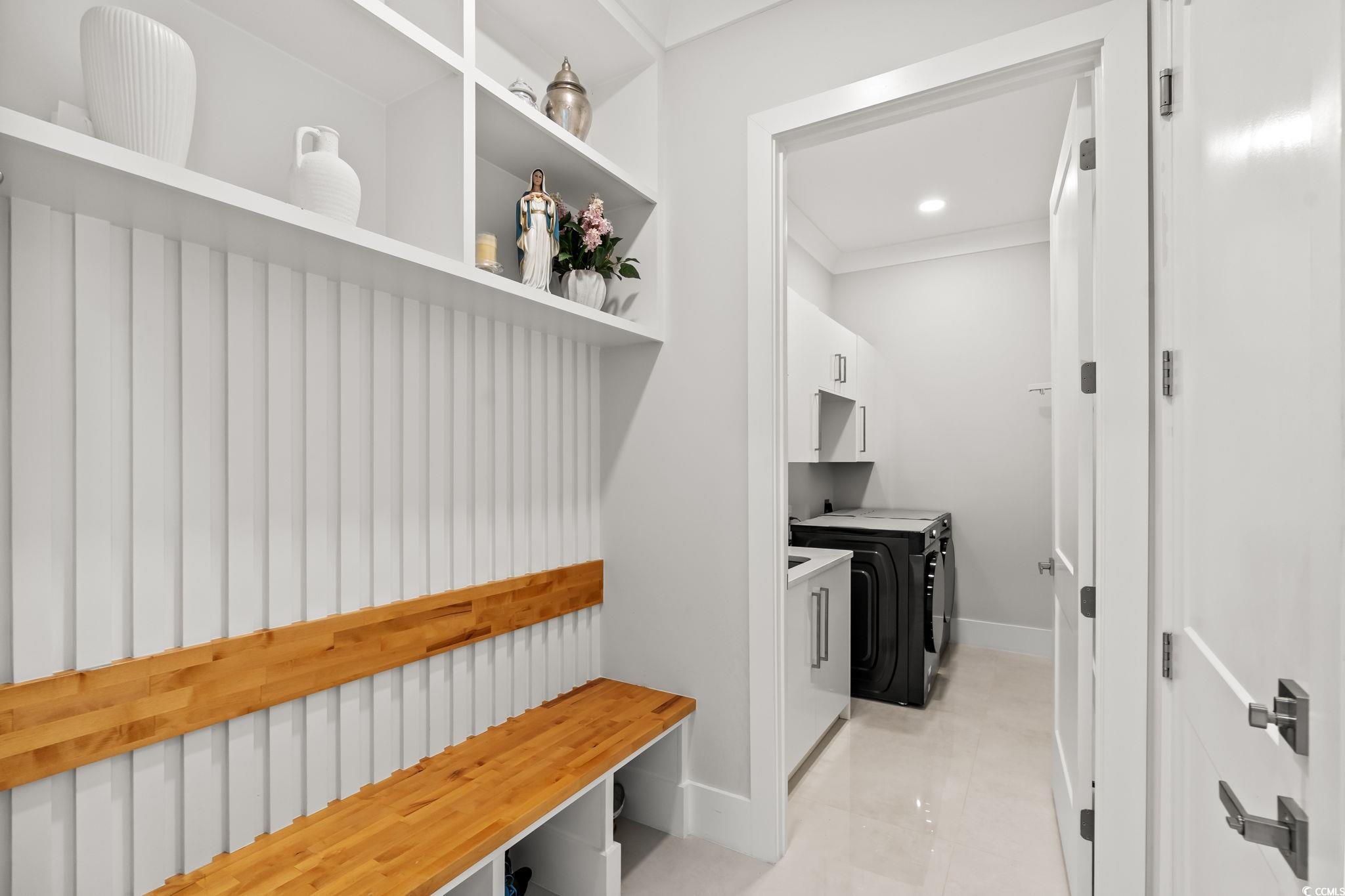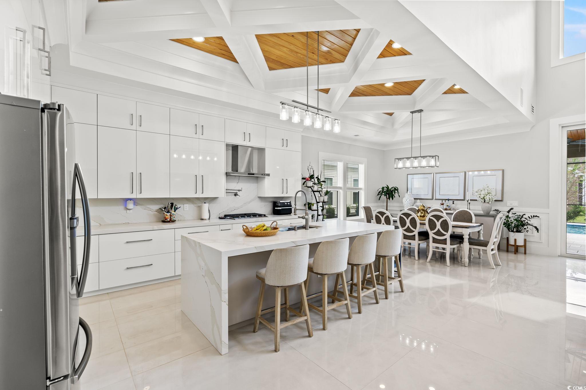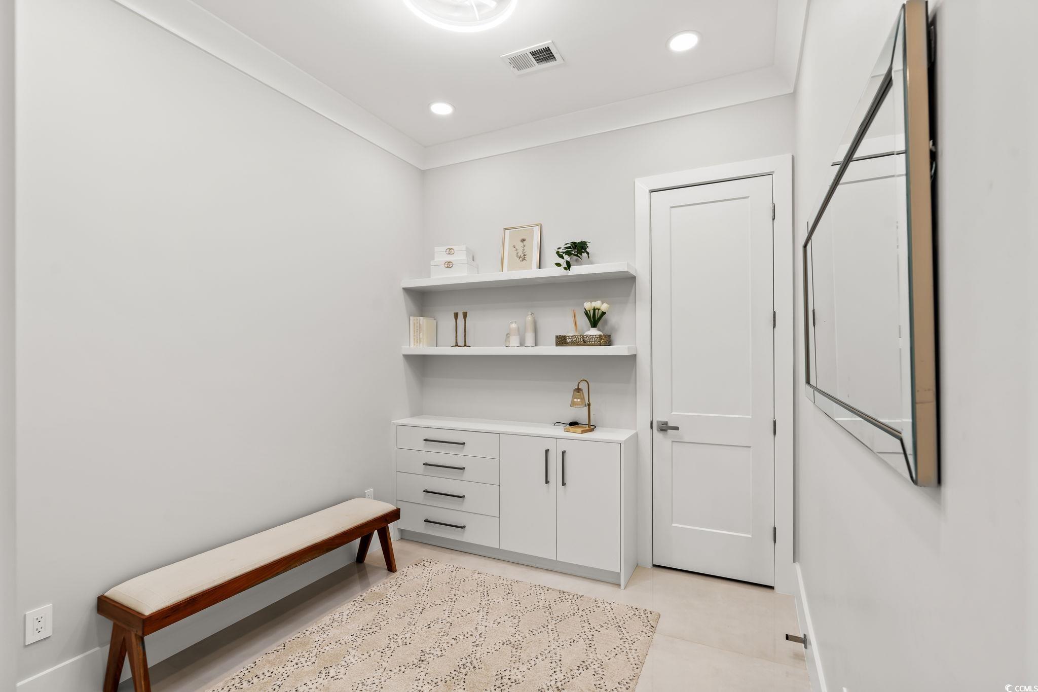This exquisite custom-built residence is located in the gated community of Carolina Waterway Plantation along the Intracoastal Waterway. The luxury home, featuring 4 bedrooms, 1 office, and 3.5 bathrooms, blends architectural elegance with resort-style living. Built with 2x6 exterior walls, spray foam insulation in the walls and the attic, and a sleek white stucco finish, it is accented by black modern windows, soffit lighting, a paver driveway and walkway, and stone hardscape with palm tree detailing for timeless curb appeal. The outdoor oasis features a pool enclosure (cage) 54 x 23 feet over the pool deck. The salt and heated pool size is 15 x 27 feet, along with an 8 x 8 feet jacuzzi spa, a waterfall wall, travertine tiles pool deck, and a full outdoor kitchen complete with a Brazilian grill, stove, refrigerator, draft box/ beer keg, sink, and granite countertops—perfect for entertaining family and friends. A half bath, storage room, outdoor shower, and wood-paneled porch ceiling add to the luxury experience. Inside, sophistication flows through every detail—4 x 4 tile floors throughout the home, high ceilings, crown molding, and wood ceiling accents. The living room’s 22-ft stone-accented wall, electric fireplace, four panels of a 10-foot sliding glass door, glass handrail, and wooden staircase create a grand architectural statement. The chef’s kitchen offers quartz countertops, a waterfall island, a gas cooktop, a built-in oven and microwave, and plenty of European glossy cabinetry, custom built-in shelving in the pantry room. All four bedrooms are spacious with tray ceilings and large windows; the primary suite impresses with his-and-hers custom closets and a spa-like bath featuring dual vanities, rainfall showers, and a freestanding soaking tub. Additional highlights include an epoxy-coated garage, smart camera/speaker systems, and professional tropical landscaping. Every element of this home is designed for beauty, comfort, and modern coastal living. The community features a pickleball and tennis court, a community outdoor pool with a clubhouse, Boat and RV parking/storage, and a waterway boat access ramp. Located near stores, restaurants, and a hospital with a short drive to the Atlantic Ocean beaches, this property is your Perfect Dream Home. Don't miss out and schedule your showing today!