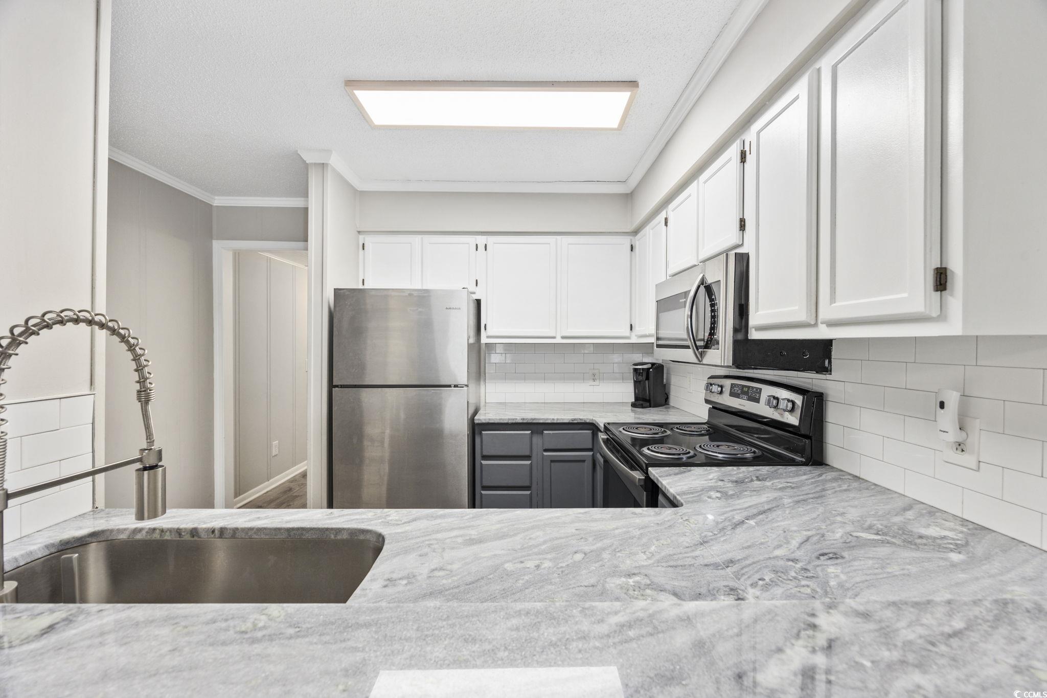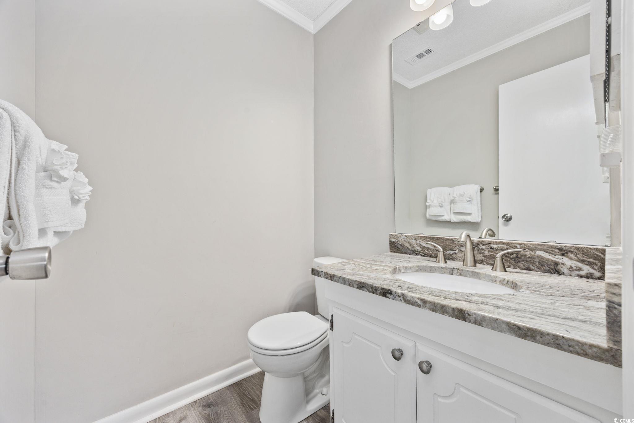 COASTAL PEFRECTION! VIEW! LOCATION! This 3-bedroom, 2.5-bath ocean view condo at Duneside delivers the feel of oceanfront living—without the oceanfront price. Just a half mile from the Garden City Pier and Atlantic Avenue, this top-floor unit offers nearly 1,200 heated square feet of beautifully updated space. Enjoy a smart split-bedroom layout, a spacious foyer that doubles as a reading nook, game area, or home office, and luxury vinyl plank flooring throughout the unit. The modern kitchen is outfitted with granite counters, stainless steel appliances, and ample cabinetry - ideal for both everyday living and entertaining. The large primary suite includes a king bed, en-suite bath, generous closet space, and private access to the expansive balcony, which features updated tile flooring and uninterrupted ocean views. Two additional guest rooms provide flexibility and comfort—one with a queen bed, the other with twin beds and an attached half bath. Additional features include in-unit washer and dryer, excellent storage throughout, and a layout that feels open and functional. The condo is sold fully furnished and turnkey—including linens and kitchenware—making it easy to settle in or start renting right away. HVAC (June 2025), Roof and Balcony (approx. 4 years old). Located in the heart of Garden City Beach, you’re just steps to the ocean, Garden City Pier, Sam’s Corner, local shops, and dining. Whether you’re looking for a vacation retreat, income property, or full-time residence, this coastal condo checks every box. Please note, because this is a rental, it is possible that linens/decor may change and be different upon viewing than the pictures. Schedule your tour today and experience the view for yourself.