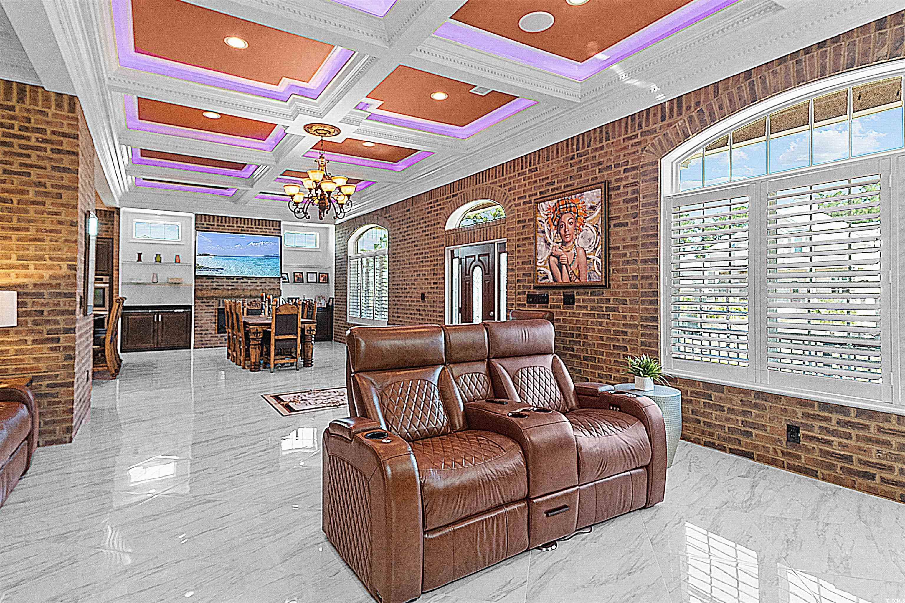 This custom built one of a kind two year old home is a marvelous mix of luxurious materials and well thought out design. Over 4,000 heated sq. ft. open floor plan design with 3BR/3BA's and also two separate rooms that could be used for office space or a study. This gorgeous home boasts over 150 tons of brick, including over 7,000 hand cut corner brick that goes from the floor to the 12 ft. trey ceilings in the main living area. The high ceilings are complimented by the most magnificent crown molding and trim and custom lighting throughout to give you an amazing chic and modern ambience. Every countertop in the home has designer granite, and also beautiful porcelain tile flooring throughout. The seller of this well thought out home, even had the foresight to have it elevator ready with a shaft from bottom to top if the new owner decided to do so. The exterior stairs have been designed and built on the left side of the house as to not obstruct any parking to leave it completely accessible to hold 5 cars inside and has no columns for ease of parking. You can easily pull in one side, and out the other. Also under the stairs, extra storage has been built. Both sides of the garage are slopped as well and provide retractable hoses with hot and cold water. And to top it off, the whole garage flooring has been epoxy coated. If you need an extra parking space for your special car, no problem, you can park it INSIDE in the back of the home. The downstairs in-home gym is second to none with state of the art equipment that comes furnished with it. This home comes completely furnished with high end furniture, accessories and the custom made Italian Cognac Leather seating in the living room has massage and heating. And you will also notice the hand carved imported Mexican dining room and kitchen chair and table furniture. Everything stays with the home even down to the dishes, pots, pans, glassware, etc. You will need nothing upon taking possession of this majestic home and can be sure there is nothing else like it anywhere. We would love to give you a private showing as this is truly a must see to get that WOW feeling as we did ourselves upon first viewing.