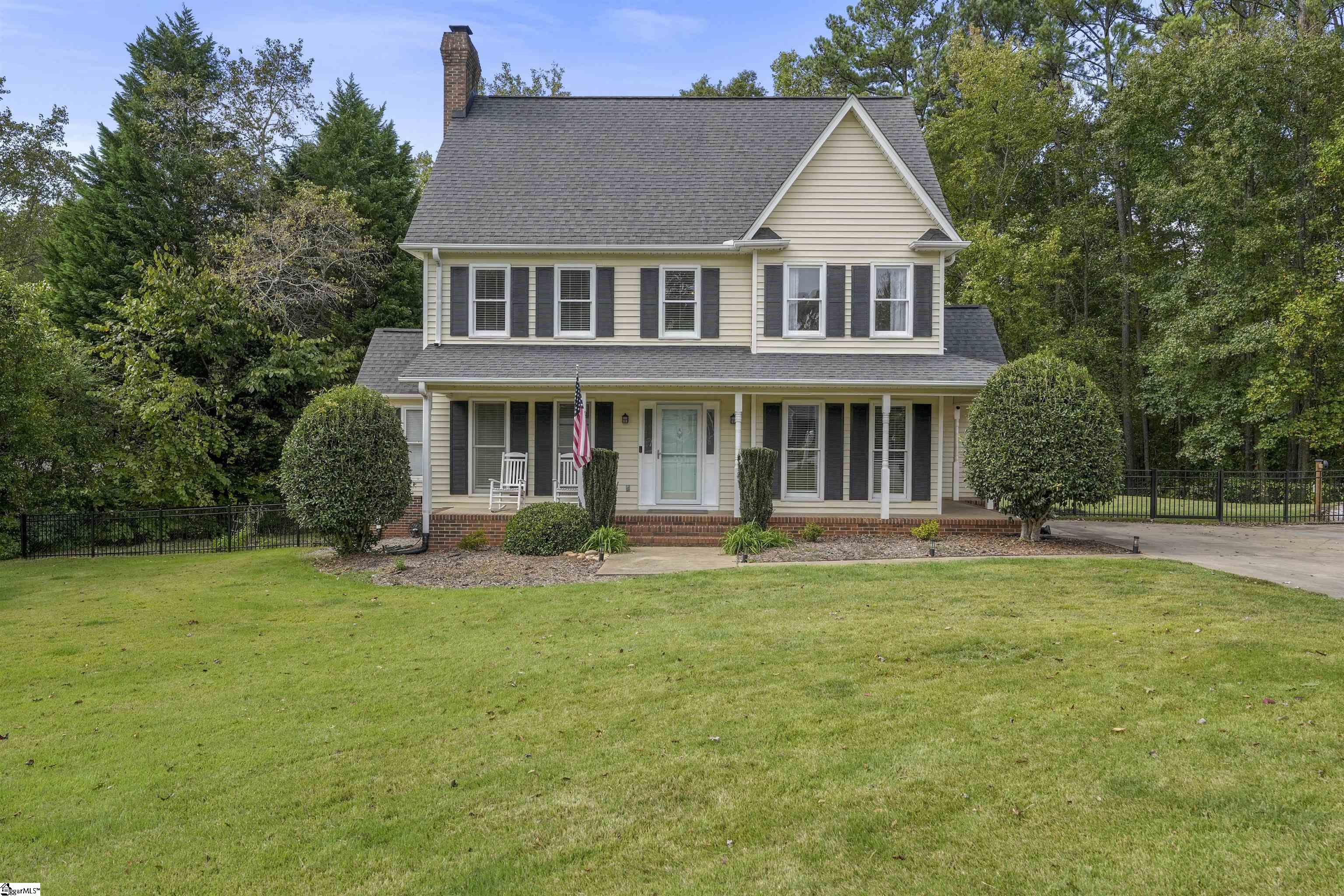 Welcome to this beautifully maintained traditional home tucked away on a quiet cul-de-sac in Huntington North. Situated on approximately half an acre, this 4-bedroom, 2.5-bath home offers over 2,600 square feet of comfortable living space with a functional layout ideal for both everyday living and entertaining. The spacious great room features a gas fireplace with a warm, inviting ambiance, while the kitchen is equipped with solid surface countertops, a gas range, and ample cabinetry. Enjoy multiple living areas, including a bonus room and dedicated office space. Upstairs, the primary suite offers a full bath and generous closet space. Step outside to a private, tree-lined backyard complete with a deck and fenced yard—perfect for relaxing or hosting gatherings. An RV pad with hookup is also in place, offering added flexibility and potential for electric vehicle charging. Conveniently located near Easley with easy access to major roads, this home offers a great balance of space, comfort, and location.